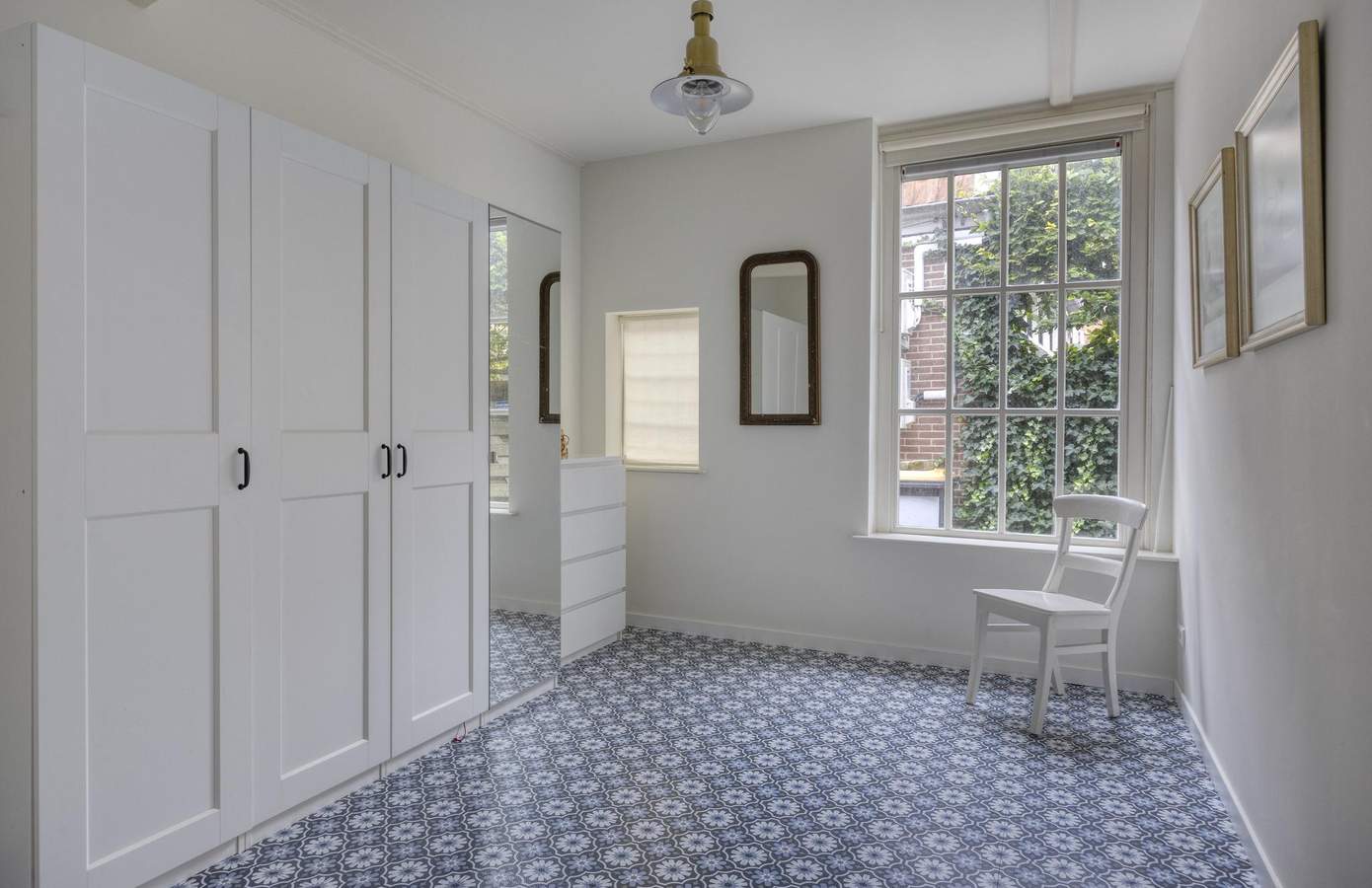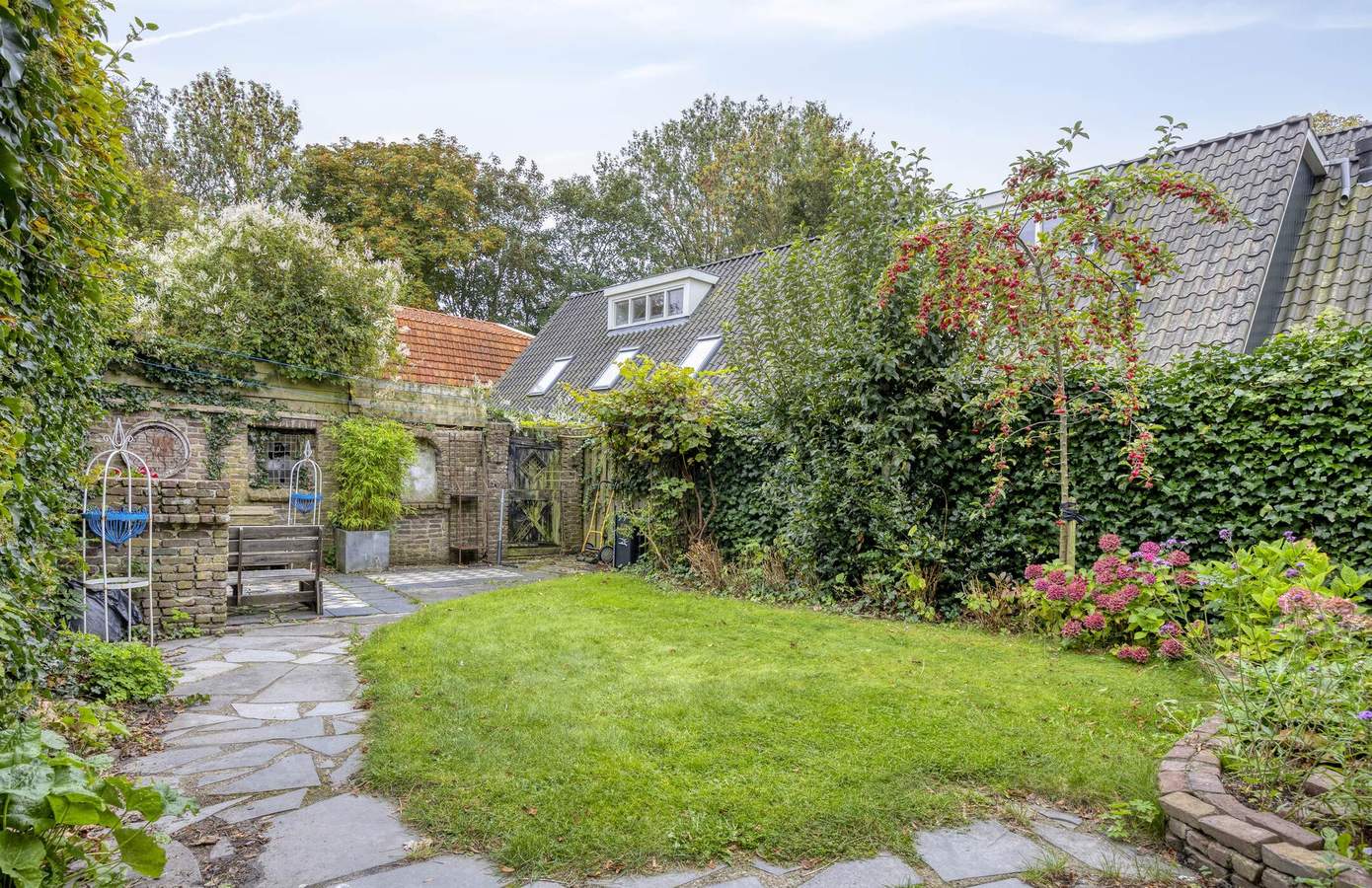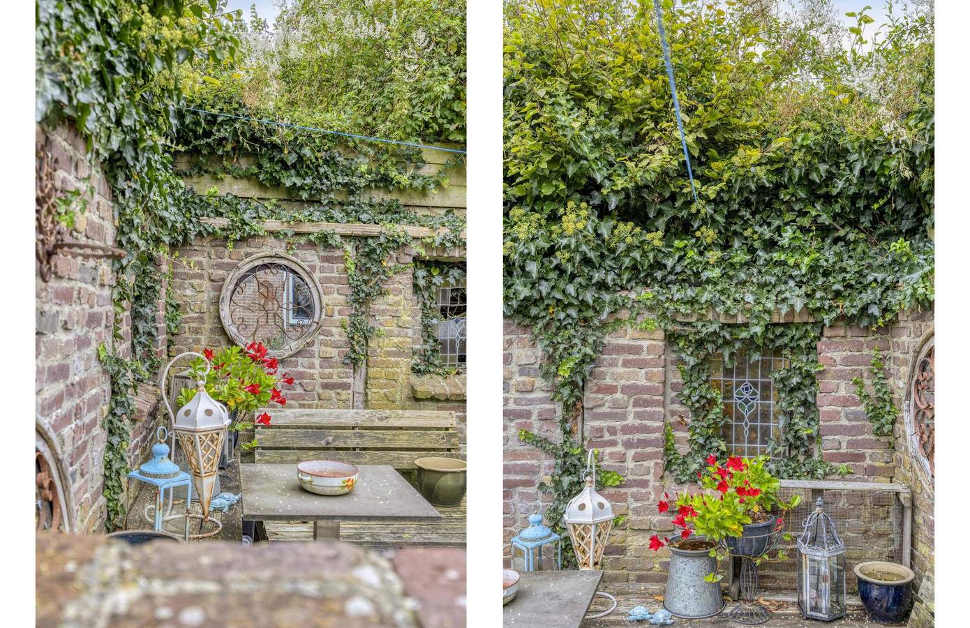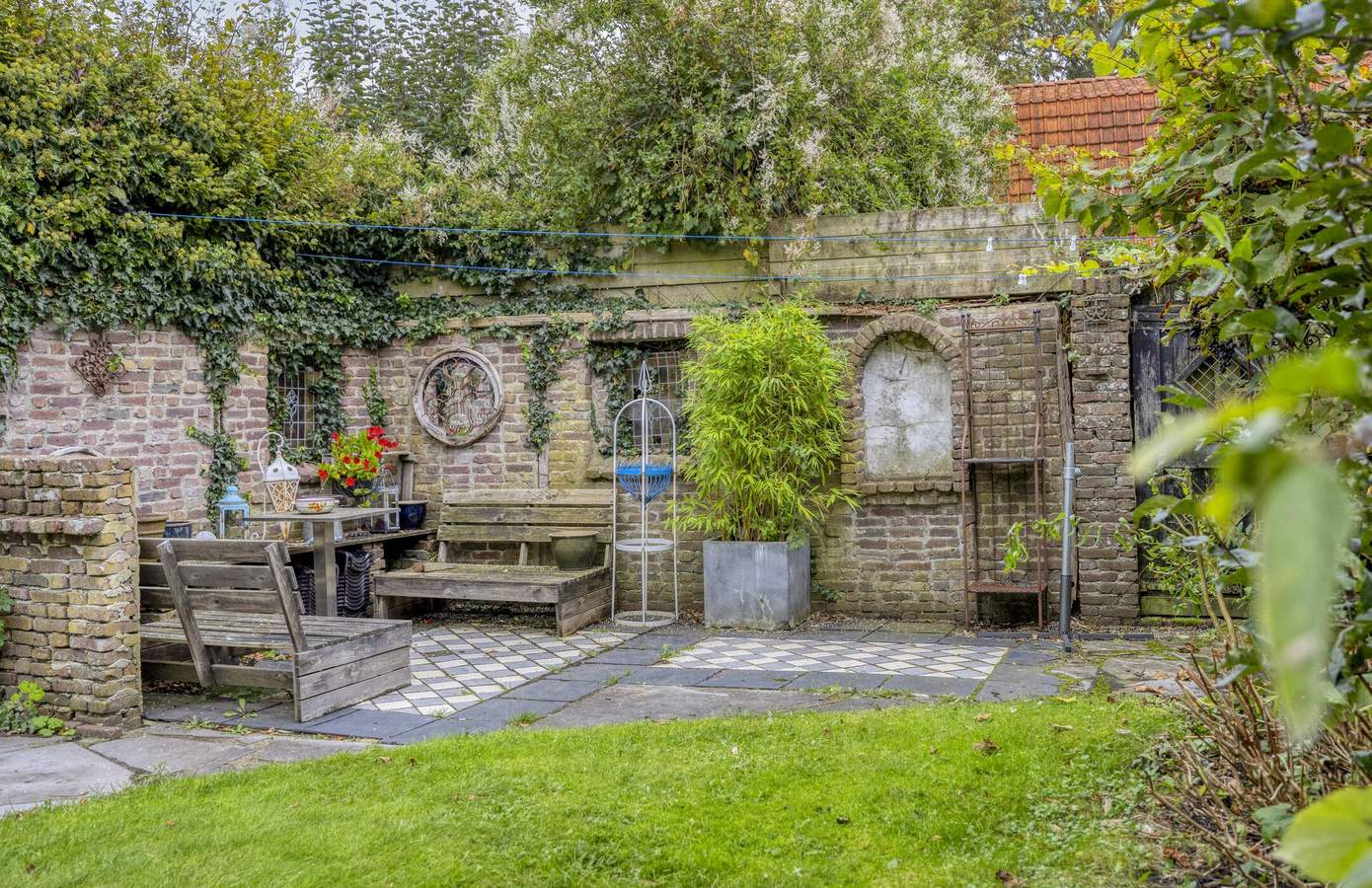 Achter de woning ligt de besloten tuin. Zodra u door de achterdeur de tuin in stapt, ervaart u een sfeer van rust en privacy. De oude bakstenen muur vormt het karaktervolle decor van deze buitenruimte. Het terras is de perfecte plek om van de tuin te genieten. De beplanting is weelderig, de klimop slingert langs de muur, hortensia’s zorgen voor kleur en een sierappelboom geeft de tuin een speels accent. Het gazon vormt het frisse middelpunt van de tuin.