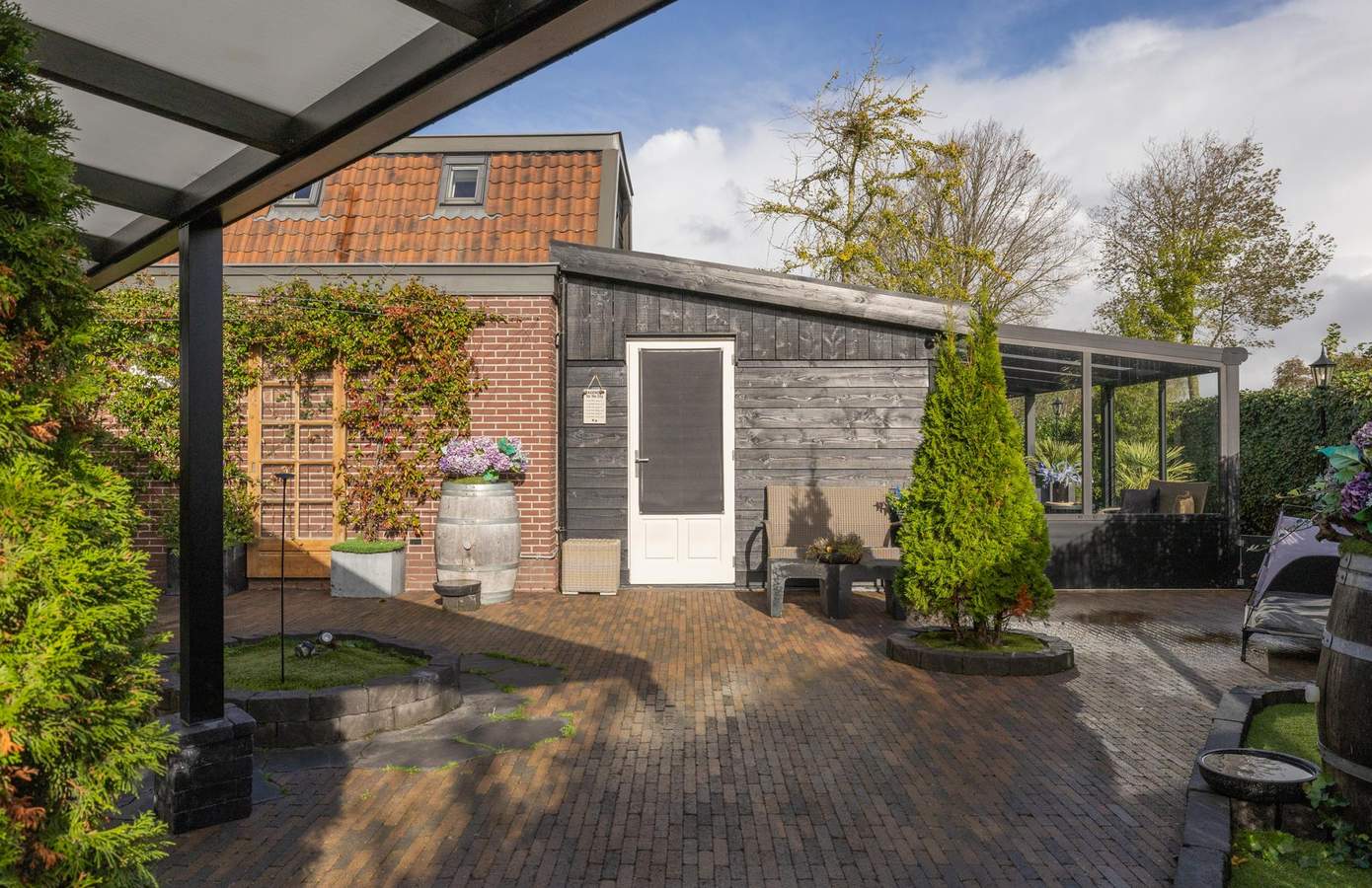 Aan de rand van Nieuwe Niedorp, waar het dorpsleven overgaat in weidse polder, ligt een bijzonder woonensemble dat rust, ruimte en karakter ademt. Een sfeervolle vrijstaande woning met een volledig verbouwde koolschuur waarin zich onder andere een luxe appartement bevindt, omgeven door een schitterend aangelegde tuin met diverse veranda’s, een buitenspa met jacuzzi en sauna. Hier woont u niet alleen – u beleeft het buitenleven in al zijn vormen: comfortabel, stijlvol en met een vleugje vakantiegevoel, elke dag opnieuw.