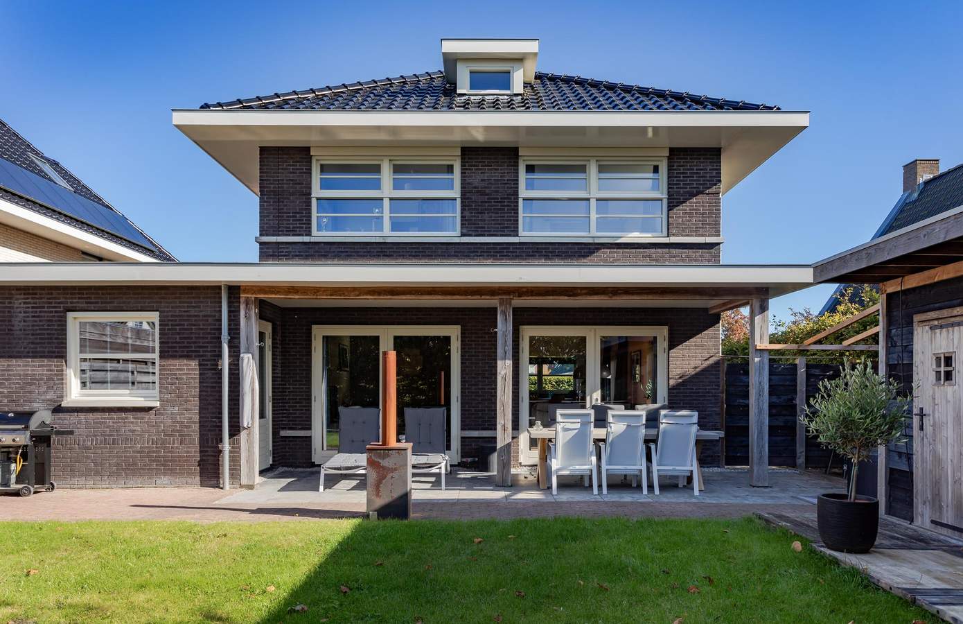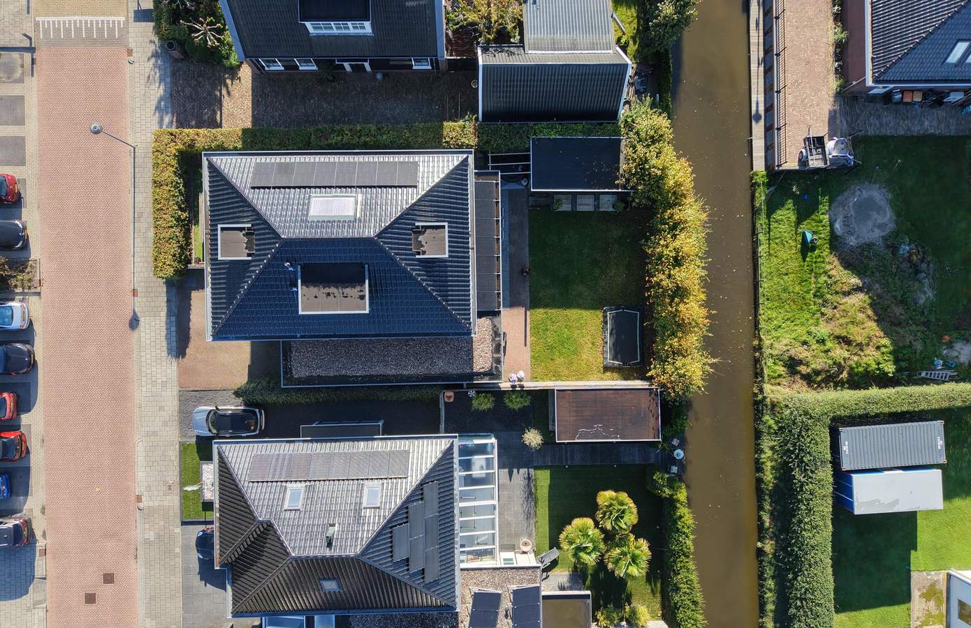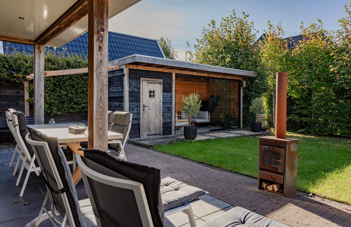 De tuin is een plek om volop te genieten. Gelegen op het zuiden, kunt u hier de hele dag door van de zon profiteren. Het ruime terras grenst direct aan de woning en is deels overkapt, zodat u ook op warmere of juist regenachtige dagen comfortabel buiten kunt zitten. De vrijstaande veranda compleet met schuifpui en stroomvoorziening, is een heerlijke plek om lange zomeravonden door te brengen. Een leuke toevoeging aan tuin is de vlonder, gelegen aan het water. Hier kunt u heerlijk ontspannen of uw boot aan leggen. De tuin is groen en verzorgd, met voldoende privacy dankzij de volwassen beplanting. Aan de voorzijde beschikt de woning over een brede oprit met parkeergelegenheid voor twee auto’s. De inpandige garage is volledig geïsoleerd en multifunctioneel inzetbaar, bijvoorbeeld als extra werkruimte of hobbyruimte.