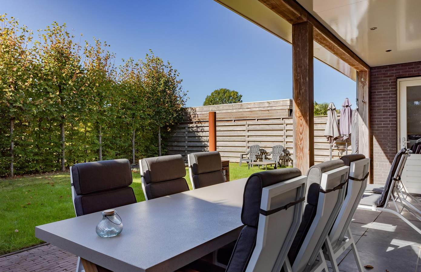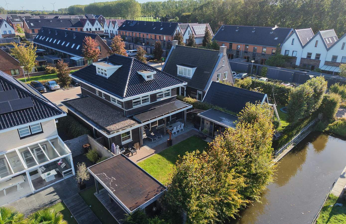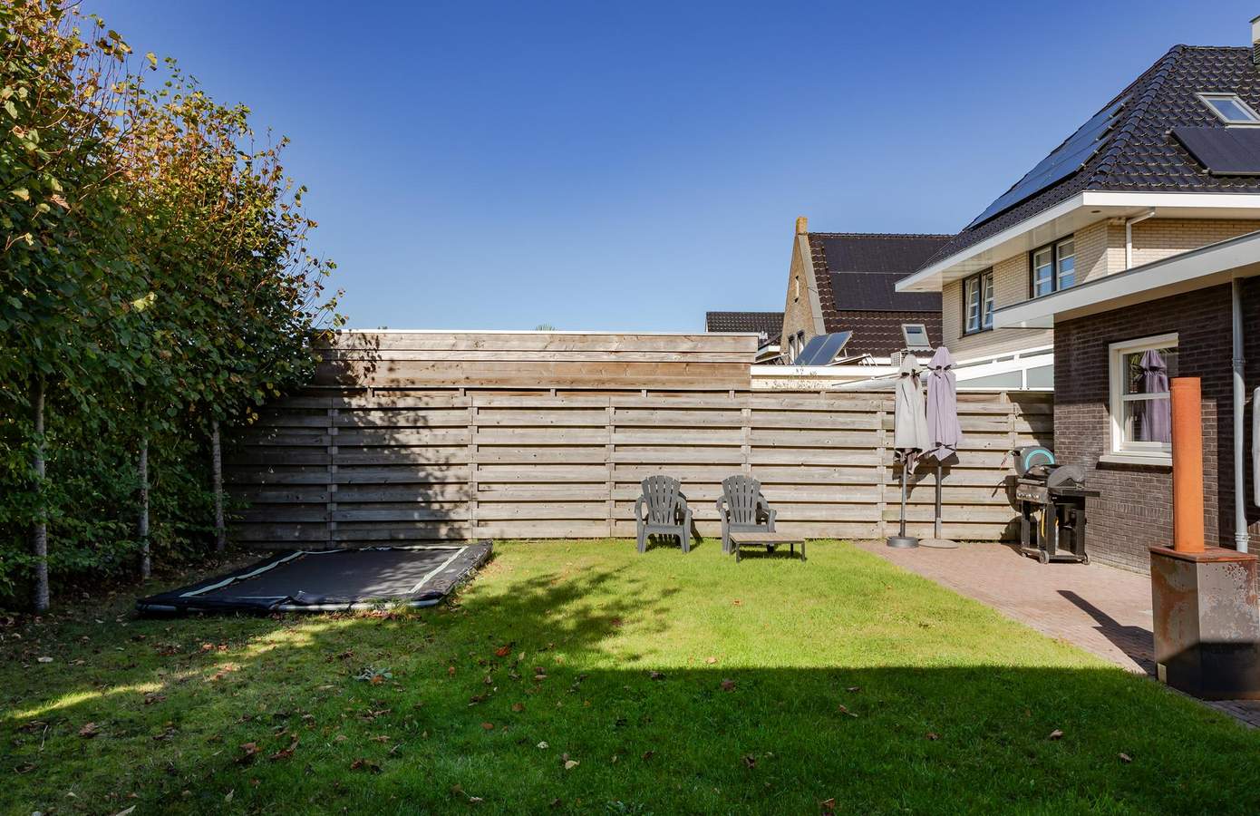 De tuin is een plek om volop te genieten. Gelegen op het zuiden, kunt u hier de hele dag door van de zon profiteren. Het ruime terras grenst direct aan de woning en is deels overkapt, zodat u ook op warmere of juist regenachtige dagen comfortabel buiten kunt zitten. De vrijstaande veranda compleet met schuifpui en stroomvoorziening, is een heerlijke plek om lange zomeravonden door te brengen. Een leuke toevoeging aan tuin is de vlonder, gelegen aan het water. Hier kunt u heerlijk ontspannen of uw boot aan leggen. De tuin is groen en verzorgd, met voldoende privacy dankzij de volwassen beplanting. Aan de voorzijde beschikt de woning over een brede oprit met parkeergelegenheid voor twee auto’s. De inpandige garage is volledig geïsoleerd en multifunctioneel inzetbaar, bijvoorbeeld als extra werkruimte of hobbyruimte.