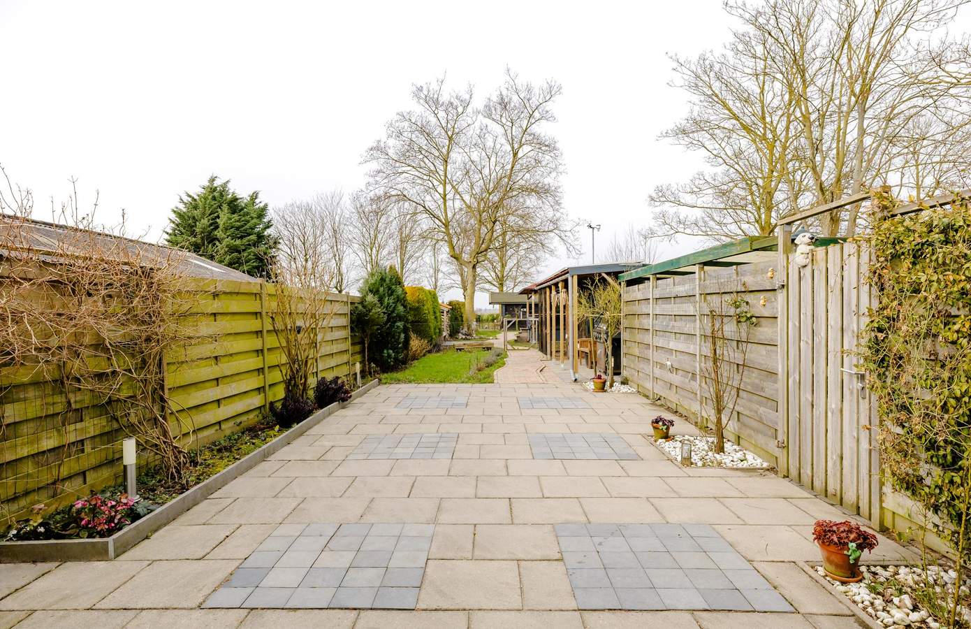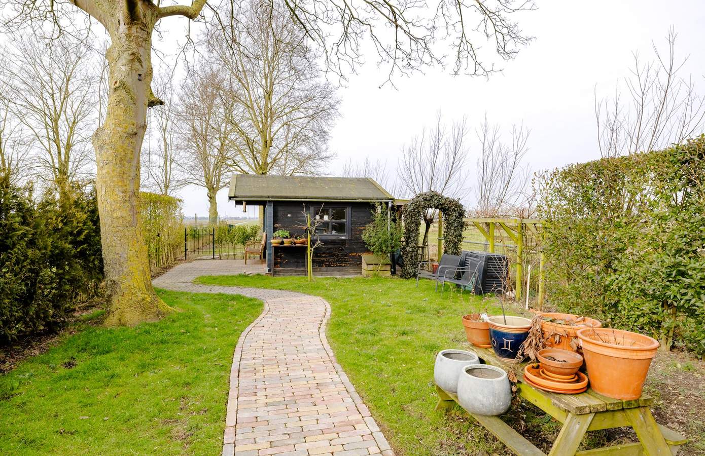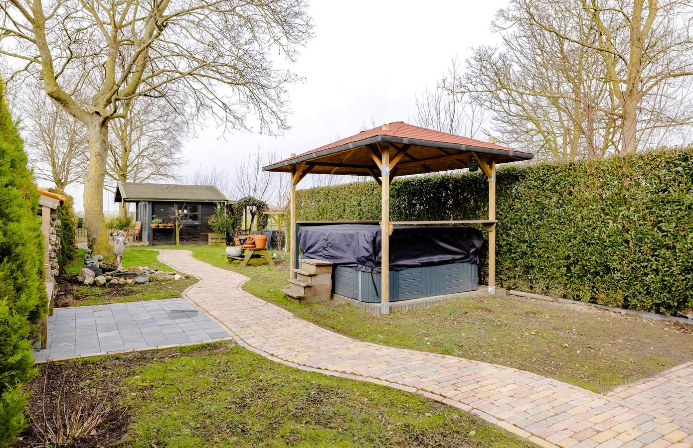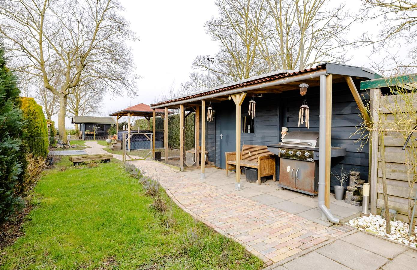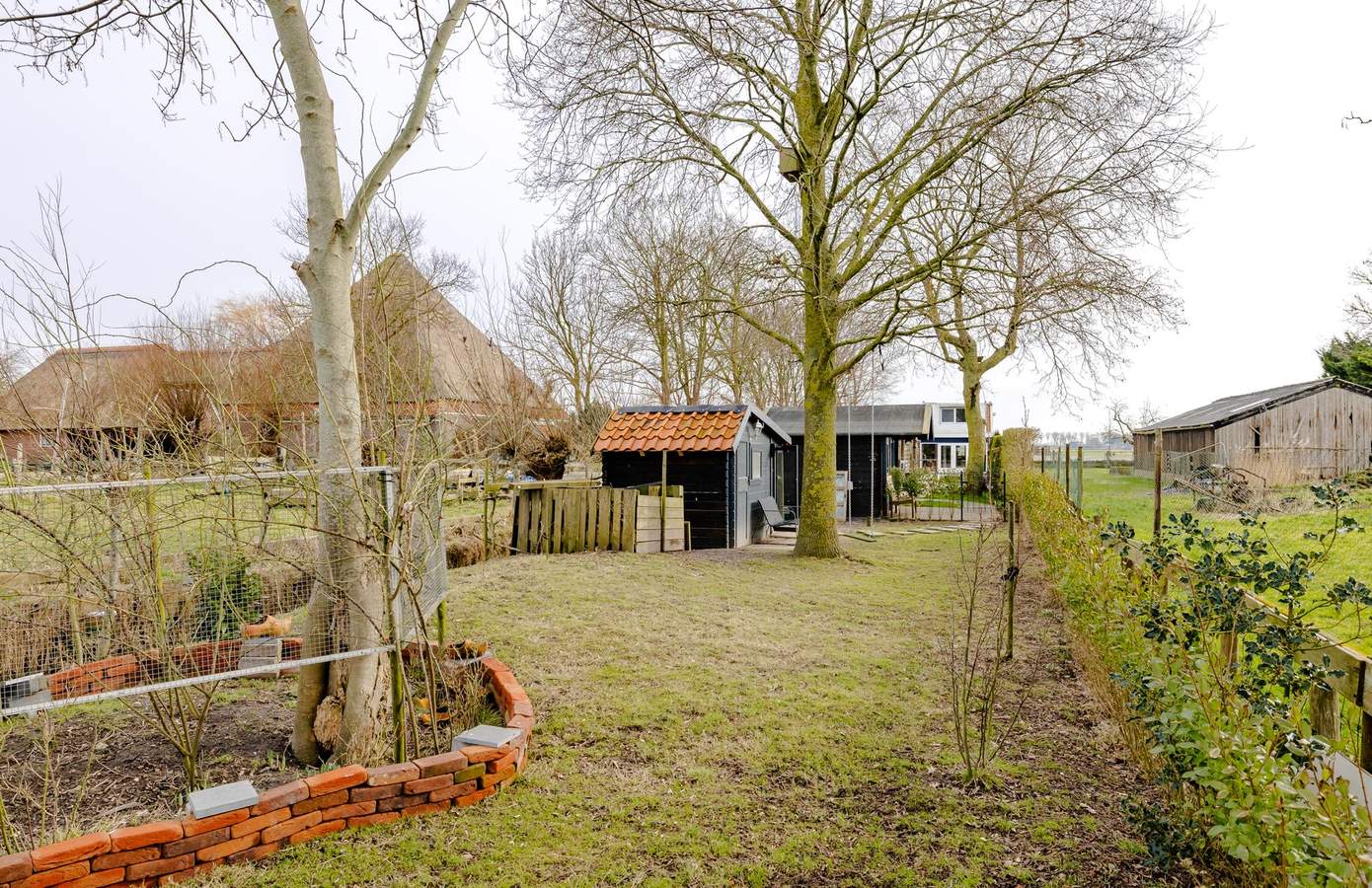 Er is een royale overkapping met buitenkeuken, een heerlijke plek voor lange zomeravonden met familie en vrienden. Daarnaast beschikt de tuin over een jacuzzi (deels werkzaam), meerdere bergingen en zelfs een kippenhok. Of u nu droomt van een moestuin, speelruimte voor kinderen of simpelweg vrijheid en ruimte om u heen: hier kan het allemaal. Op heldere avonden ziet u hier letterlijk de zon achter de horizon verdwijnen.