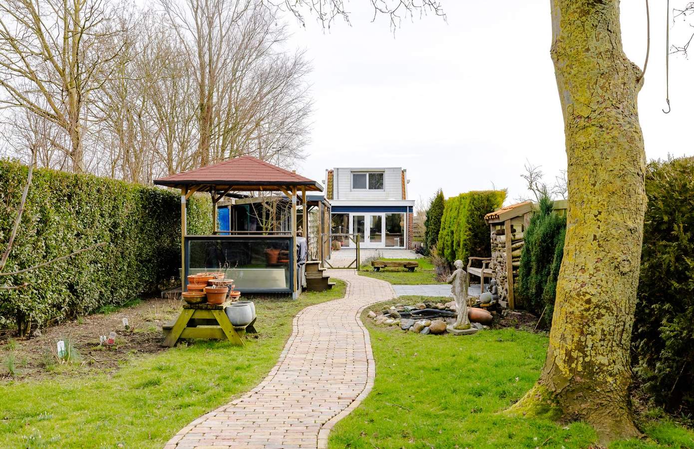 Wat deze woning écht bijzonder maakt, is de tuin. Met een diepte van circa 70 meter ervaart u hier het ware buitenleven. Direct achter de woning ligt een zonnig terras op het zuidwesten. Verderop in de tuin vindt u meerdere plekken om te zitten, te ontspannen en te genieten van rust en privacy.