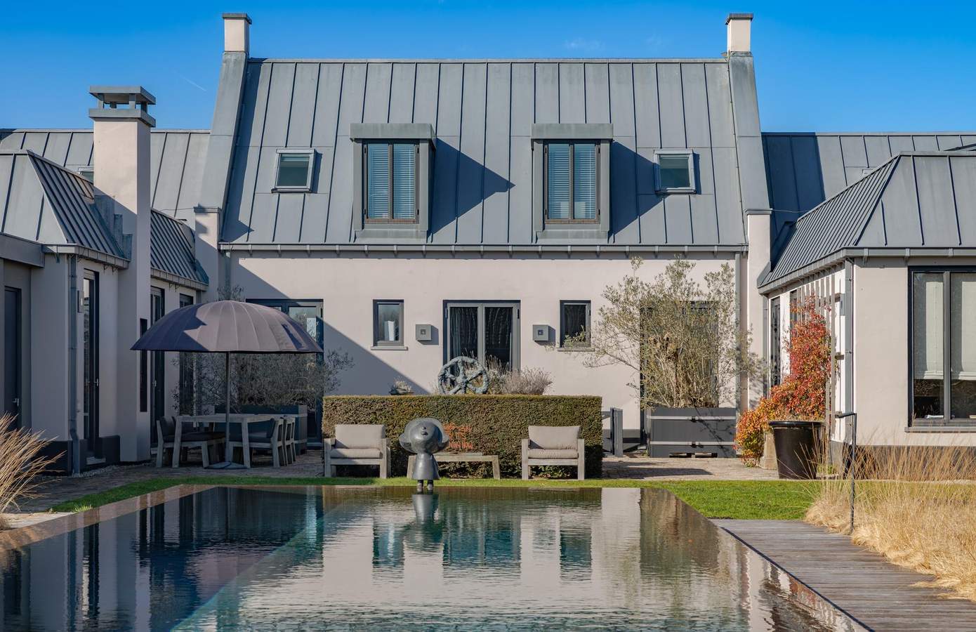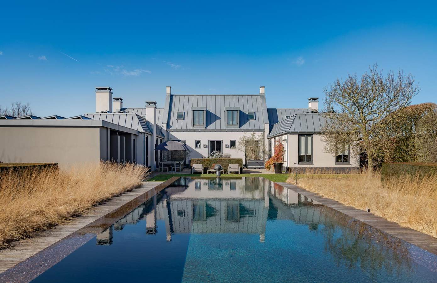 Hoewel het landhuis 25 jaar geleden werd gebouwd, voelt het nog altijd verrassend modern. Dat is de kracht van een tijdloos ontwerp.