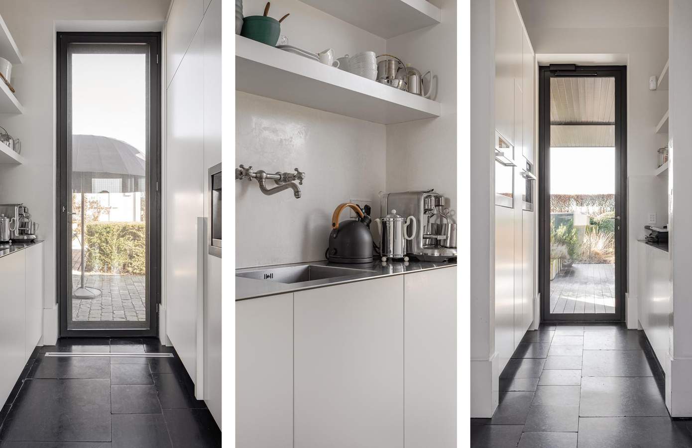 In het souterrain bevindt zich een bioscoop en sportruimte. Vanuit deze verdieping leiden twee trappen rechtstreeks naar de binnentuin, waardoor ook hier het contact met buiten voelbaar blijft. Aan de andere zijde van de woning bevindt zich bovendien een karaktervolle wijnkelder.