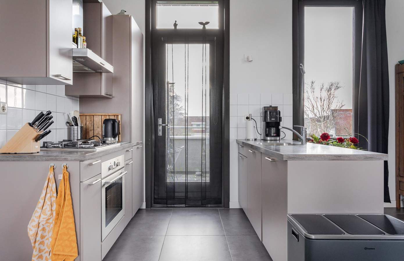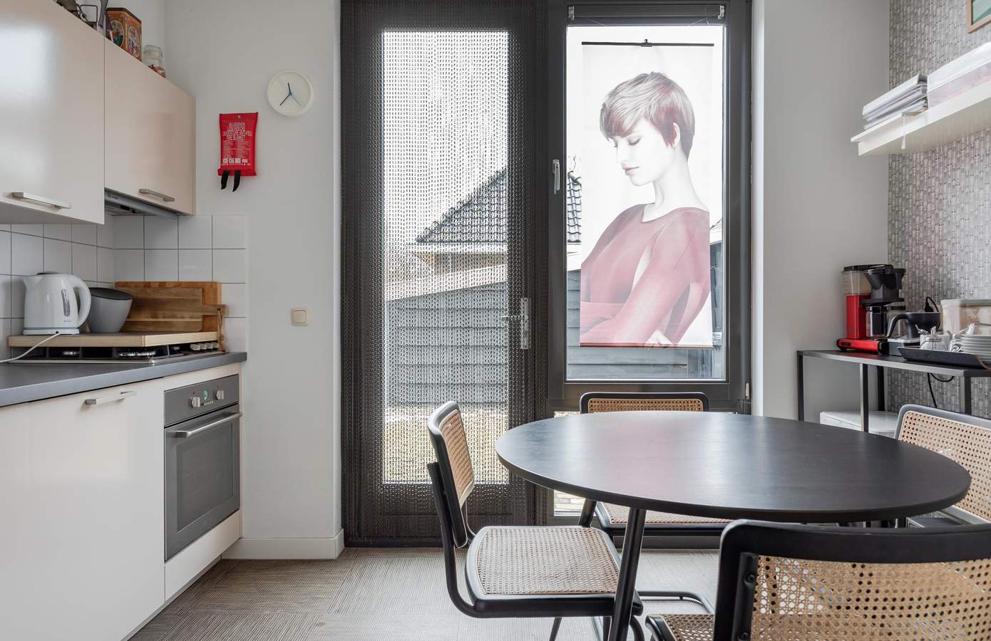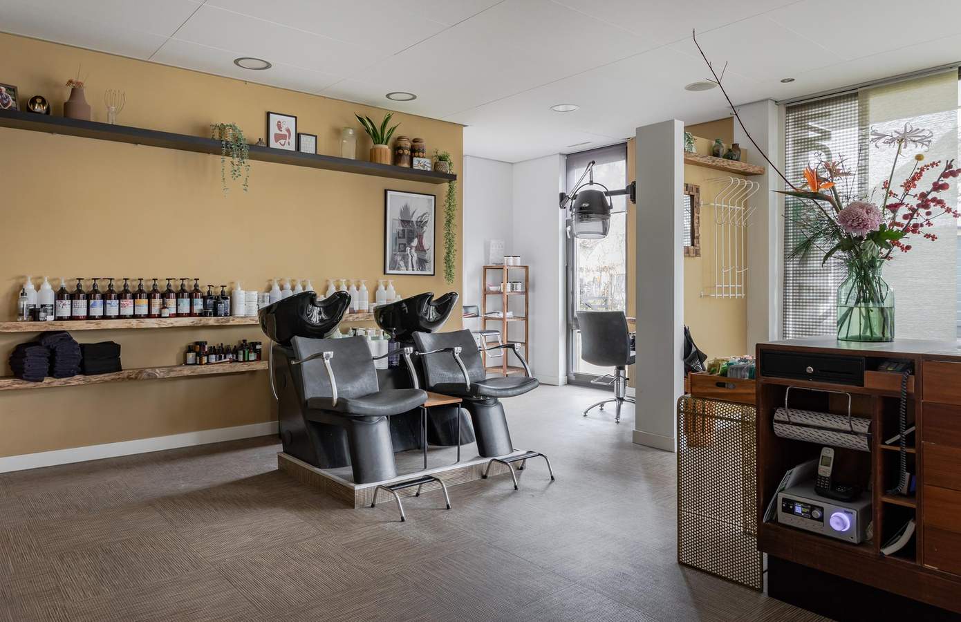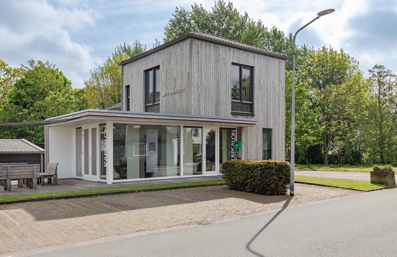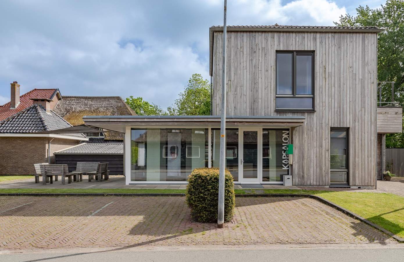 Met een oppervlakte van 77 m² en een aangrenzende garage van 22 m² biedt deze ruimte diverse mogelijkheden. Momenteel huisvest het een kapsalon, maar het staat open voor de vestiging van verschillende andere bedrijven. Bij binnenkomst via de hoofdingang komt u in een ruime, lichte ruimte terecht. De grote glazen pui aan de voor- en zijkant van het pand, voorzien van openslaande deuren aan de zijkant, zorgt voor een overvloed aan natuurlijk licht en een directe verbinding met buiten. De gehele ruimte is uitgerust met inbouwspots en wordt verwarmd door middel van luchtverwarming. Daarnaast beschikt het over een volledig geïntegreerd muzieksysteem. Vanuit de centrale ruimte heeft u inpandig toegang tot de garage met dubbele deuren, welke ideaal is voor extra opslagruimte of handig als aanvullende werkruimte. Verder leidt de centrale ruimte naar een apart toilet en twee afzonderlijke vertrekken, welke op dit moment beide zijn uitgerust met een keukenopstelling. De keuken aan de achterzijde is volledig uitgerust met een oven, kookplaat en koelkast, en biedt toegang tot een aangename buitenruimte.