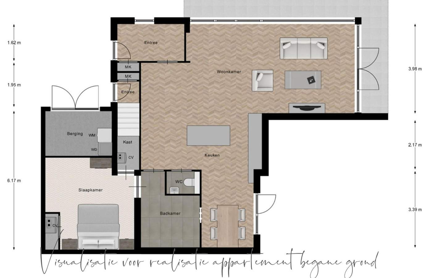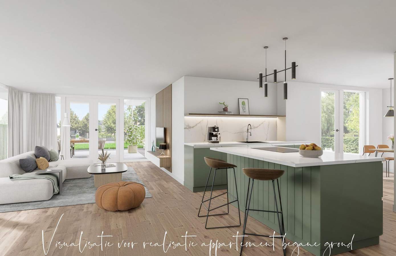 Hoewel het appartement op de begane grond nog gerealiseerd moet worden, willen we u alvast een voorproefje geven van de mogelijkheden. Prachtige visualisaties zijn beschikbaar om uw verbeelding te prikkelen en inspiratie te bieden. Natuurlijk heeft u de volledige vrijheid om de ruimte geheel naar eigen wens in te richten.