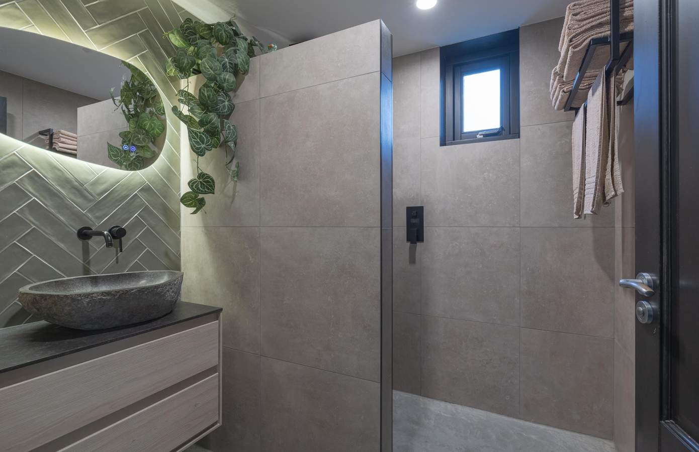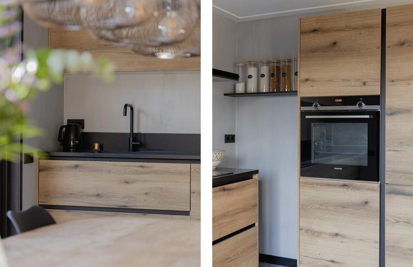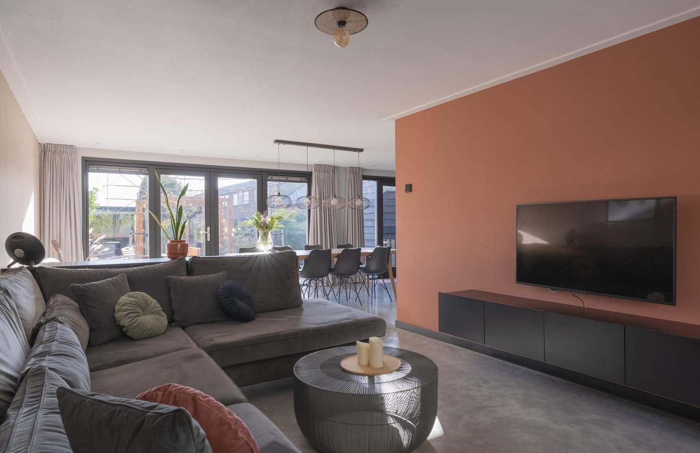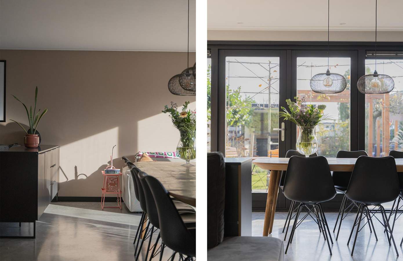 Zodra u binnenstapt, voelt u dat hier met liefde is gewerkt aan elk detail. De begane grond heeft een stoere betonvloer met vloerverwarming, die warmte en design moeiteloos combineert. De eethoek baadt in het licht door de grote raampartijen en openslaande deuren naar de prachtig aangelegde tuin. De keuken is strak vormgegeven in houtlook met zwarte accenten en heeft diverse inbouwapparatuur. De badkamer is op de begane grond gelegen en is keurig afgewerkt met visgraattegels, een regendouche en een natuurstenen waskom. Aan de voorzijde is een multifunctionele kamer, hier is een garderobe kast en de aansluitingen voor de wasmachine en droger. De slaapkamer op de verdieping ademt rust en ruimte, met witgeschilderde balken en veel natuurlijke lichtinval. Het grote dakraam zorgt voor een fijne, lichte sfeer en uitzicht op het groen. De lichte vloer en neutrale tinten versterken het gevoel van ruimte. Een praktische werkhoek en ruime opbergmogelijkheden maken de kamer compleet.