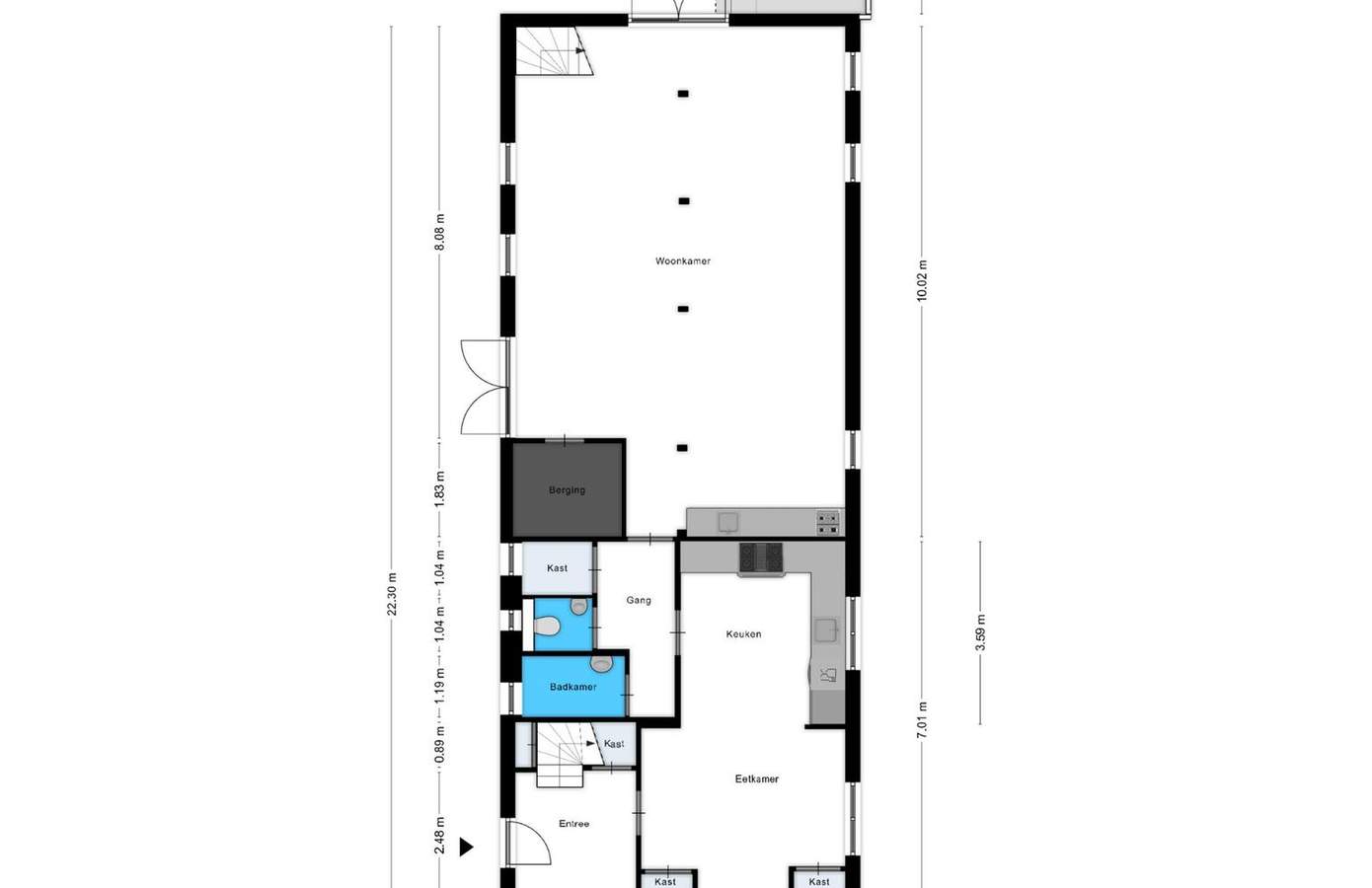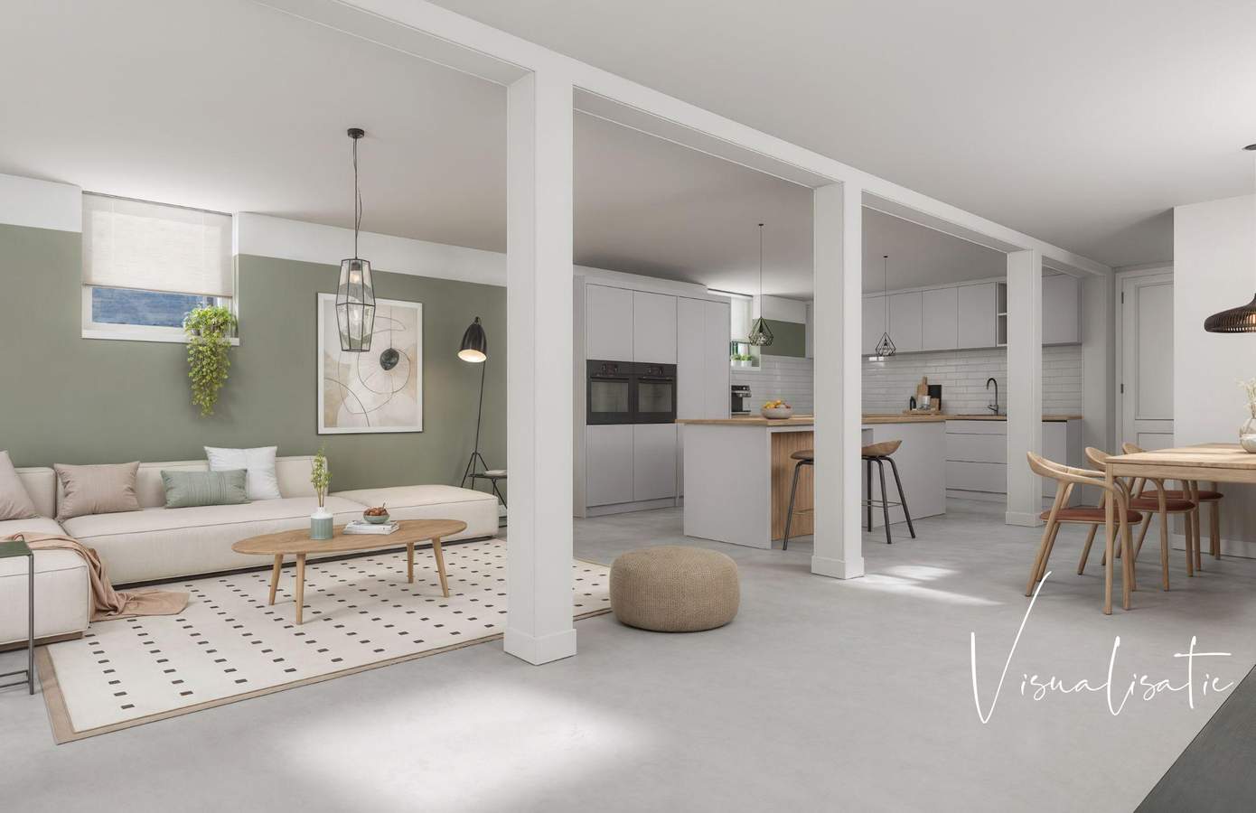 • Uitbreidingsmogelijkheden: De extra woonruimte kan eenvoudig bij de hoofdwoonruimte worden betrokken door de muur vanuit de keuken door te breken.