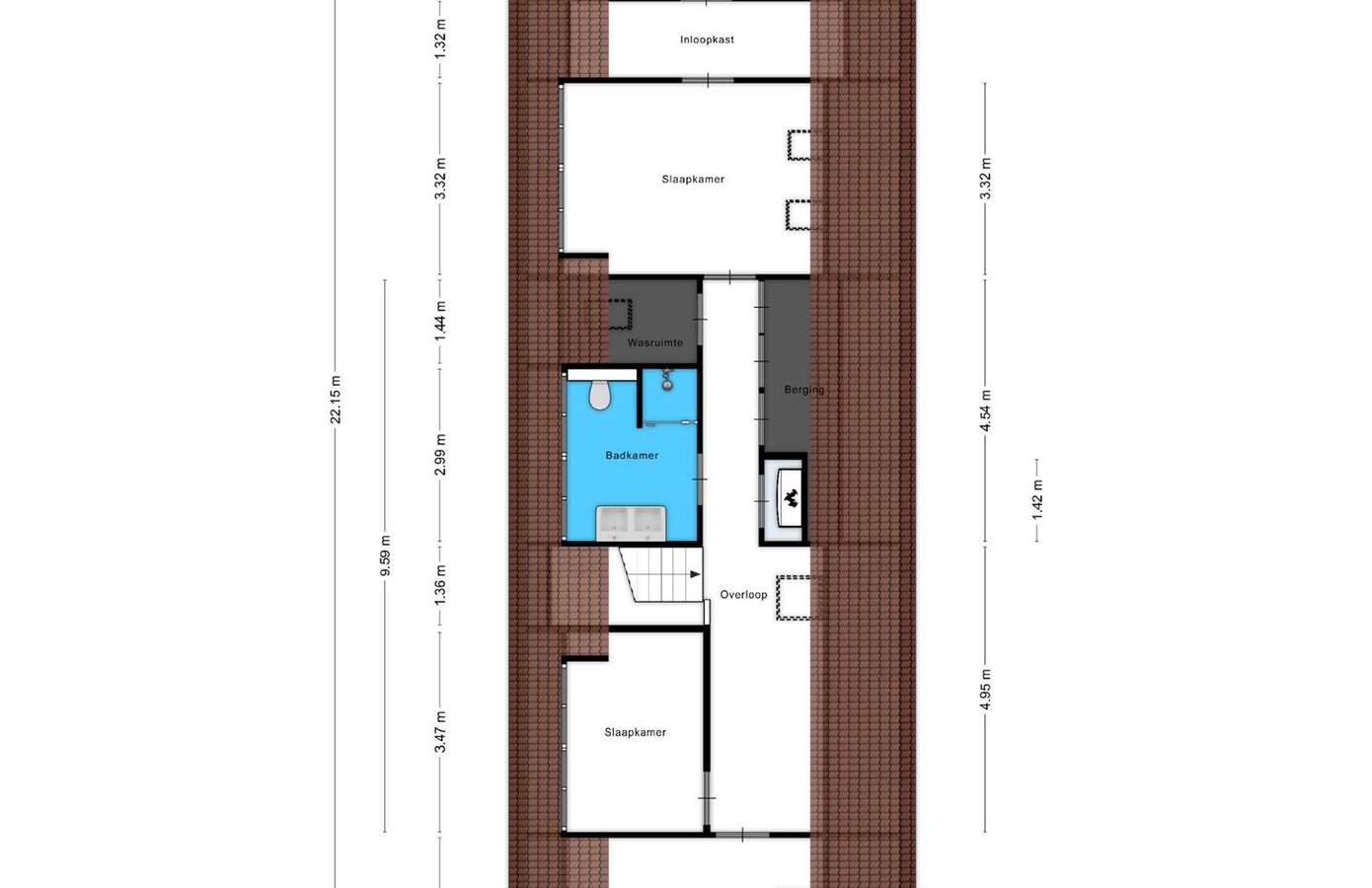 De bovenverdieping is voorzien van maar liefst vier slaapkamers. De royale overloop beschikt over een grote inbouwkast, een aparte wasruimte en een ruime badkamer. Deze badkamer is van alle gemakken voorzien, met een inloopdouche, toilet en een dubbele wastafel.