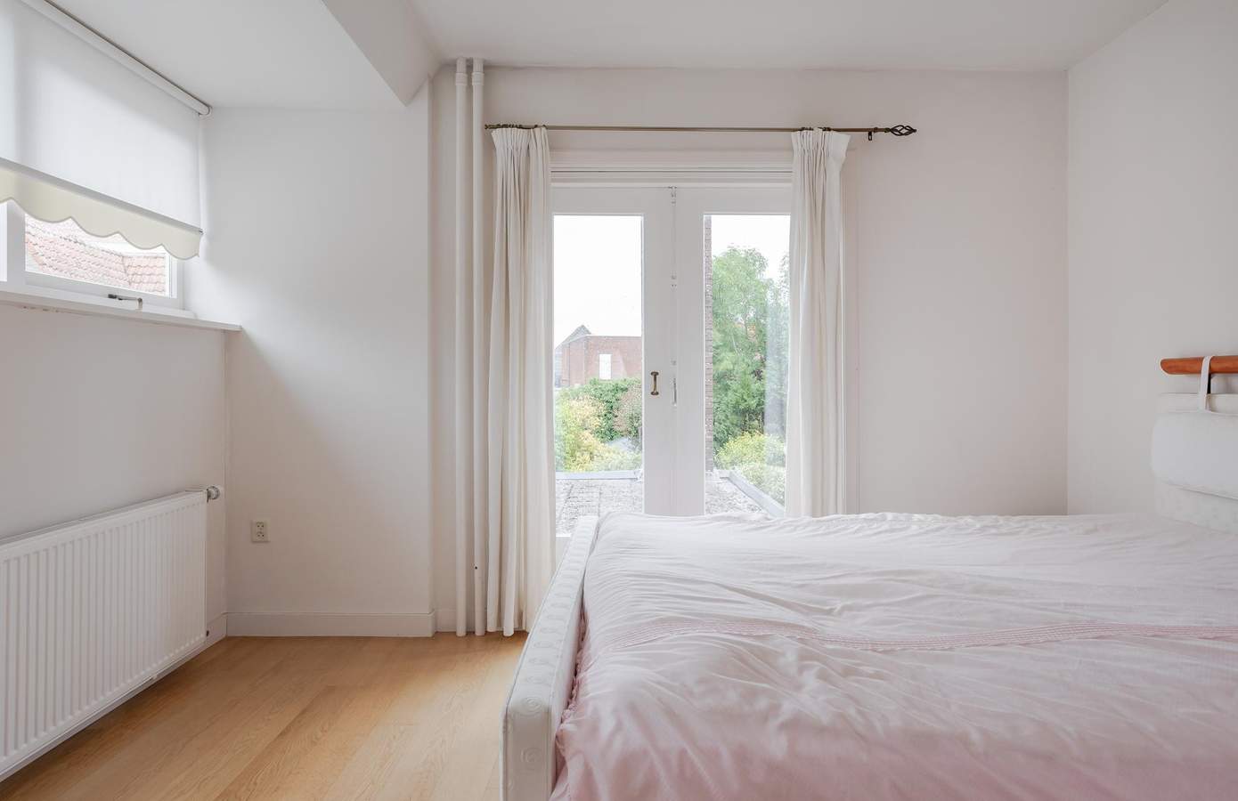 Op de verdieping bevinden zich drie royale slaapkamers, waarvan één met openslaande deuren naar een eventueel te realiseren balkon. Verder nog een badkamer en een vlizotrap naar de zolder. Op de zolder treft u nog een tweetal slaapkamers, vroeger kon dit zo. Tegenwoordig moet er wel een vaste trap komen om deze hier daadwerkelijk voor te kunnen gebruiken.