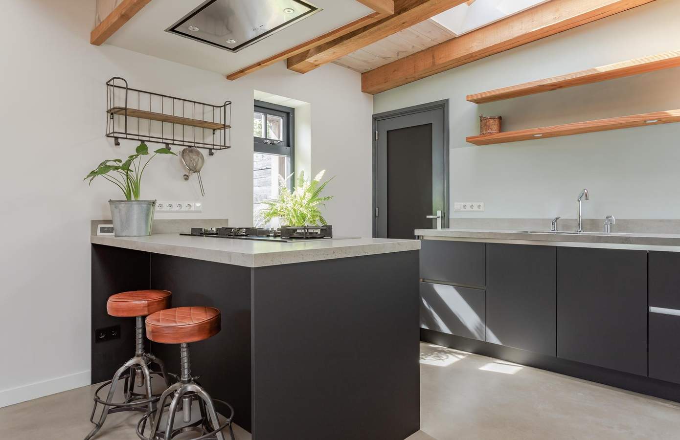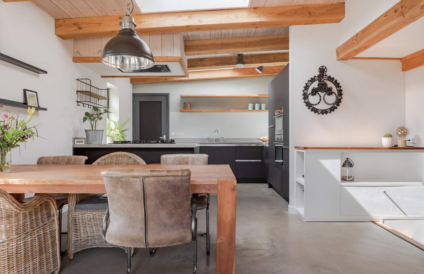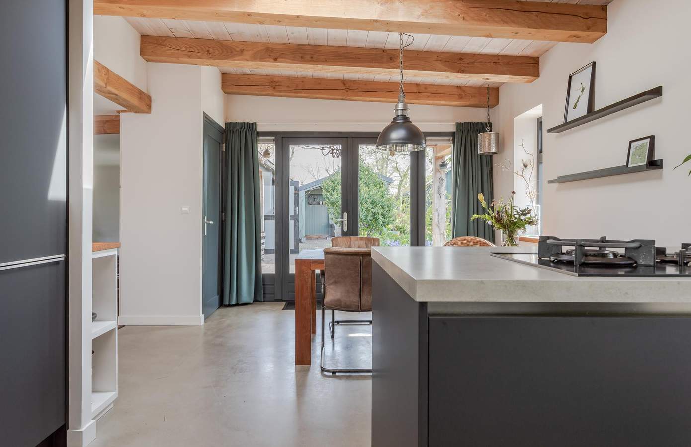 Binnen in de woning neemt u dit gevoel mee. U komt binnen in de leefkeuken, een chique zwarte keuken met kookeiland en diverse inbouwapparatuur. Een fijne ruimte waar niet alleen in, maar ook vanúít geleefd wordt, een centrale plek in het huis. De woonkamer aan de voorzijde is voorzien van een houtkachel. De slaapkamer op de begane grond heeft een inloopkast en een badkamer, voorzien van een dubbele douche, wastafel en een toilet. Verder is er op de begane grond nog een separaat toilet en aan de achterzijde van de woning een bijkeuken. Op de eerste verdieping zijn drie slaapkamers en een badkamer met een toilet, douche en wastafel.
