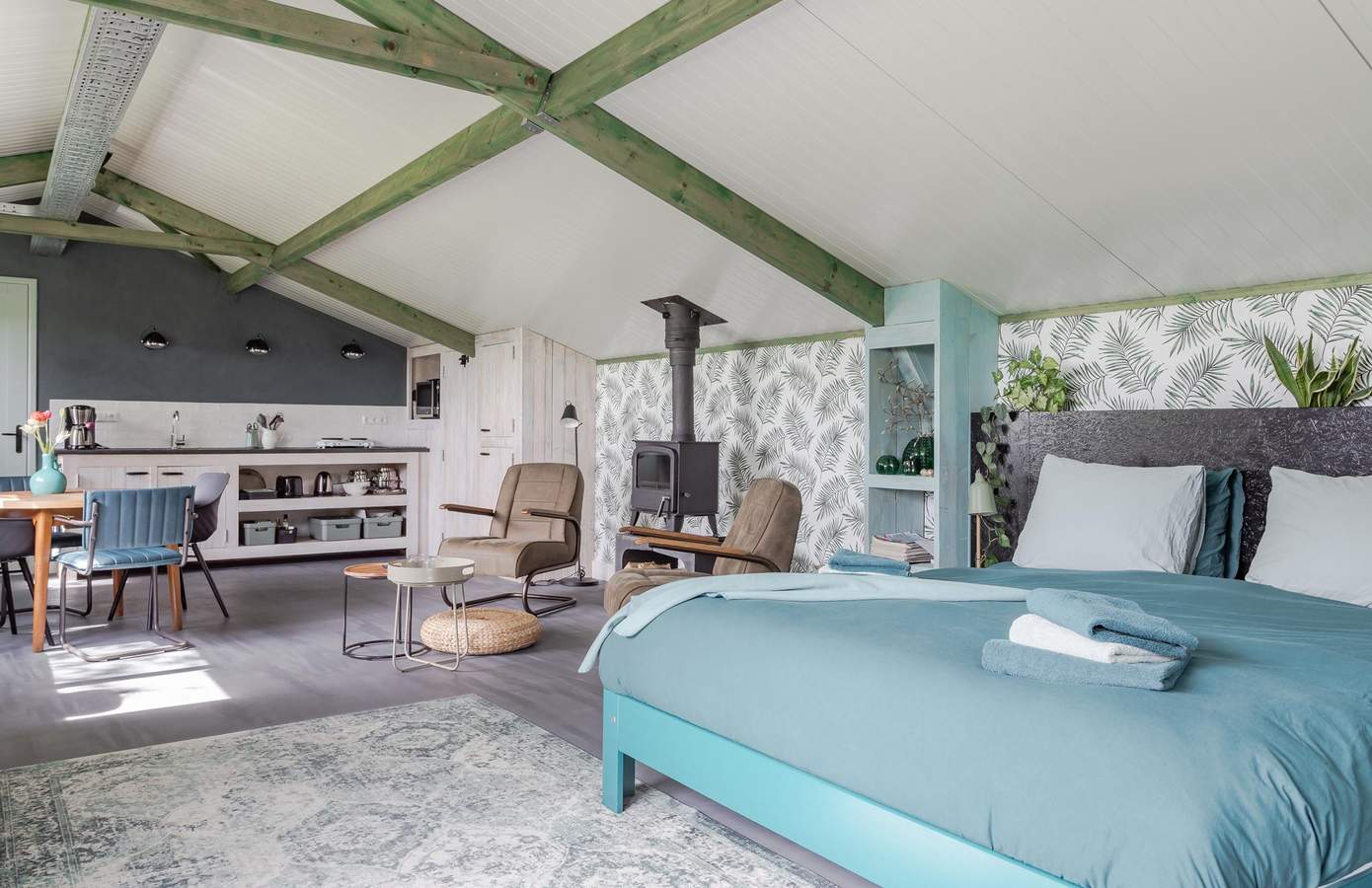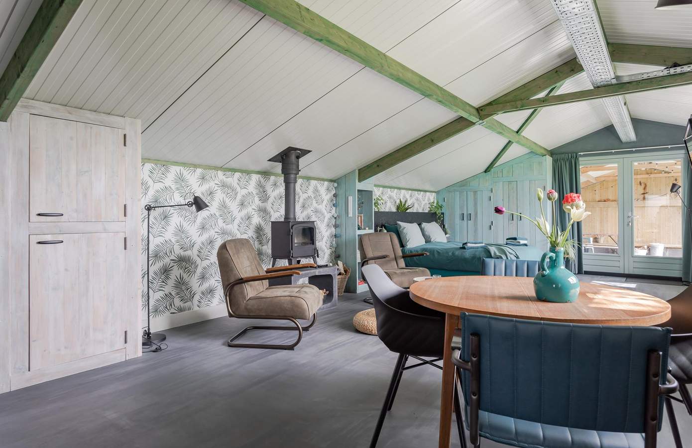 De loft wordt momenteel gebruikt als B&B. Een oude schuur welke opnieuw is opgetrokken, enkel een buitenmuur is blijven staan. De loft is ingericht als studio, voorzien van een keuken met inbouwkoelkast, een badkamer met ligbad en een sfeervolle ‘woonkamer’ met houtkachel. In het verlengde is aan de buitenkant nog een overkapping en de loft heeft een eigen oprit. Deze bevindt zich aan de andere kant dan het woonhuis, waardoor zowel de gasten als uzelf genoeg privacy hebben.