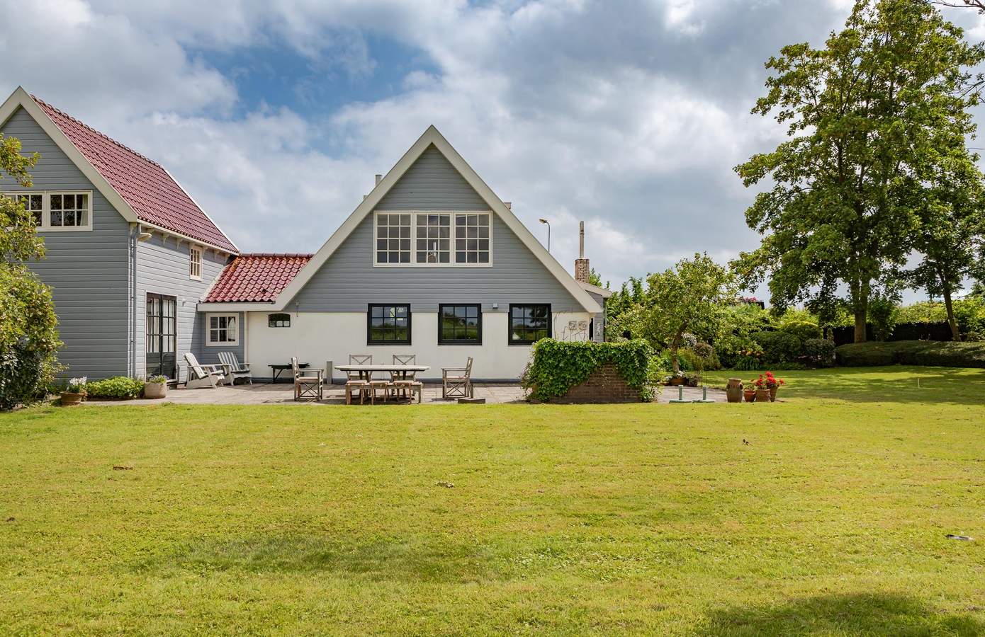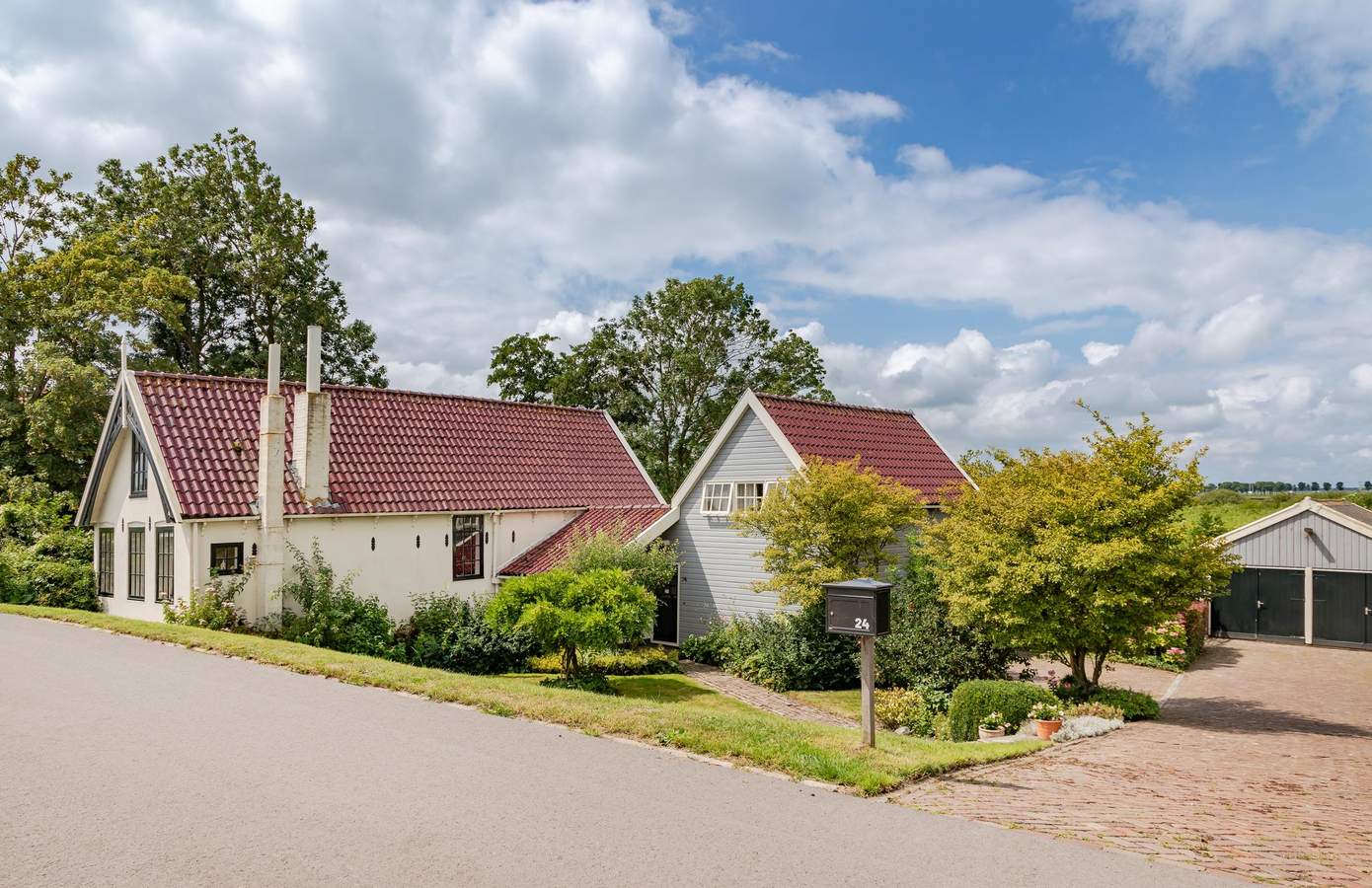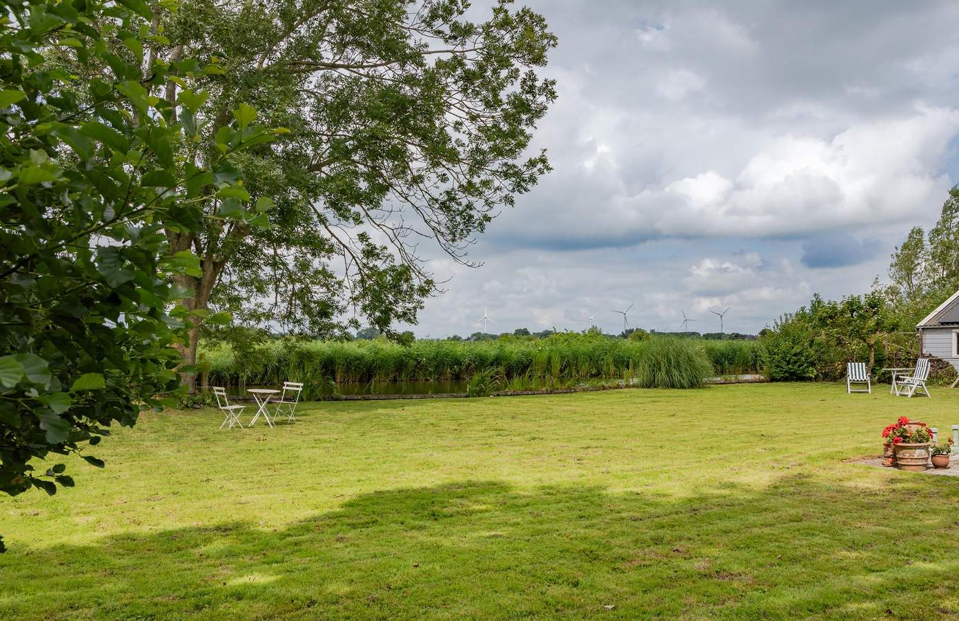 Het erf rondom de woning ademt vrijheid. Vanaf het grote gazon kijkt u uit op de rietkragen en het kabbelende water van het aangrenzende natuurgebied. Een plek waar u in de zomer aan het water zit, vanaf de steiger het water induikt, waar kinderen spelen op het gras en waar u het jaar rond geniet van vogels, vergezichten en rust. Terrassen, zitplekken en volwassen begroeiing maken dit een erf waar u altijd een fijne plek vindt in zon of schaduw. De ligging tegen de dijk geeft een gevoel van beschutting en privacy, terwijl het open landschap rondom juist ruimte en weidsheid brengt. Aan de voorzijde bevindt zich bovendien een ruime oprit met parkeergelegenheid en schuur/berging voor opslag, hobby of tuinbenodigdheden.