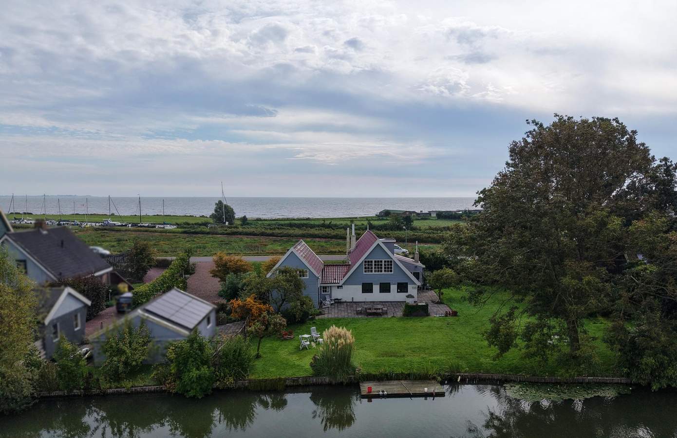 Aan de oever van het Markermeer, op een plek waar het landschap elke dag in een nieuw licht lijkt te staan, vindt u deze bijzondere woning. Een karakteristieke woning uit 1897, ooit gebouwd als timmermanszaak en voorzien van een sierlijke daklijst die diende als visitekaartje van de maker. Meer dan een eeuw later vormt dit bijzondere huis nog altijd een eyecatcher aan de historische dijk van Schardam.