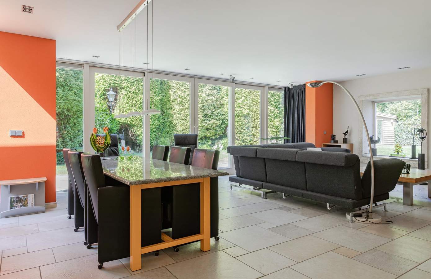 Zodra u binnenstapt, valt het licht u tegemoet. De royale woonkamer baadt in daglicht dankzij de grote raampartijen, die zicht bieden op de tuin rondom. De vloerverwarming op de gehele benedenverdieping zorgt voor een behaaglijk woonklimaat. De keuken is modern en functioneel ingericht met een vaatwasser, oven, koelkast en Quooker. Op de begane grond bevindt zich ook een comfortabele slaapkamer – ideaal voor levensloopbestendig wonen. De voormalige inpandige garage is omgetoverd tot een multifunctionele aanbouwruimte, perfect als werkkamer, atelier of extra zitruimte. Op de begane grond vindt u verder nog een separaat toilet, bijkeuken en aangrenzend een hobbyruimte. Vanuit de bijkeuken is ook de kelder te bereiken, hier is de technische installatie én niet geheel onbelangrijk: de wijnvoorraad. Boven vindt u drie ruime slaapkamers, waarvan één bijzonder royaal is en eventueel in twee kamers kan worden gesplitst. In één van de slaapkamers is een badkamer aanwezig, voorzien van een douche en een wastafel.