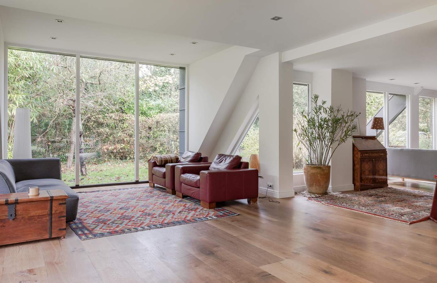 Aan een van de stilste en meest groene laantjes van Schoorl ligt deze imposante vrijstaande villa uit 1977, gebouwd door een vakkundige aannemer die hier zelf ging wonen. Dat vakmanschap ziet u terug in de degelijkheid van het huis, de doordachte indeling en de solide details. De villa ligt verscholen tussen volwassen beplanting en staat op een perceel van maar liefst 1.996 m². Een plek waar u absolute rust ervaart en waar het huis, met zijn bijzondere architectuur en speelse vormen, zich vanuit elke hoek weer anders toont. Met een woonoppervlak van 262 m², een inhoud van 1.204 m³ en maar liefst vijf slaapkamers is dit een riante woning die warmte, ruimte en functionaliteit combineert. De sfeer is open en licht, maar tegelijk intiem door de verdeling in verschillende leefhoeken. Bovendien beschikt u over een dubbele inpandige garage van 57 m², ideaal voor hobby’s, auto’s of extra opslag. De ligging is uniek. Op loopafstand van het bos, de duinen, de Klimduin en sfeervolle restaurants. Hier woont u in een rustige groene enclave, maar met alle Schoorlse voorzieningen binnen handbereik.
