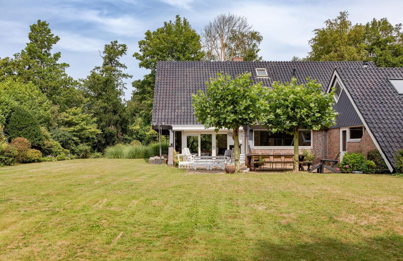 De tuin rondom het huis is ruim en volledig omheind. Een plek waar vogels fluiten, waar de seizoenen elkaar in alle kleuren afwisselen en waar u volop privacy heeft. Dankzij het riante perceel kunt u hier ongestoord genieten van rust, natuur en ruimte. De zon draait prachtig om het huis heen, waardoor u op elk moment van de dag wel ergens een zonnige of juist schaduwrijke plek vindt. Vanuit de woonkamer loopt u zo de tuin in, waar diverse terrassen uitnodigen tot lange zomeravonden met familie en vrienden.