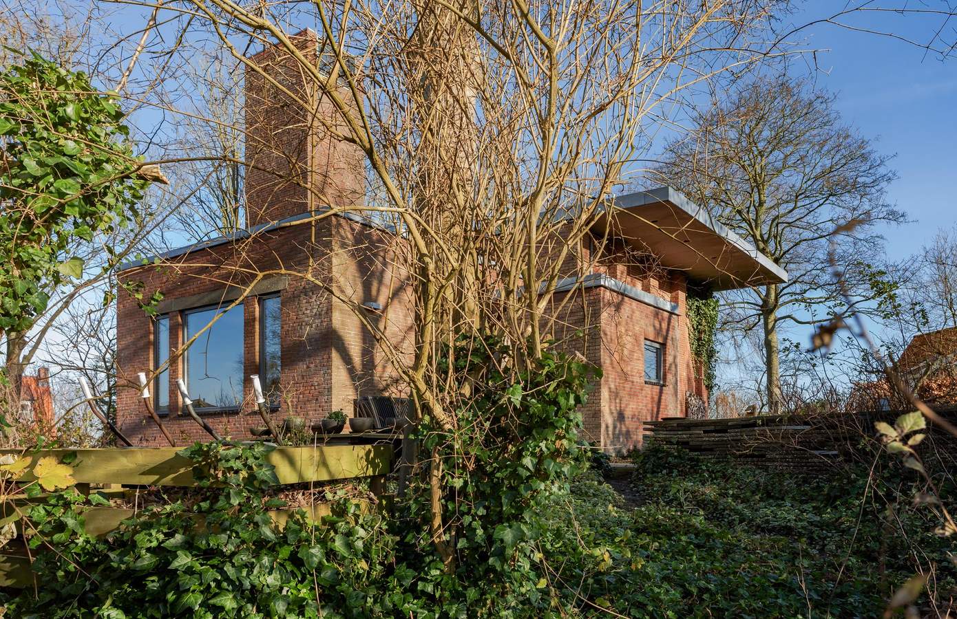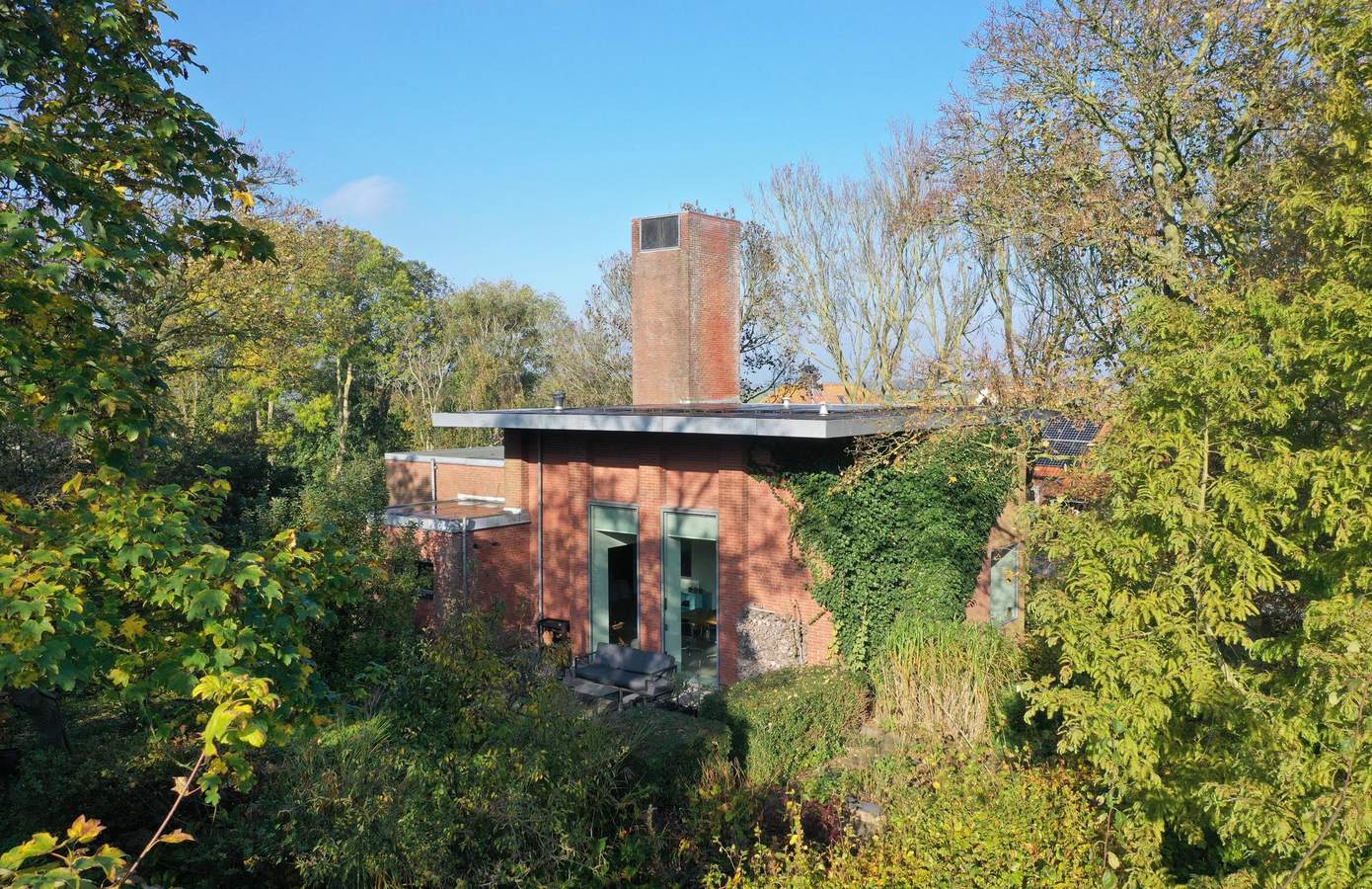 Bewoners aan het woord“Wij hebben hier met ontzettend veel plezier gewoond, maar onze passie trekt: de boot”, vertelt Ingrid “Onze volgende bestemming is Friesland, ergens aan het water. Dat betekent wel afscheid nemen van deze unieke plek. En van de fijne straat. Hier heerst een echt buurtgevoel. Sint Maarten is een levendig dorp.” “De vrijheid en de lichtval ga ik het meest missen”, vult Ton aan. “We wonen ruim vijf meter hoger dan de polder. Niemand merkt ons op, terwijl we toch met de omgeving verbonden zijn. Dankzij de grote raampartijen kan de zon gefilterd door het groen naar binnen schijnen, steeds vanuit een andere hoek, van ’s ochtends vroeg tot zonsondergang. Met de kleuraccenten van het interieur geeft dat prachtige effecten.”