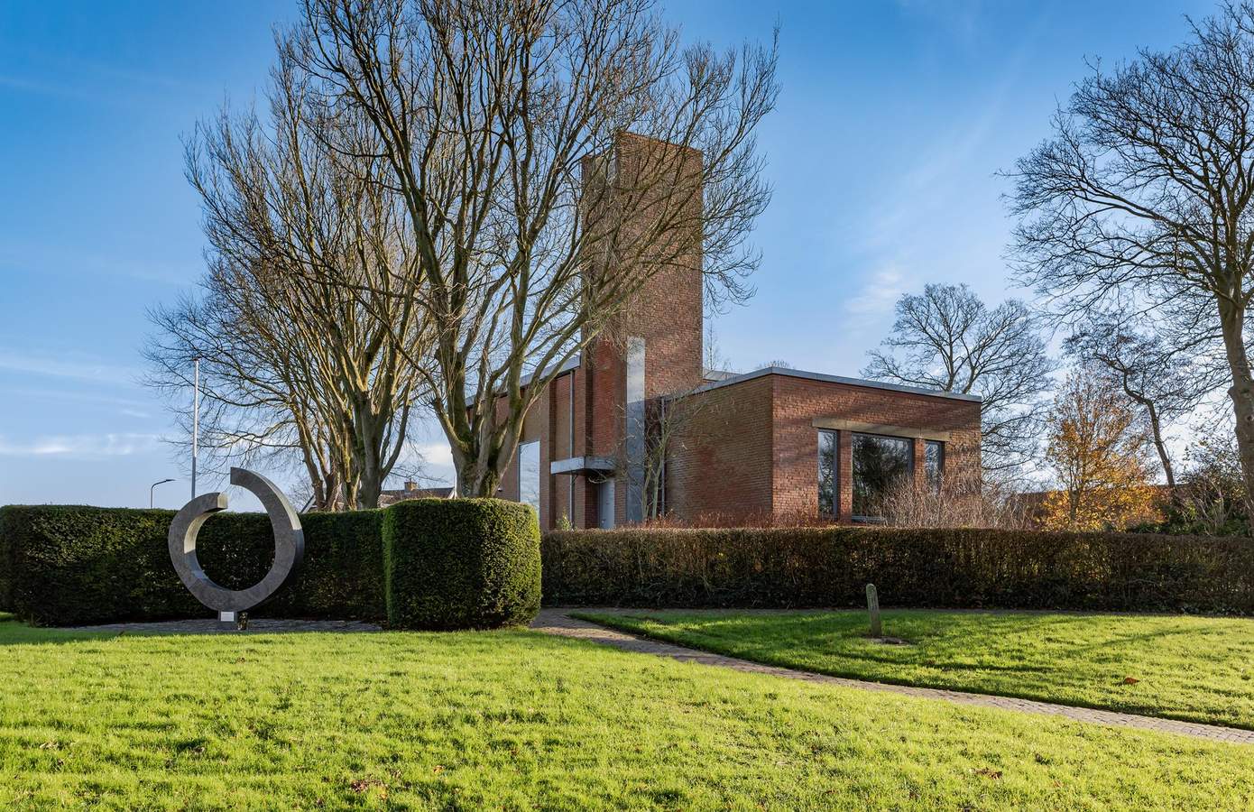 Zoals een vuurtoren schepen veilig langs de zeekust leidt, zo dient licht voor gelovigen als gids naar het juiste pad. Eeuwenlang leende deze terp zich voor beide doeleinden. Waar sinds het jaar 900 godshuizen verrezen en sneuvelden, is het laatste kerkgebouw omgetoverd tot een unieke woning op hoogte. Vanbuiten een krachtig, ietwat gesloten karakter, vanbinnen open en luchtig. Met nog altijd een hoofdrol voor het licht. Elk uur van de dag strooit de zon een vleugje magie door de grote ramen, tussen de vrijstaande binnenwanden door. De fraaie, beschutte tuin maakt het woongenot compleet. Een hemels plaatje.