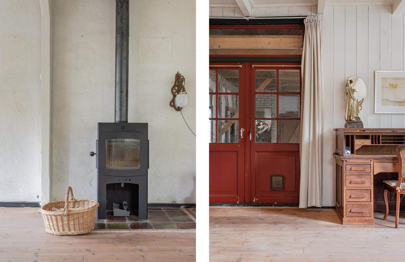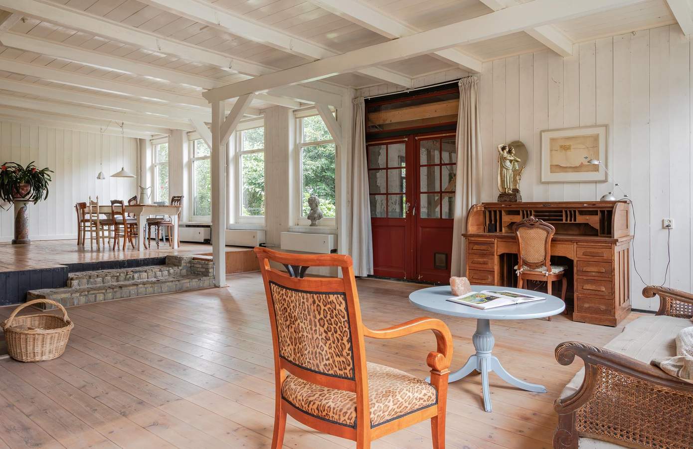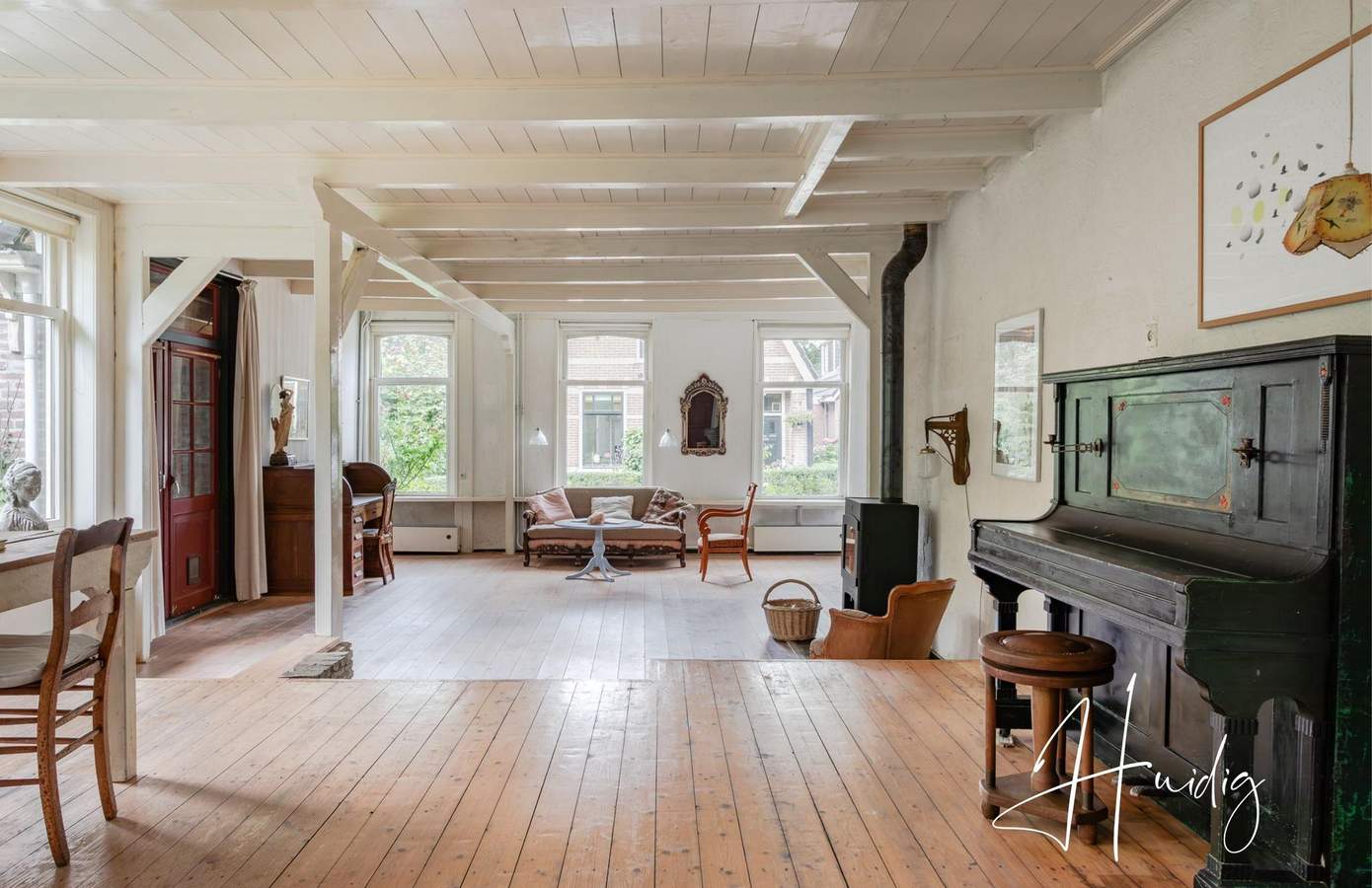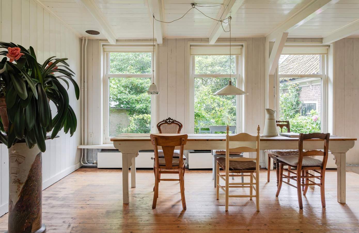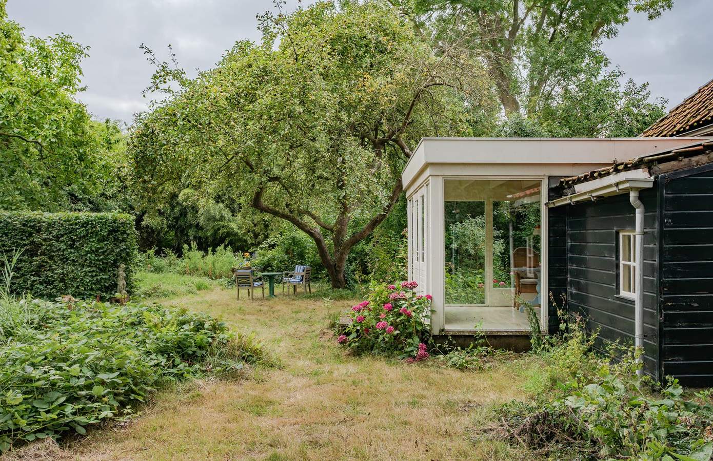 De originele voordeur geeft toegang tot de hal met toilet en meterkast, voorzien van een sfeervolle bakstenen vloer. Vanuit hier bereikt u de lichte, royale woonkamer met houtkachel, de perfecte plek om op koude dagen te genieten van warmte en gezelligheid. Grote ramen zorgen voor een overvloed aan daglicht en bieden een prachtig uitzicht op zowel de tuin als de straatzijde. Een klein hoogteverschil, bereikbaar via een trapje, leidt u naar de eetruimte en de keuken. De keuken kijkt uit op de tuin en beschikt over een tuindeur voor directe toegang naar buiten. Onder de keuken bevindt zich een praktische kelder, ideaal als opslagruimte. Vanuit de woonkamer heeft u ook toegang tot de inpandige schuur met vliering en deur naar de tuin en straatzijde. De tuinkamer is een heerlijke plek om, beschut en warm, van het uitzicht op uw eigen groene paradijs te genieten. Verder vindt u op de begane grond drie slaapkamers en een badkamer. Op de eerste verdieping bevinden zich momenteel drie ruimtes, die u geheel naar eigen wens kunt indelen en vormgeven.