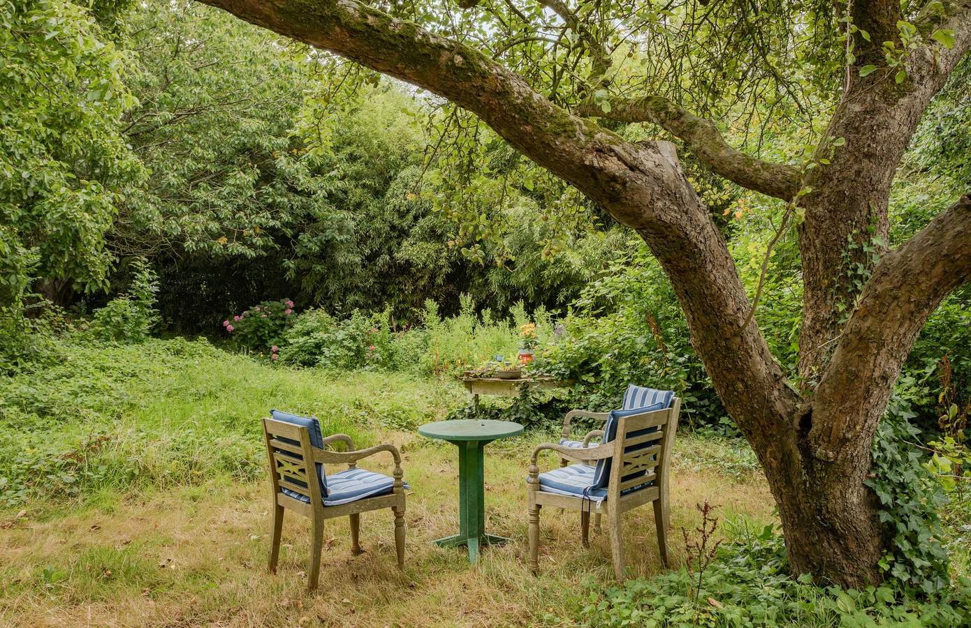 De tuin is een waar paradijs voor tuinliefhebbers: een weelderige oase van planten, struiken, bomen en bloemen. Of het nu lente, zomer, herfst of winter is, hier geniet u elk seizoen in alle rust en privacy. U hoort de vogels fluiten en heeft volop ruimte om te genieten van het buitenleven. Overal in de tuin vindt u fijne zitplekjes, waar u op elk moment van de dag kunt kiezen tussen zon en schaduw. Daarnaast is de tuin rijk aan fruitstruiken en vruchtbomen, waar u zelf appels, pruimen, kersen, kruisbessen, rode bessen, witte druiven en walnoten van kunt plukken. Links van de woning is een eigen parkeerplaats aanwezig. Achter in de tuin staat nog een oude bunker, ideaal als opslag voor hout of tuingereedschap. Hier waant u zich in uw eigen privébos, met volop mogelijkheden voor ontspanning, hobby’s en tuinieren.