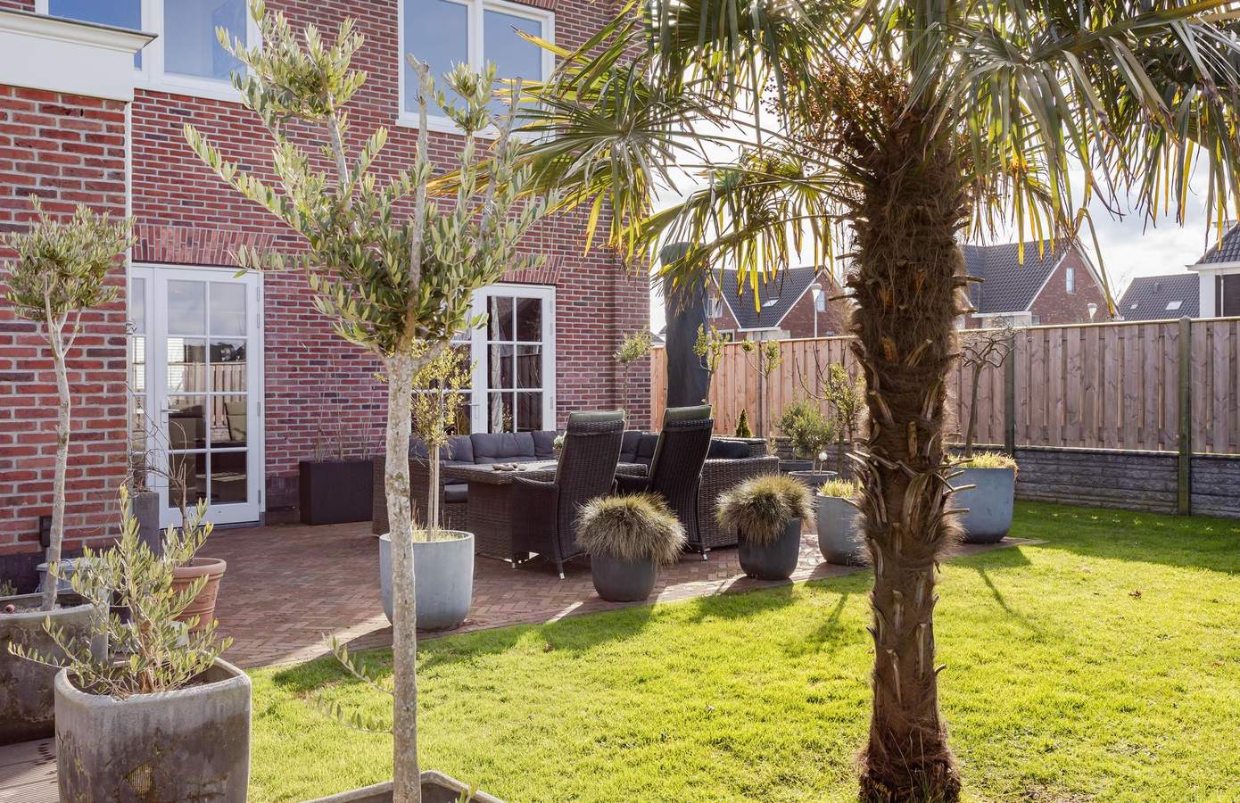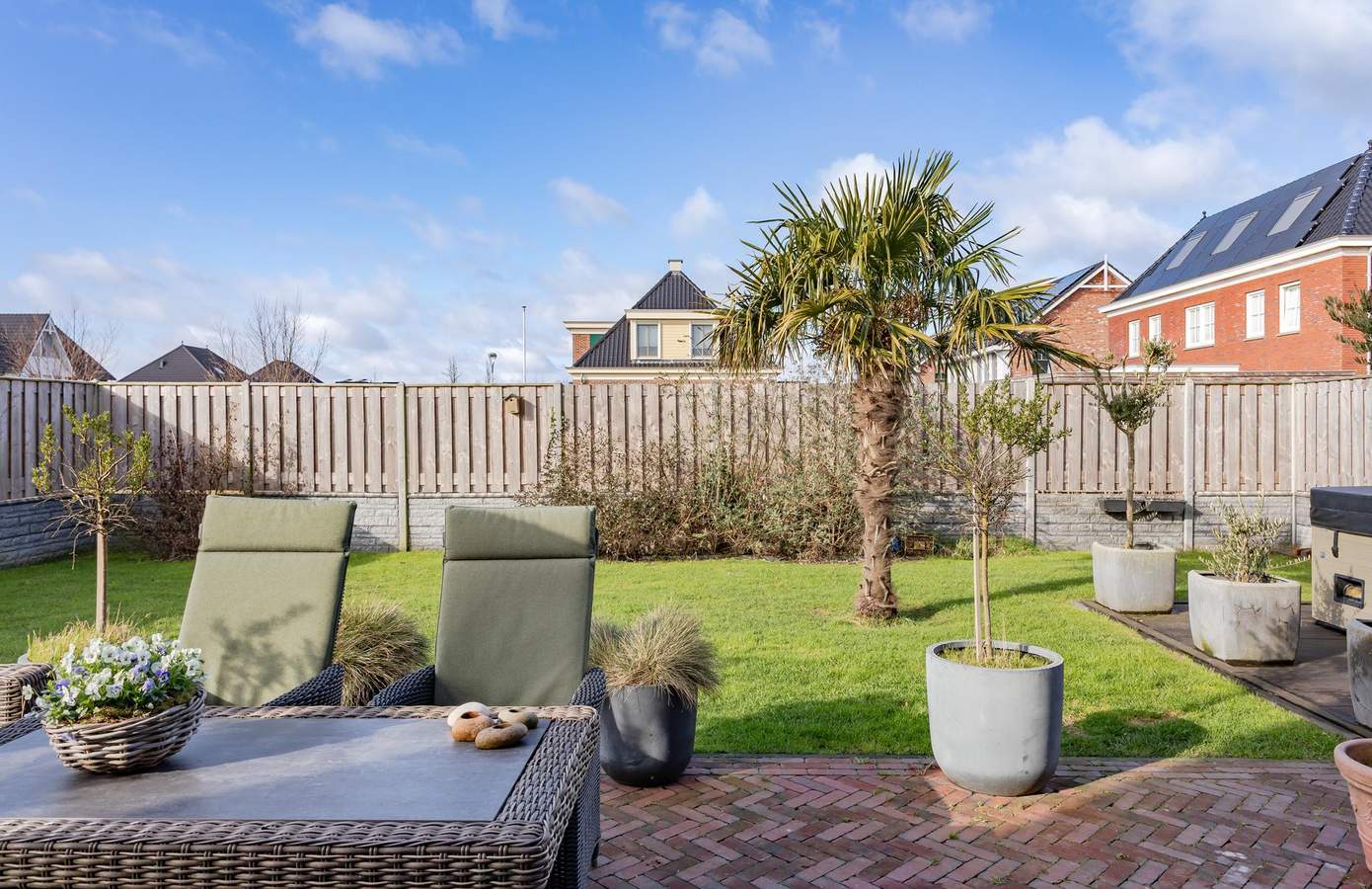 De heerlijke tuin op het zuidwesten biedt de perfecte balans tussen groen en gemak. Dankzij de ruime graspartij en de bestrating rondom de woning is de tuin vriendelijk in onderhoud, terwijl het royale terras aan de achterzijde een heerlijke plek is om te vertoeven.