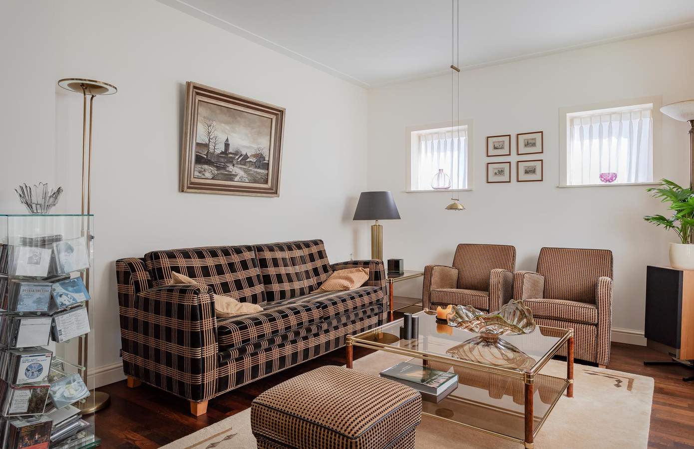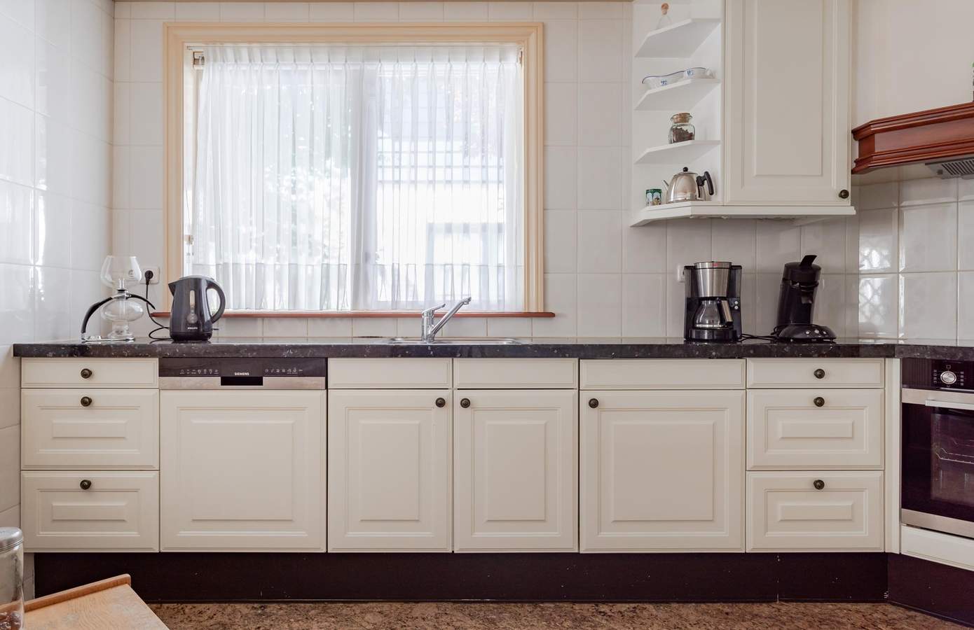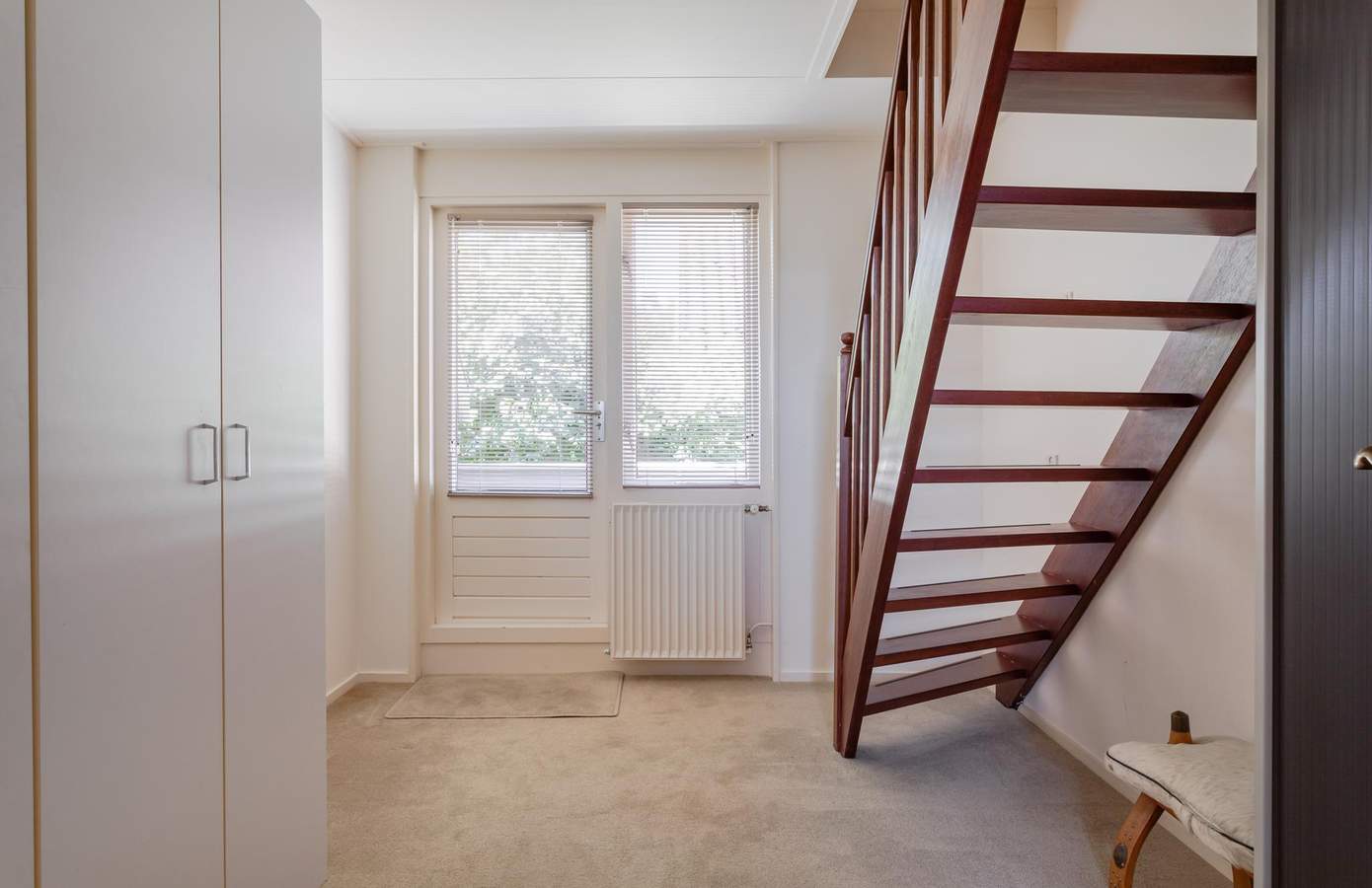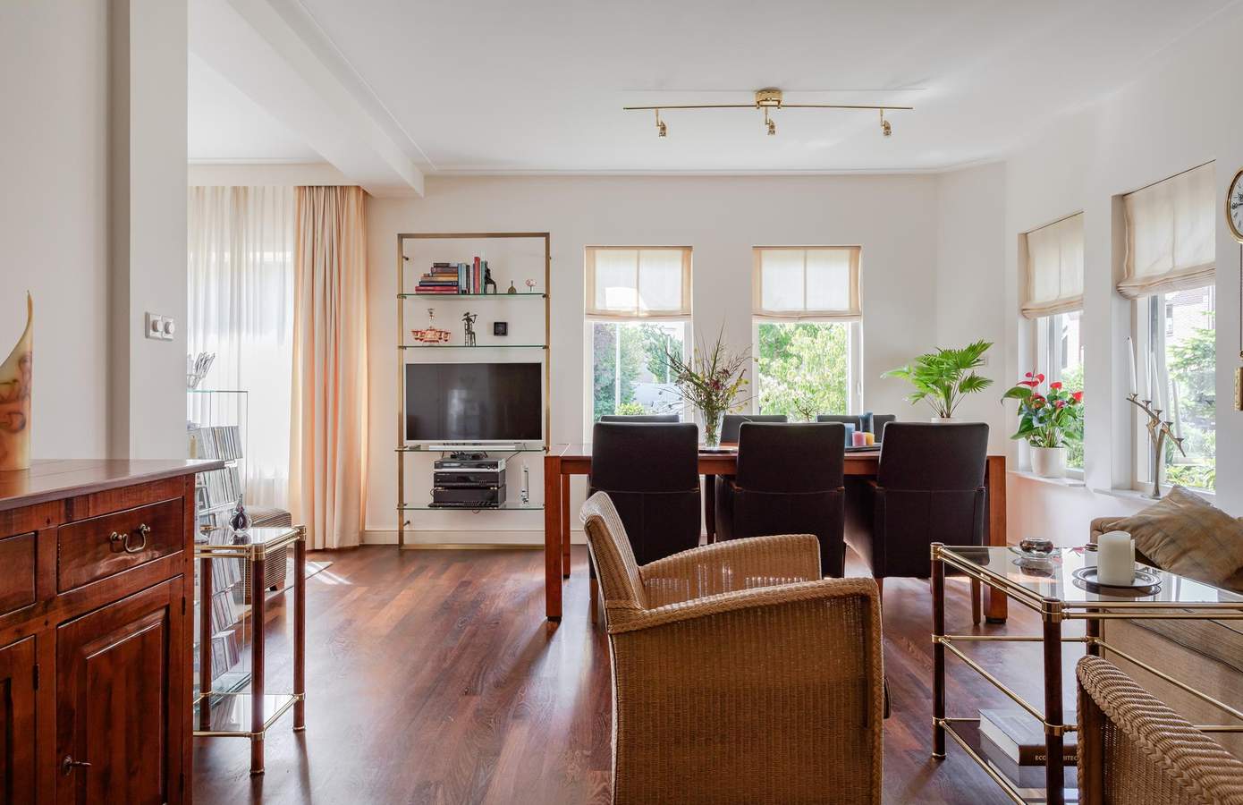 Eerst betreedt u de fraaie stoep en vervolgens een opstapje naar binnen, ‘hoog en droog’ noemen we dat. We staan in de ruime hal met leistenen vloer en vanuit hier is er toegang tot het kantoor, het ruime toilet, woonkamer en de trap naar de verdieping. De woonkamer is straatgericht met goede raampartijen voor fijne lichtinval en heeft een fraaie scheiding met de keuken. Via de keuken bereikt u de bijkeuken met eigen keukenblok en achterdeur.