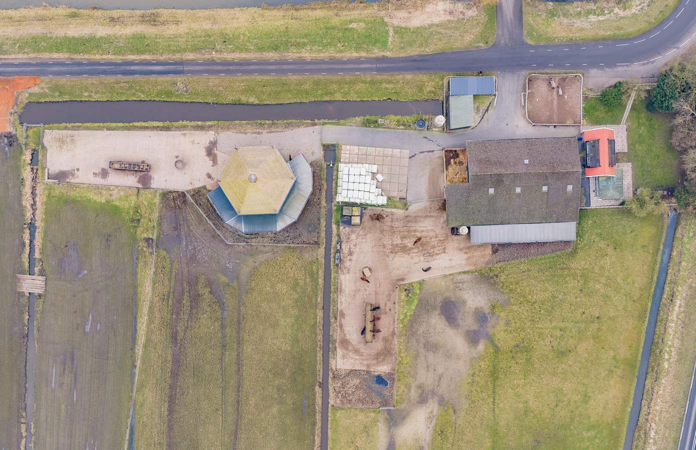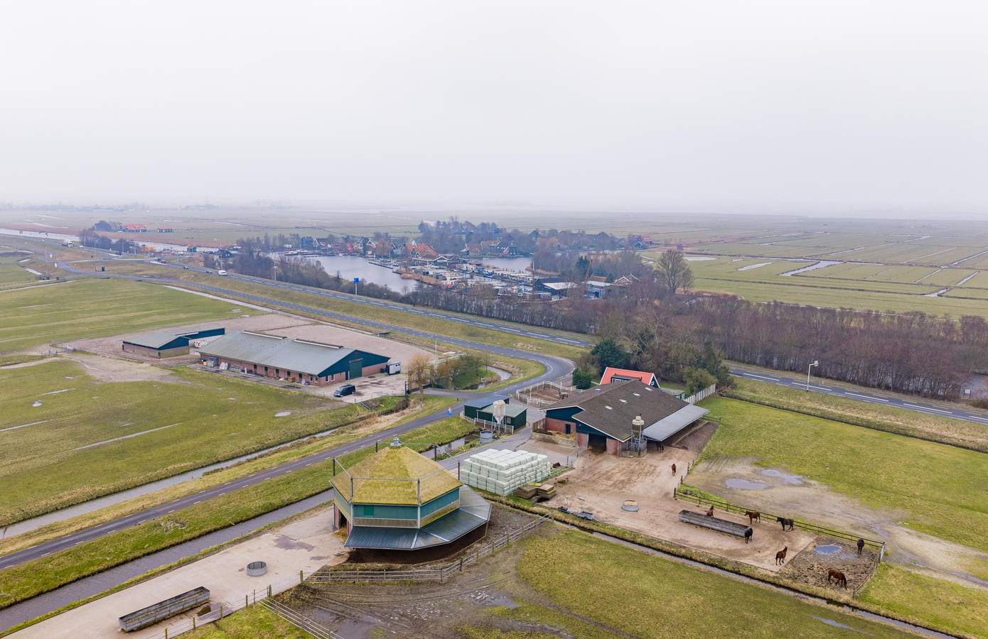 Het erf rondom deze stal is overzichtelijk ingericht en sluit naadloos aan op de woning en de omliggende gronden, wat bijdraagt aan een prettig en efficiënt dagelijks gebruik.