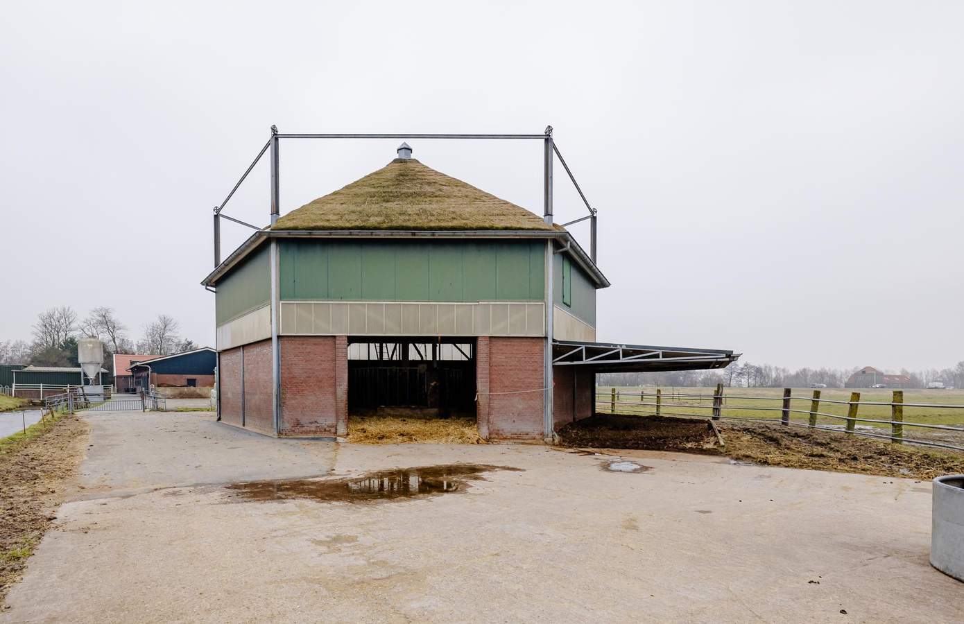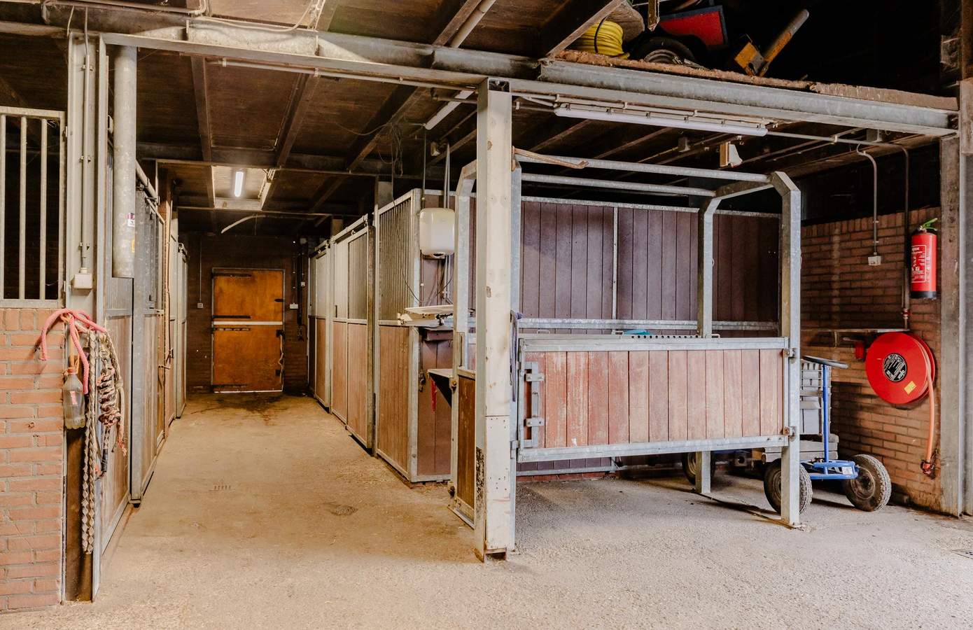 Direct aan de woning bevindt zich een functioneel ingericht stalcomplex. Hier zijn 11 paardenboxen gerealiseerd, aangevuld met een loopstal en een overkapping. Op het perceel staat tevens een kapberg, waar paarden vrij kunnen bewegen en die is voorzien van een automatisch voersysteem met halsbandherkenning. Boven de kapberg bevindt zich een ruime zolder. Tussen de stal en de kapberg bevindt zich een onderbemalingssysteem. Daarnaast is er een losstaande veldschuur met vier paardenboxen.