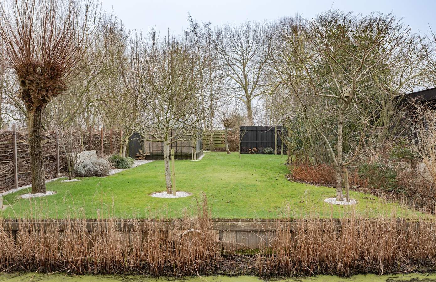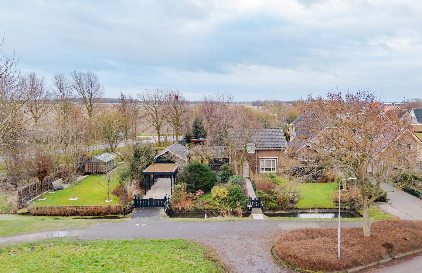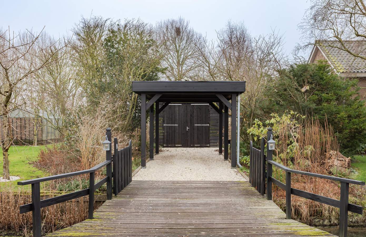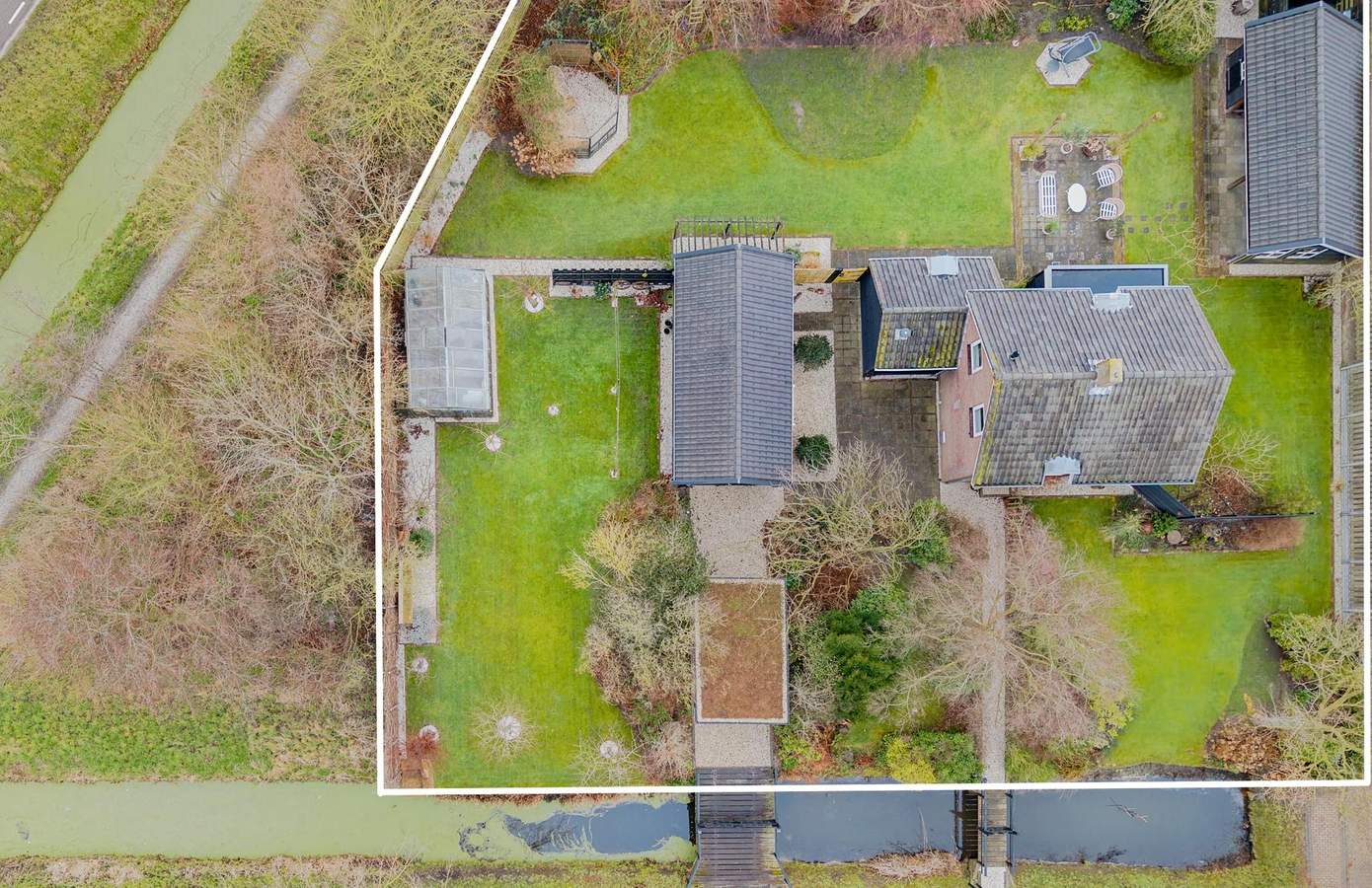 De woning is centraal op het perceel gelegen, waardoor u volop kunt genieten van de ruimte in uw eigen tuin. Vanaf het voetpad bereikt u de woning via twee bruggen: een loopbrug én een tweede brug die uitkomt bij de carport (sedumdak) tegenover de vrijstaande garage. De garage van 27 m² biedt voldoende ruimte voor uw auto, fietsen en tuingereedschap. Liever een hobbyruimte? Dankzij de handige vliering beschikt u ook hier over extra opbergruimte.