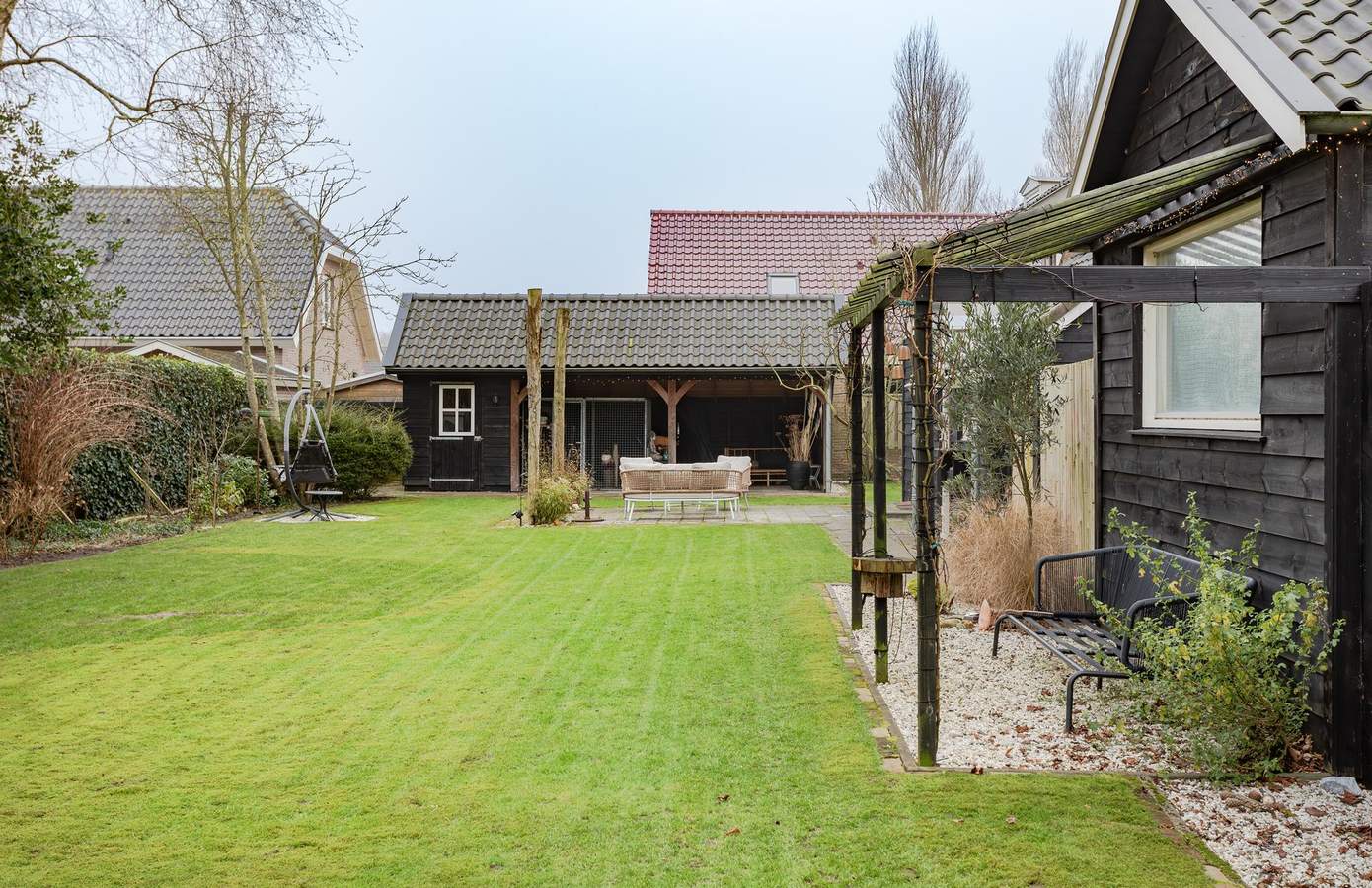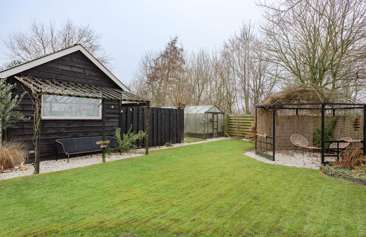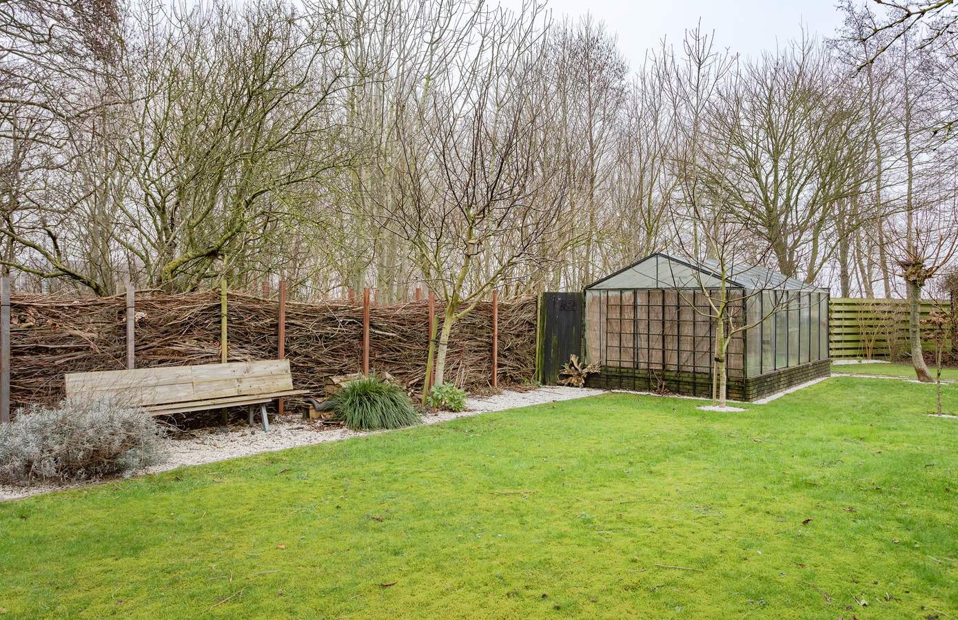 De tuin is een ware eye catcher: tot in de puntjes verzorgd, met mooie bomen, kleurrijke borders en een kas waar uw groene vingers goed van pas komen. Dankzij de centrale ligging van de woning op het perceel geniet u de hele dag door van zowel de zon als de schaduw. Daarnaast beschikt de woning over een vrijstaande garage van 27 m² met carport (sedumdak) en een royale overkapping met berging – kortom, volop ruimte om van het buitenleven te genieten.
