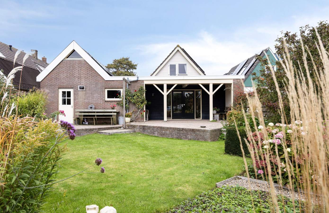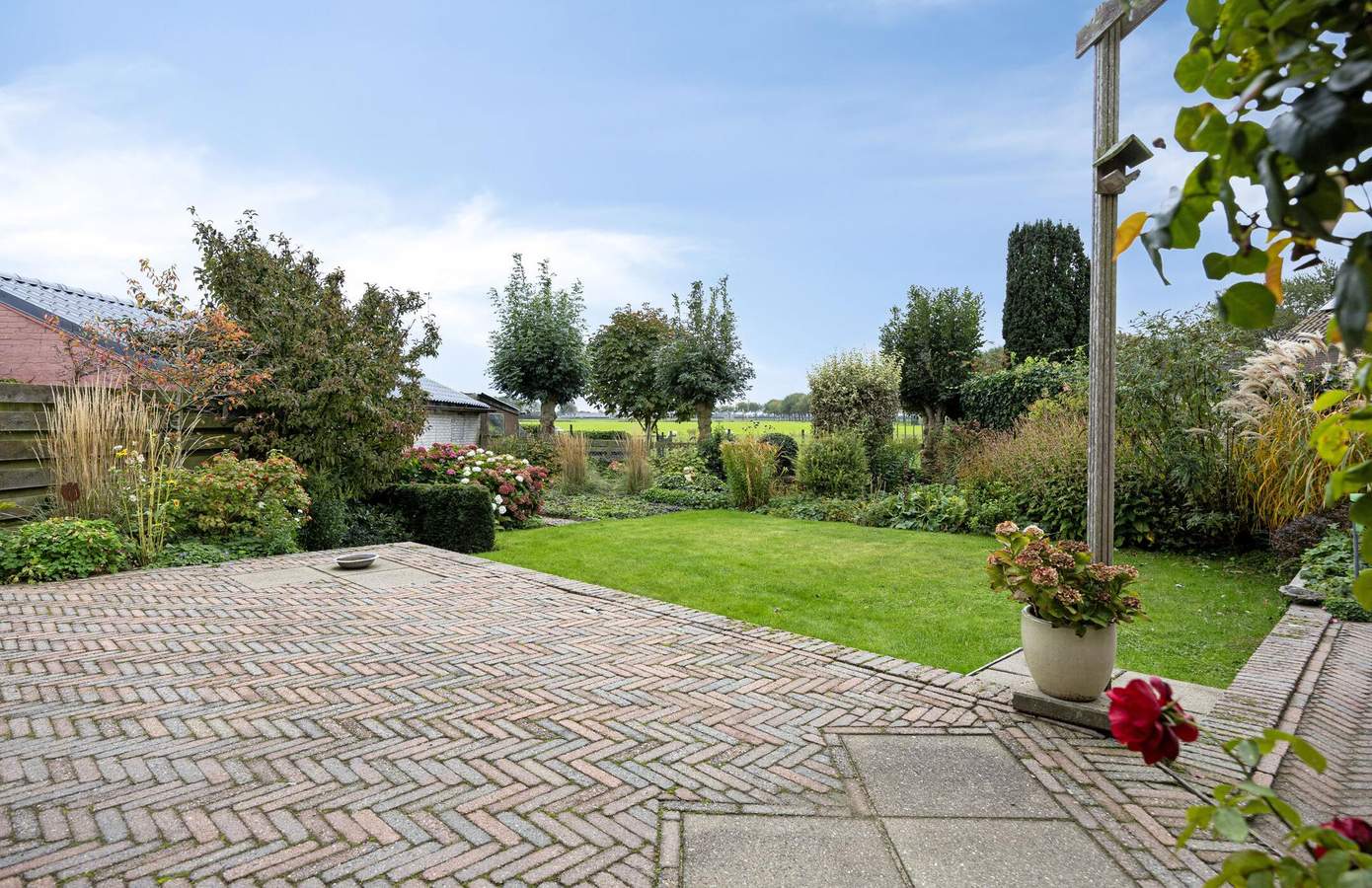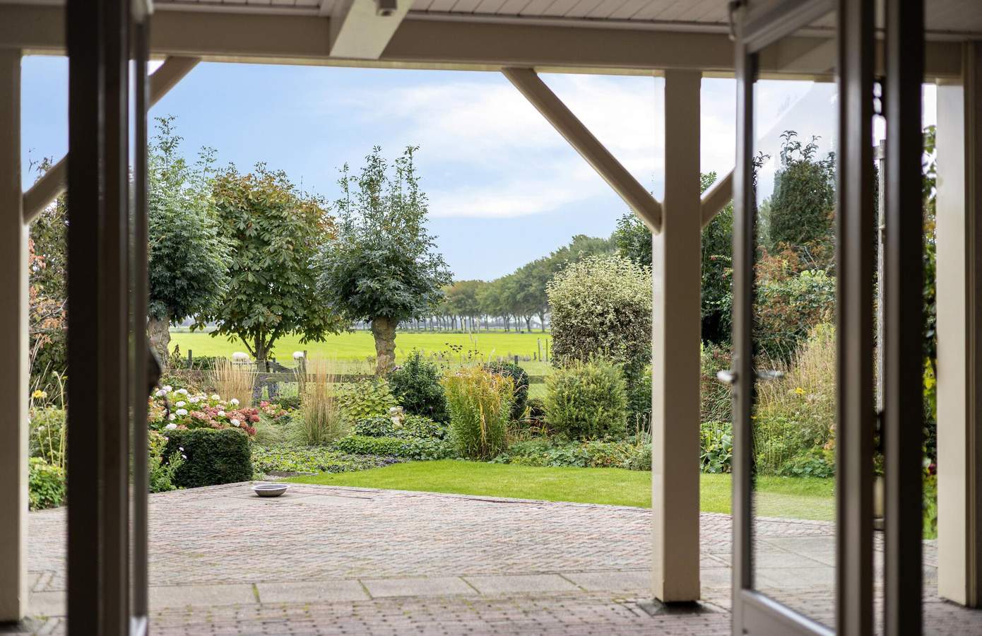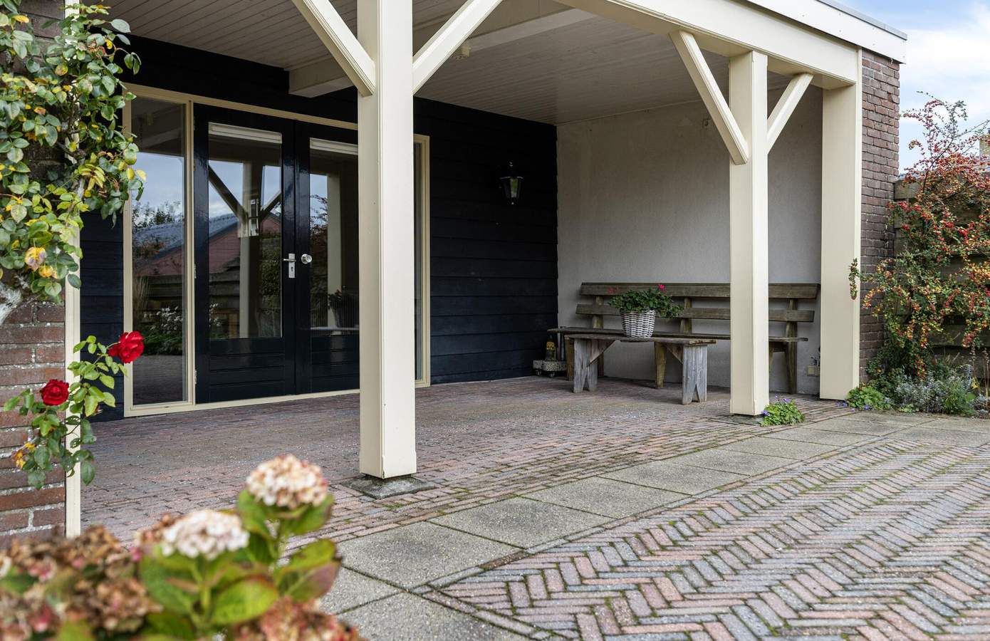 Aan de achterzijde ligt een zonnige, fraai aangelegde tuin met veel privacy. Het grote terras met sfeervolle overkapping ligt op het zuiden, een plek waar u het hele jaar door kunt genieten van het buitenleven. De tuin grenst aan het groen en biedt een prachtig uitzicht over de landerijen, dit uitzicht is elk seizoen weer anders. Dankzij de openslaande deuren vanuit de tuinkamer loopt u zo het terras op. De oprit biedt plaats aan meerdere auto’s op eigen erf.
