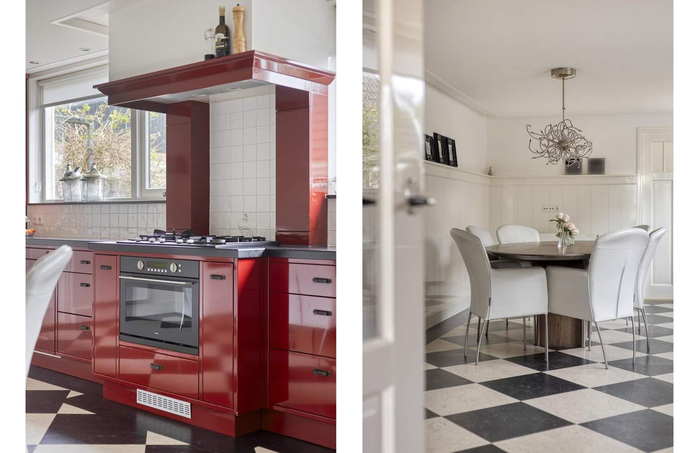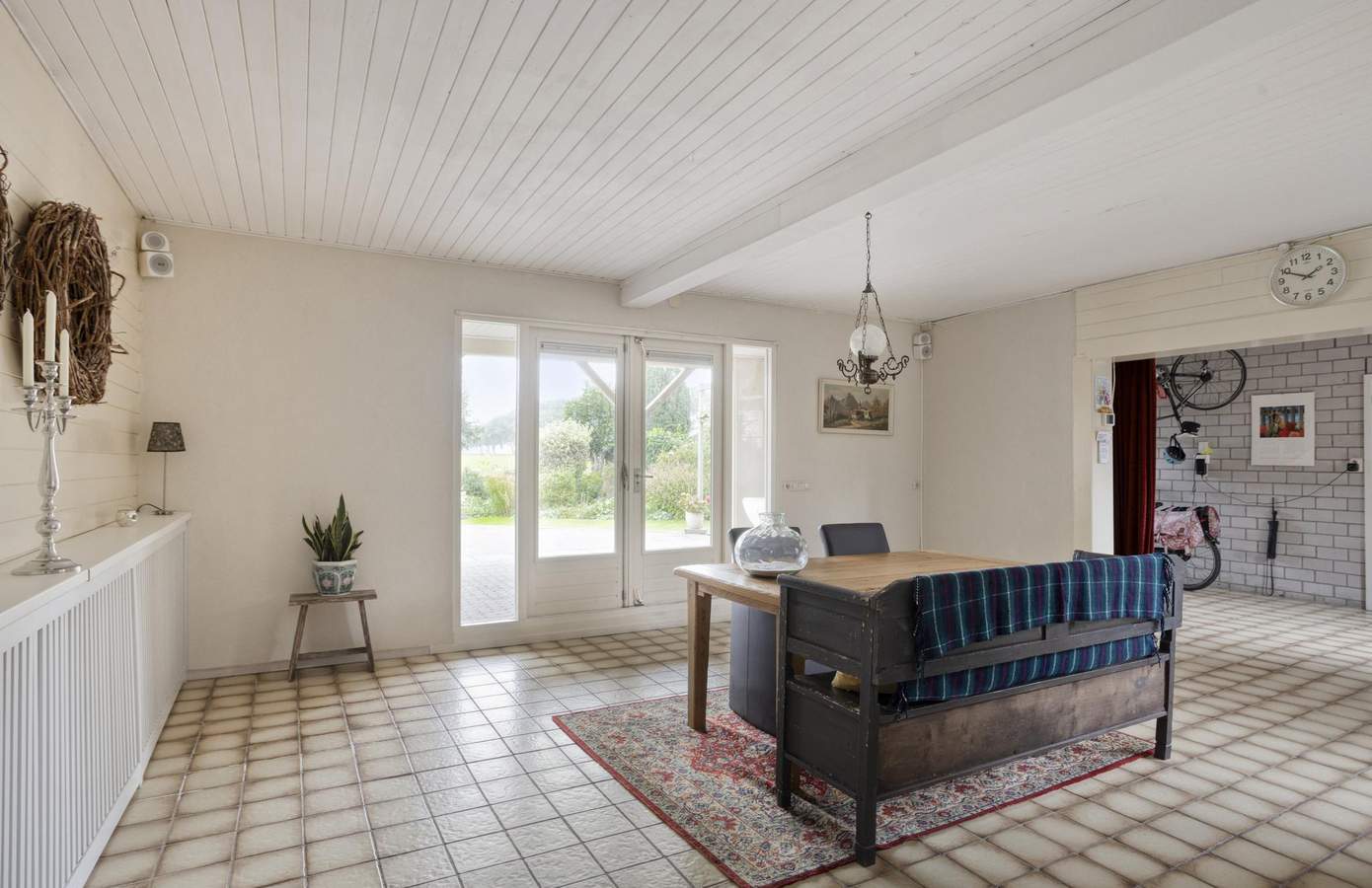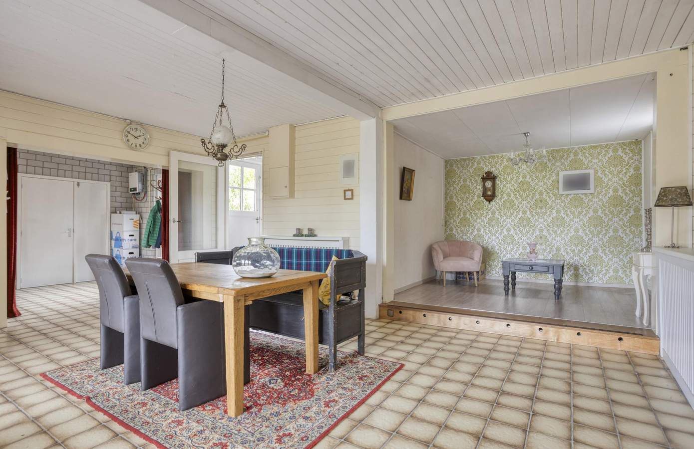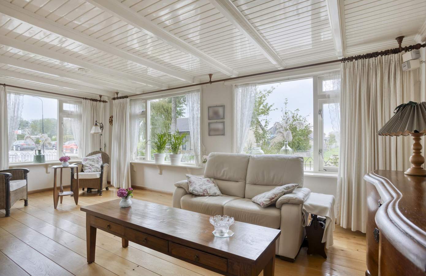 Via de zijentree komt u binnen in de ruime hal met toilet. U komt vanuit de hal in de royale woonkeuken, het kloppend hart van het huis. Hier vandaan bereikt u de sfeervolle woonkamer, waar de houten vloer, het balkenplafond en de grote raampartijen direct de aandacht trekken. De gashaard vormt het warme middelpunt van de ruimte en zorgt voor een uitnodigende, huiselijke sfeer. Aan de achterzijde van de woning vindt u de royale tuinkamer van circa 30 m². Dankzij de openslaande deuren en de ligging aan de tuin is dit een heerlijke lichte ruimte, ideaal als werkplek, hobbyruimte of speelkamer. Verder is er op de begane grond een bijkeuken, kantoor/werkkamer, berging en een inpandige garage met elektrische deur. De indeling maakt het huis uitermate geschikt voor werken aan huis of het creëren van een zelfstandige praktijkruimte. De eerste verdieping heeft een ruime overloop, vier slaapkamers, een badkamer en veel bergruimte.