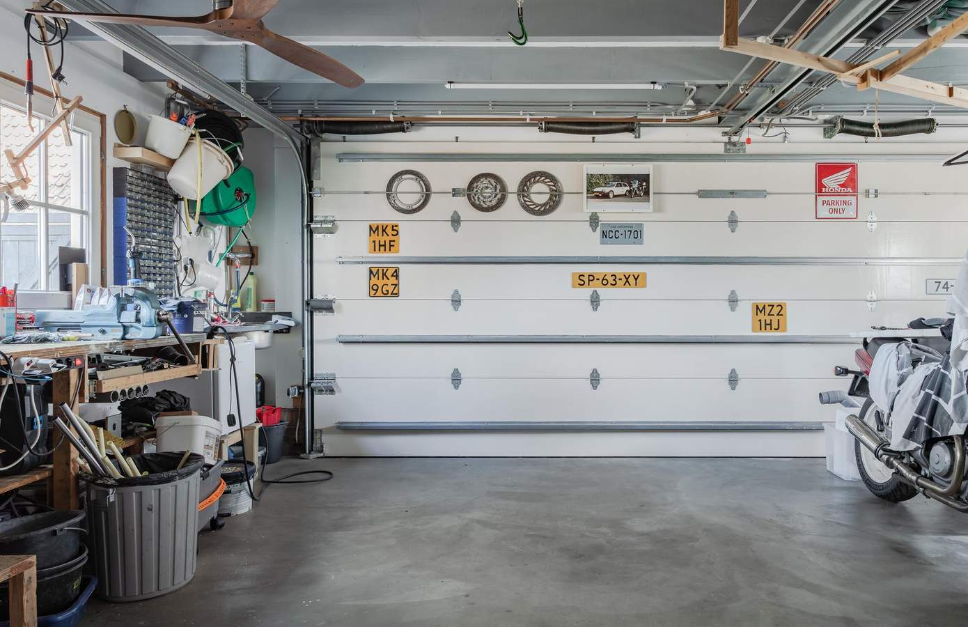 Een groot pluspunt van deze woning is de royale inpandige garage van circa 39 m². Via de elektrische roldeur rijdt u eenvoudig twee auto’s naar binnen, met volop ruimte over voor een klus- of bergruimte. In de garage bevindt zich ook de wasruimte, met wasmachine en droger op praktische stahoogte.