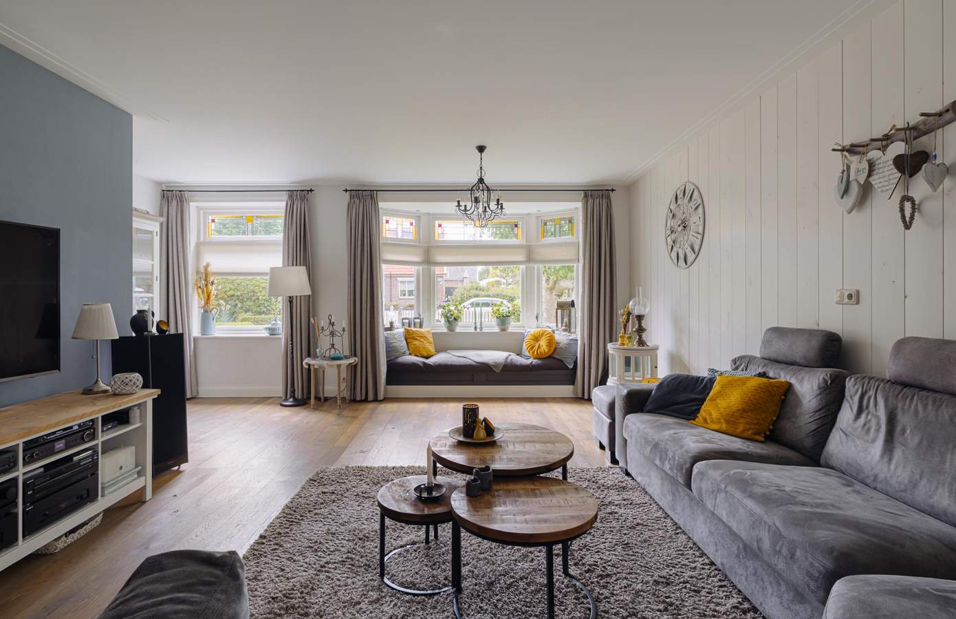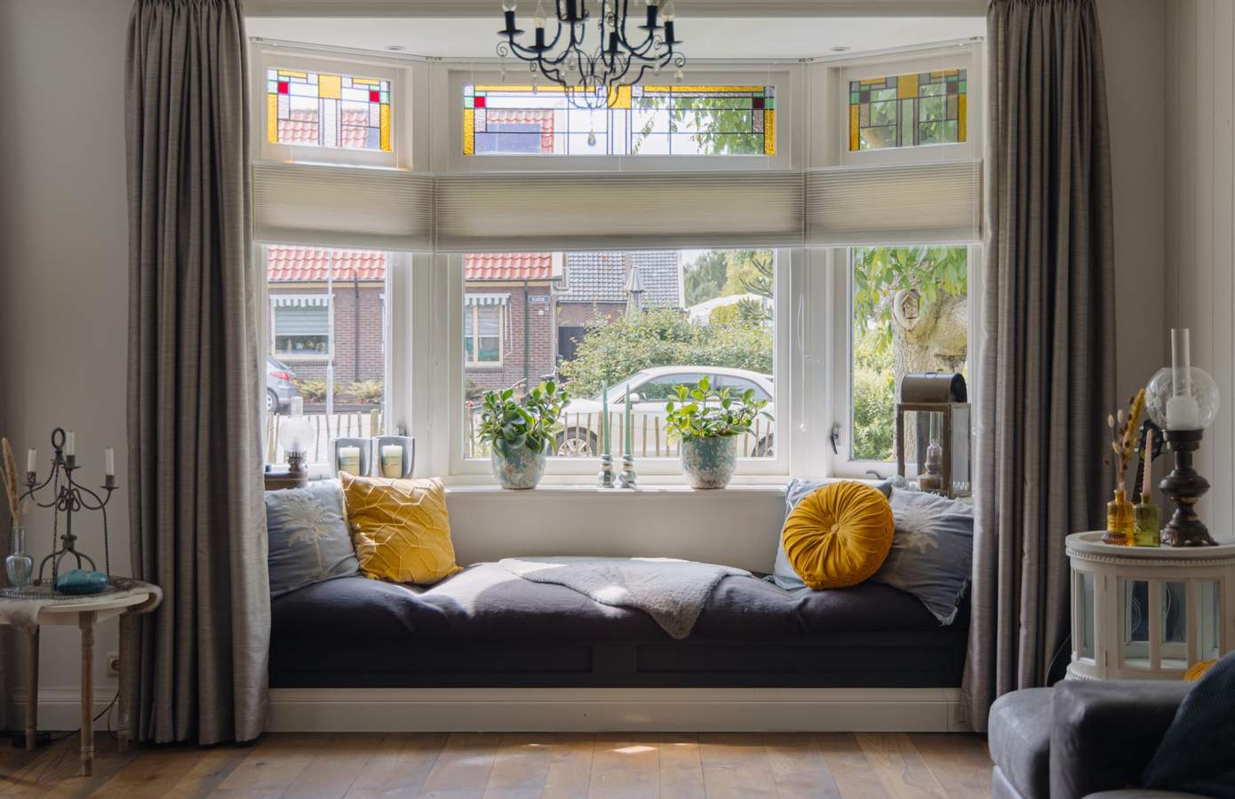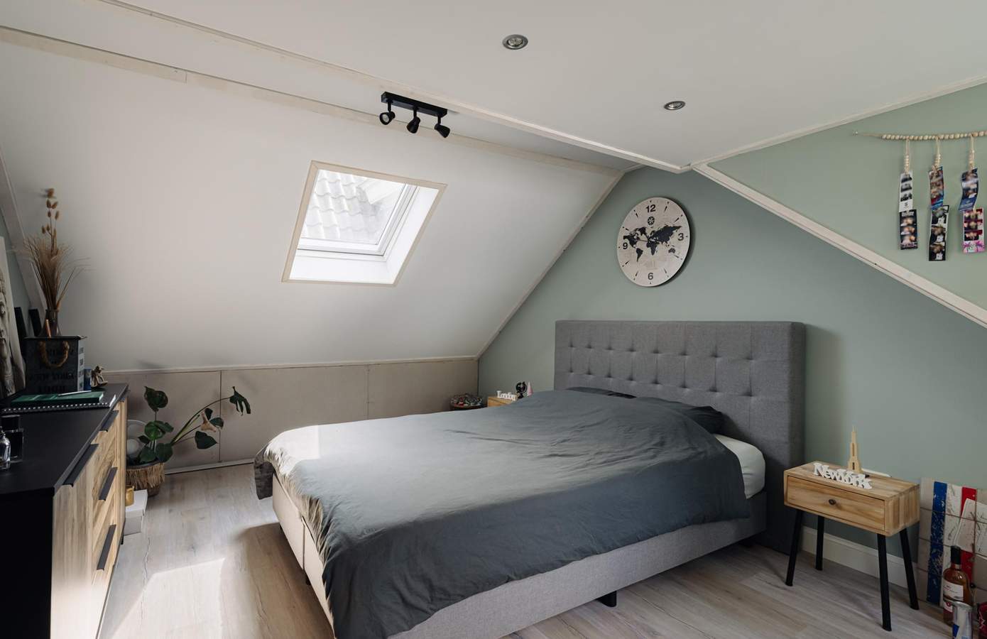 Binnen treft u een sfeervol interieur dat perfect aansluit bij de jaren ’30 stijl. De woonkamer ademt gezelligheid met houten vloeren, paneeldeuren en prachtige glas-in-loodramen bovenin de erker. De zitvensterbank bij het voorraam is een geliefde plek. In de grote landelijke woonkeuken met authentiek fornuis en royale opstelling kookt u met plezier. Zowel de begane grond vloer als de badkamer zijn voorzien van comfortabele vloerverwarming. Op de eerste verdieping van het woonhuis bevinden zich in totaal drie slaapkamers, waaronder een bijzonder charmante kamer met een echte bedstede: een knipoog naar vroeger, perfect als kinderkamer of logeerplek. De slaapkamer aan de achterzijde van de woning is zeer ruim te noemen, met een grote kastenwand is hier veel ruimte om uw kleding op te bergen. De badkamer straalt rust en karakter uit met lichte houten wanden, een robuust wastafelmeubel en koperen wandkraan. De inloopdouche heeft antraciet tegelwerk en de vloerverwarming onder de donkere plavuizen maakt het comfort compleet. Een fijne plek om de dag ontspannen te beginnen of af te sluiten. Via een praktische ladder bereikt u de dubbele vliering.