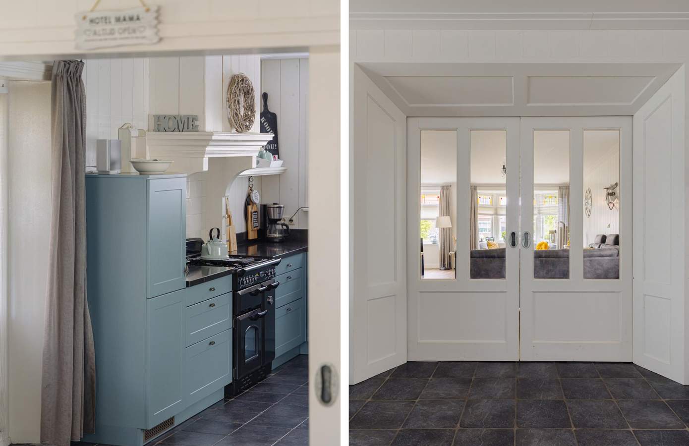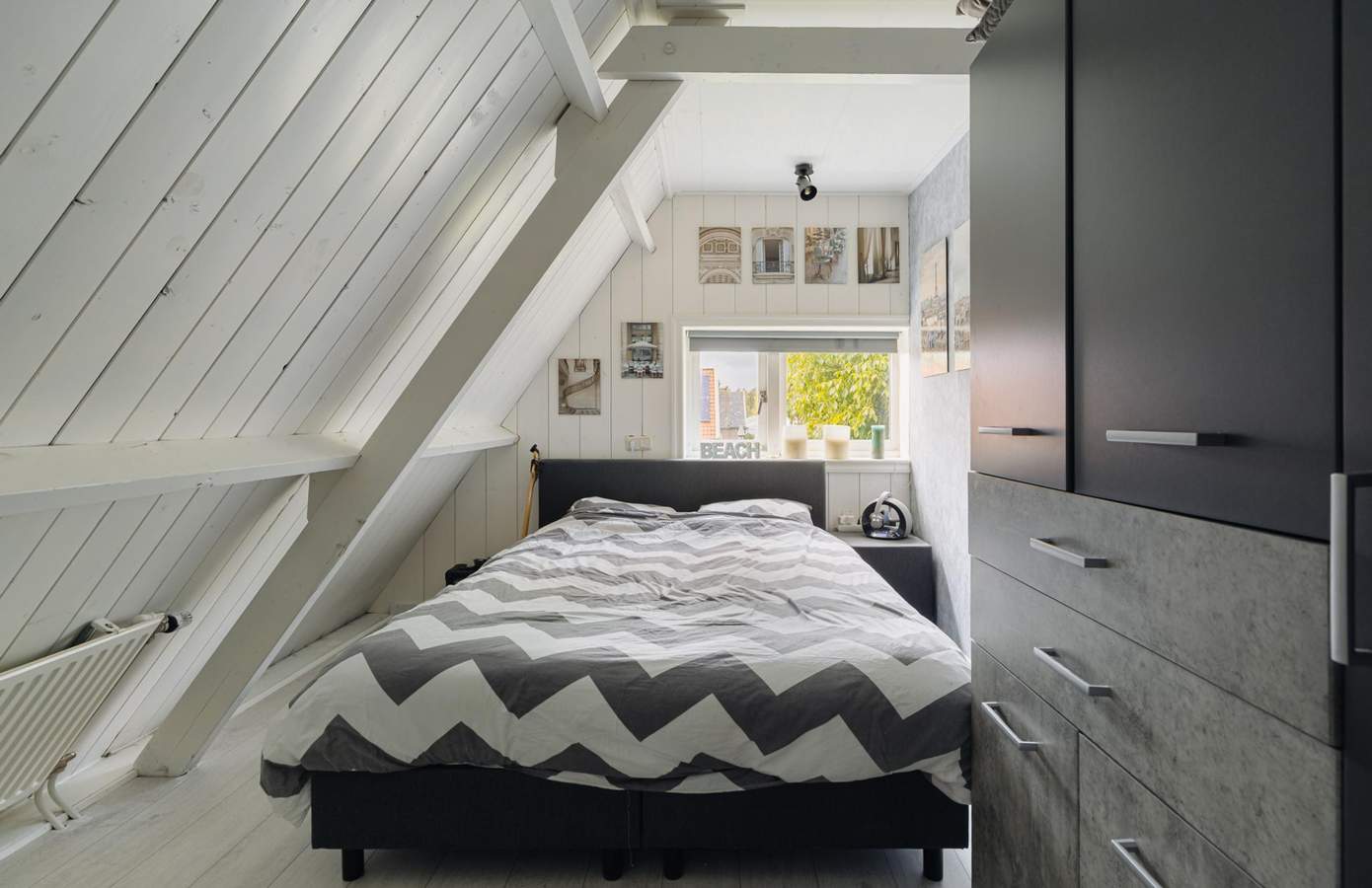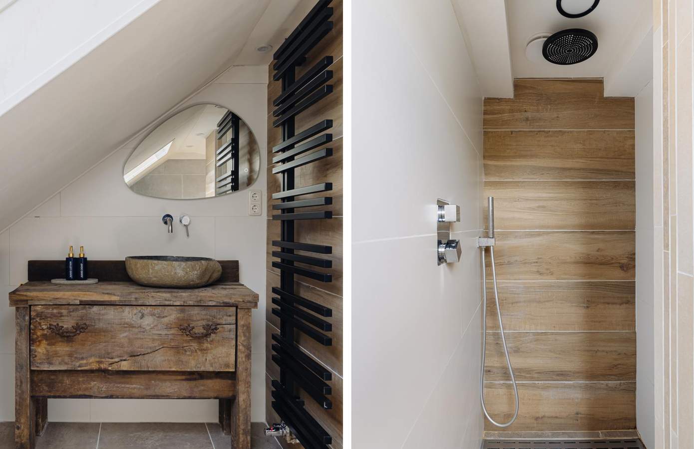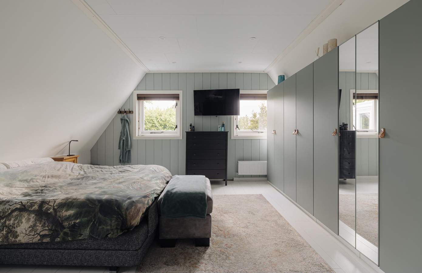 Binnen treft u een sfeervol interieur dat perfect aansluit bij de jaren ’30 stijl. De woonkamer ademt gezelligheid met houten vloeren, paneeldeuren en prachtige glas-in-loodramen bovenin de erker. De zitvensterbank bij het voorraam is een geliefde plek. In de grote landelijke woonkeuken met authentiek fornuis en royale opstelling kookt u met plezier. Zowel de begane grond vloer als de badkamer zijn voorzien van comfortabele vloerverwarming. Op de eerste verdieping van het woonhuis bevinden zich in totaal drie slaapkamers, waaronder een bijzonder charmante kamer met een echte bedstede: een knipoog naar vroeger, perfect als kinderkamer of logeerplek. De slaapkamer aan de achterzijde van de woning is zeer ruim te noemen, met een grote kastenwand is hier veel ruimte om uw kleding op te bergen. De badkamer straalt rust en karakter uit met lichte houten wanden, een robuust wastafelmeubel en koperen wandkraan. De inloopdouche heeft antraciet tegelwerk en de vloerverwarming onder de donkere plavuizen maakt het comfort compleet. Een fijne plek om de dag ontspannen te beginnen of af te sluiten. Via een praktische ladder bereikt u de dubbele vliering.