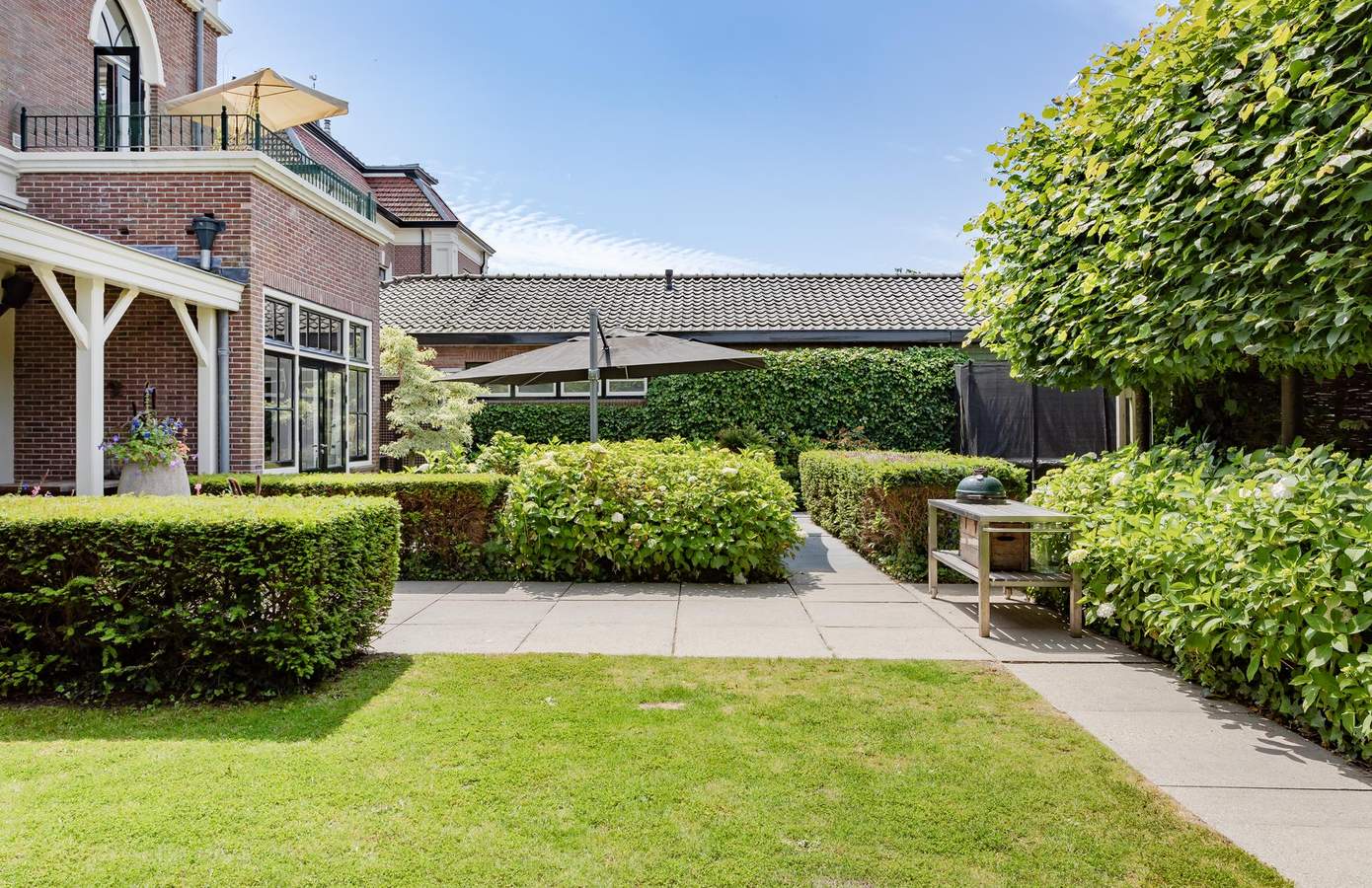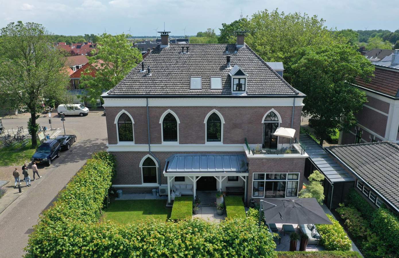 Na een zorgvuldige renovatie van drie jaar, voltooid in 1999, schittert het pand als nooit tevoren. De statige entree, bijna koninklijk in uitstraling, is rijk aan sierlijke details en wordt gesierd door een marmeren plaquette ter herinnering aan de stichting van het gebouw. De lange, indrukwekkende hal leidt naar een veranda die uitkijkt op de achtertuin en vormt de ruggengraat van de woning, waarbij de ruimte op natuurlijke wijze in twee vleugels wordt verdeeld. De rechtervleugel ademt sfeer en ontspanning. De voorkamer is ingericht als gameroom voor de kinderen, een plek waar gelach en plezier de boventoon voeren. De achterkamer daarentegen is een speelruimte voor volwassenen – een kroeg in eigen huis – compleet met een bar, biertap en een robuuste stamtafel. Hier zijn vriendschappen gesmeed, verhalen gedeeld en vormt het de spil van de jaarlijkse kermis van Warmenhuizen. De linkervleugel straalt warmte en stijl uit. Aan de voorzijde bevindt zich een sfeervolle zitkamer. In de achterkamer, treft u de op maat gemaakte, ambachtelijke keuken en biedt via een aanbouw toegang tot de tuin. De getoogde ramen, het verfijnde glas-in-lood en het getrokken glas zorgen voor een betoverend lichtspel en geven de ruimtes een unieke, bijna magische uitstraling. Dit pand combineert stedelijke elegantie met de charme van een dorpsomgeving – een plek waar historie, stijl en gezelligheid samenkomen.
