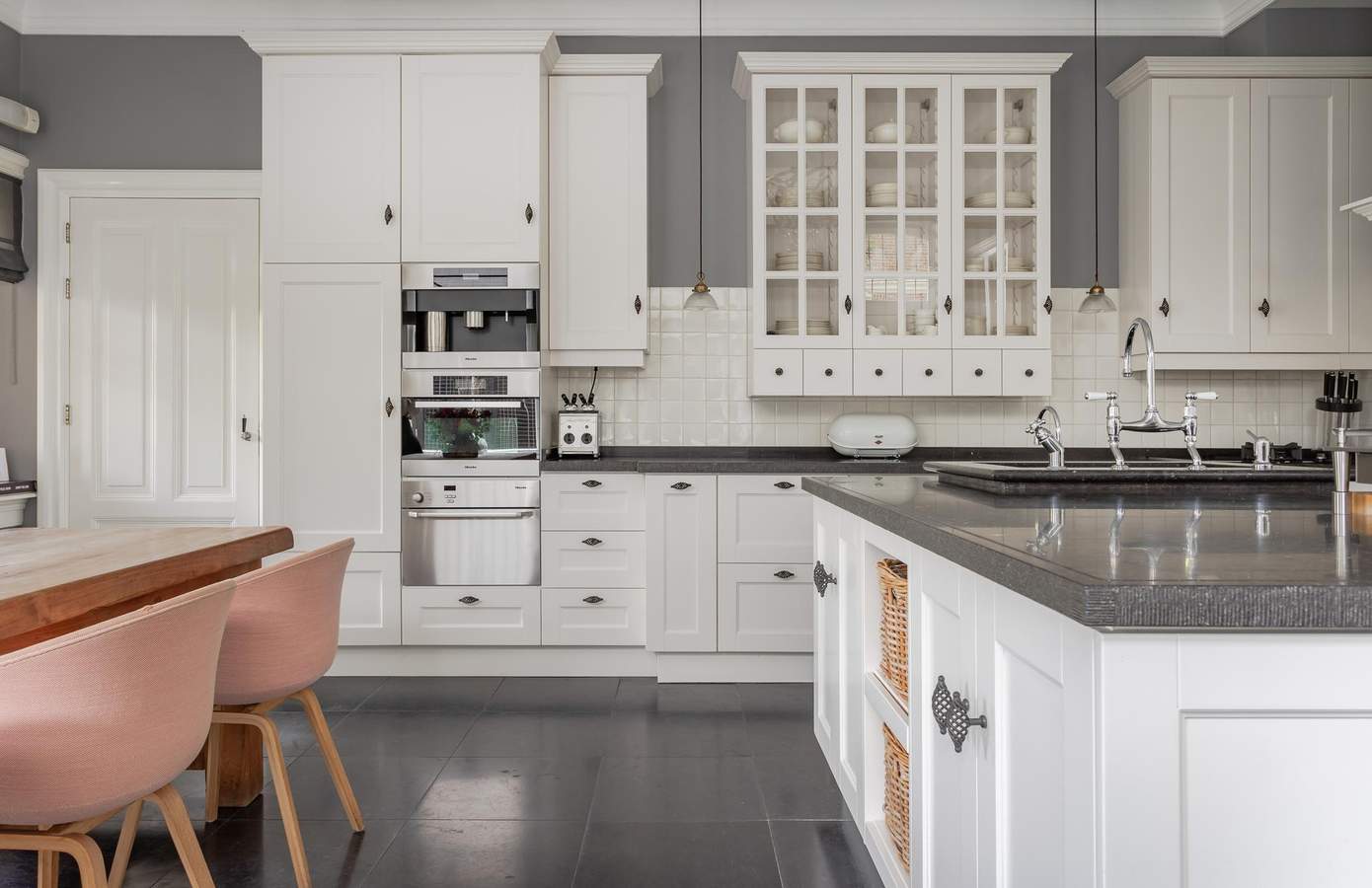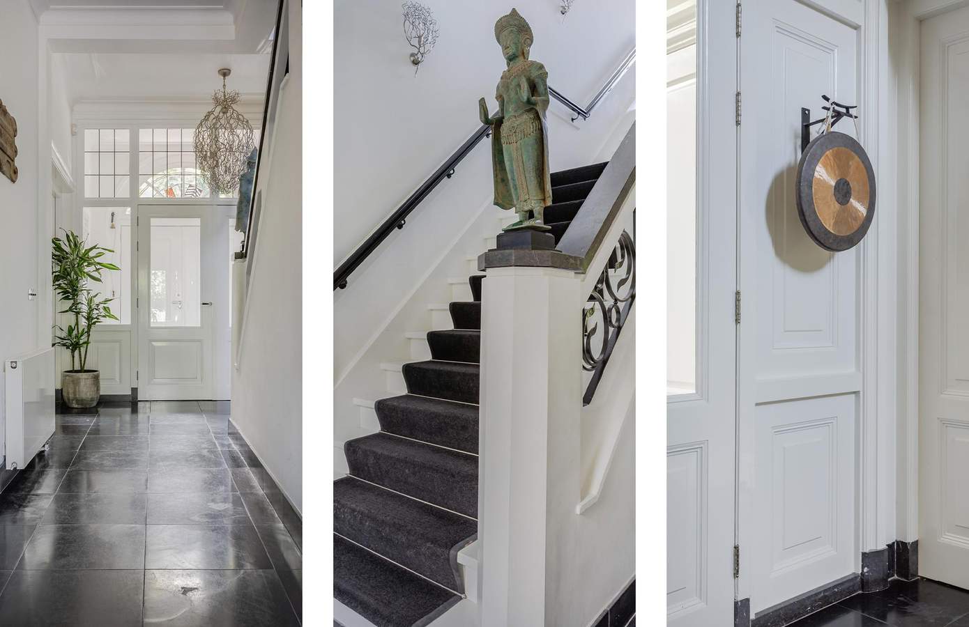 Via de brede, statige trap – een geliefd decor voor menig trouwfoto – bereikt u de eerste verdieping. Hier ontvouwt zich een bijzondere beleving: een gevoel van vrijheid, alsof u net boven het dorp zweeft. De ruime, lichte woonkamer vormt het hart van deze verdieping, met een imposante schouw als blikvanger en openslaande deuren die toegang bieden tot het balkon. Aangrenzend vindt u een sfeervolle hobbykamer, compleet met een pantry en een charmant Frans balkon dat uitkijkt over het dorp. Aan de andere zijde bevindt zich de masterbedroom, een stijlvolle en serene ruimte met een luxe badkamer en suite voorzien van vloerverwarming. Een wenteltrap leidt u verder naar de tweede verdieping, waar een royale overloop toegang biedt tot twee comfortabele slaapkamers, een tweede badkamer, een apart toilet, een praktische wasruimte en een ruime berging. Elke verdieping straalt zorgvuldige afwerking, stijl en een tijdloze klasse – een perfecte harmonie tussen historie en hedendaags wooncomfort.