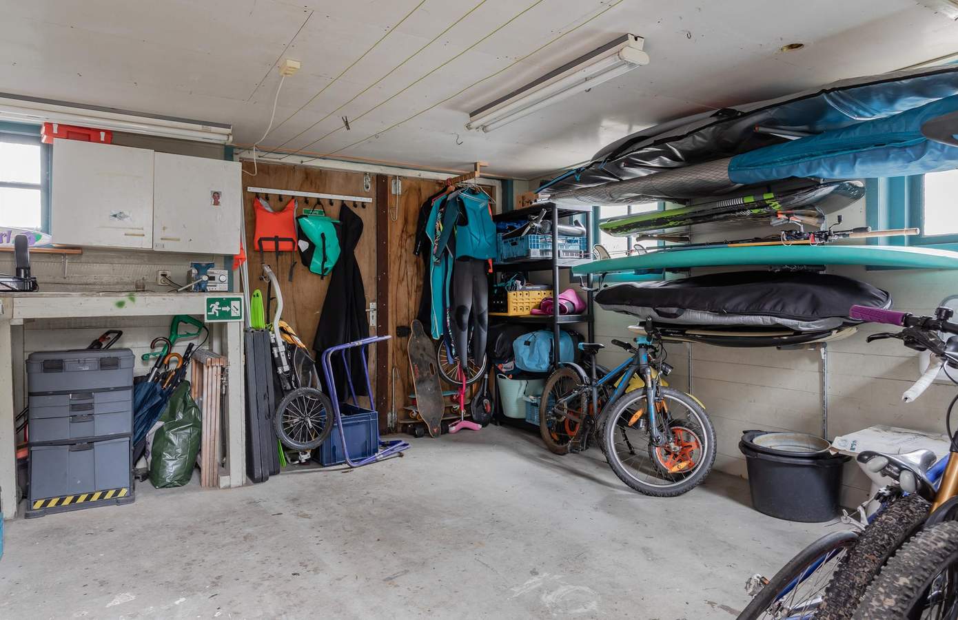 De tuin is keurig onderhouden en biedt een mooie diversiteit aan planten en struiken, wat zorgt voor een groene omgeving. Het gazon aan de voorzijde is een heerlijke plek voor de allerkleinste om buiten te spelen. Een fraai sierhek geeft de tuin een landelijke uitstraling, terwijl de aanwezigheid van boerengeeltjes en bessenstruiken het oog strelen. Voor wie graag buiten geniet, is er een gezellige zithoek en een sfeervolle veranda, perfect voor lange avonden in de buitenlucht. Er is een rozen boog deze geeft de tuin een extra romantische uitstraling. Daarnaast is er de praktische houtopslag, ideaal voor het droog en netjes opbergen van uw haardhout. De garage (met verdieping) van maar liefst 30 m² zal zeker de klussers en hobbyisten aanspreken, dankzij de aanwezigheid van elektra en water.