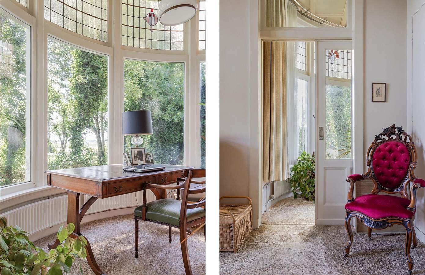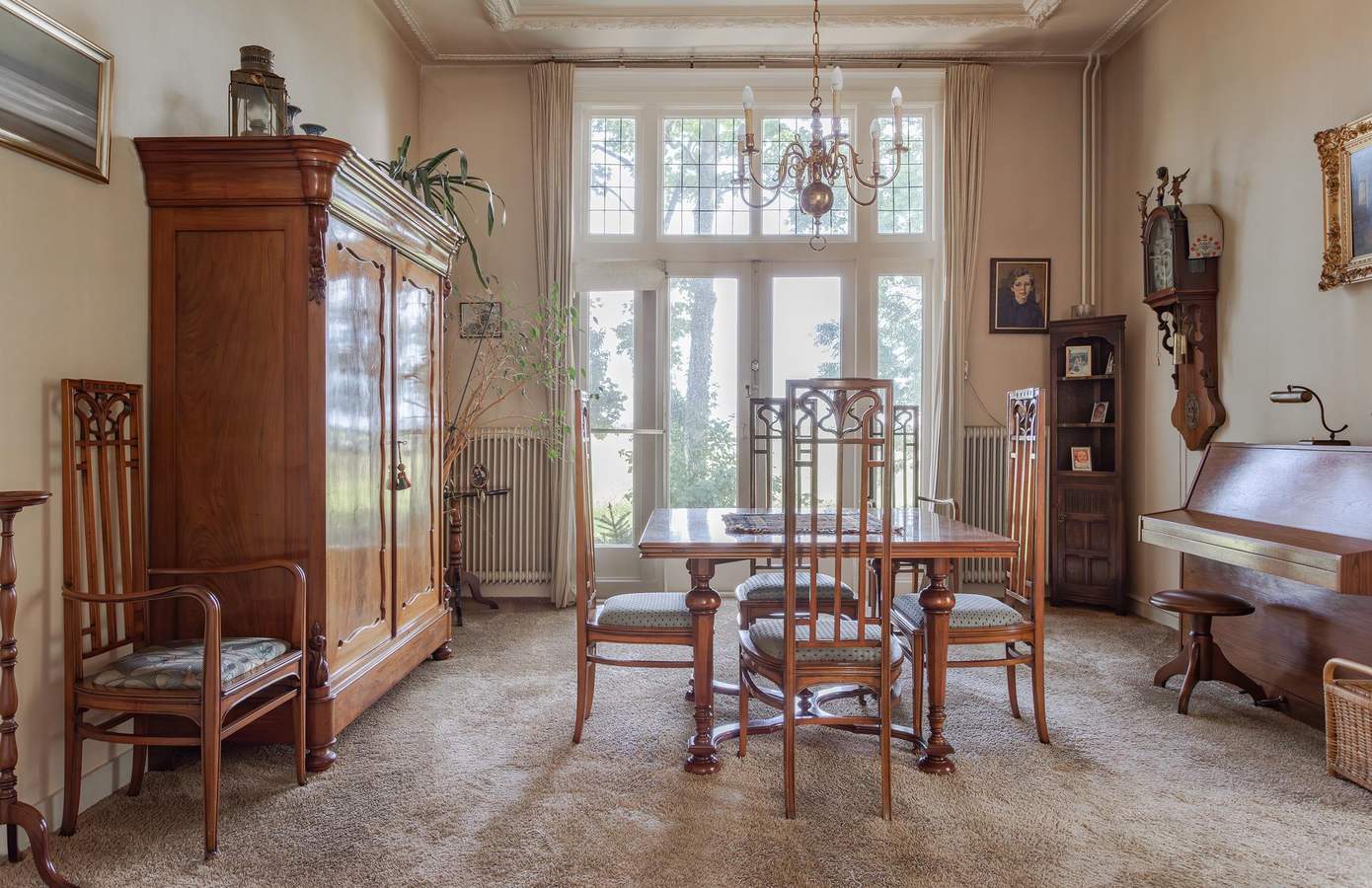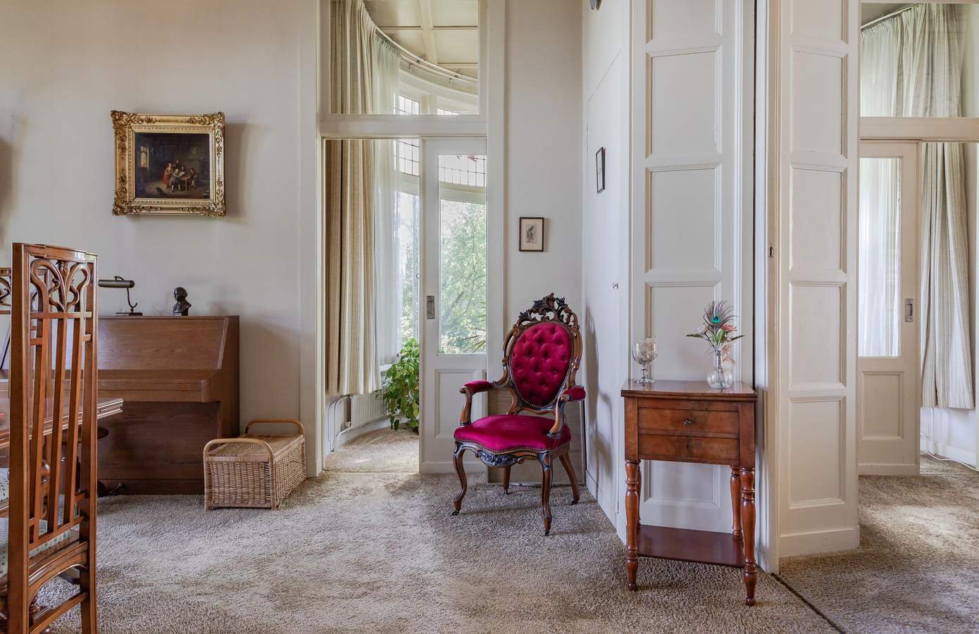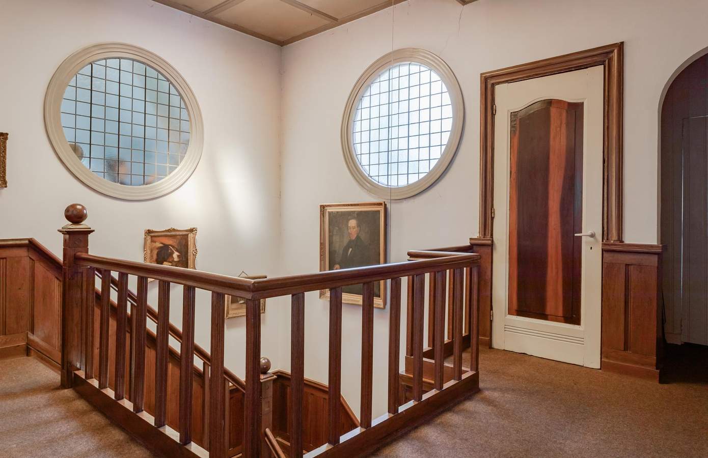 Bij binnenkomst wordt u verwelkomt in de stijlvolle vestibule, die dient als een gracieuze entree naar de woning. Vervolgens betreedt u de indrukwekkende hal, gekenmerkt door authentieke architectonische details. De ruime living biedt een comfortabele en verfijnde leefruimte. Via de en suite deuren bereikt u de eet-/zitkamer, waar u met een intiem gezelschap kunt tafelen en borrelen. Vanaf hier is er een schitterend uitzicht over de achtergelegen landerijen. De aangrenzende half ronde serre voegt, met haar elegant uitstraling, een bijzonder element toe aan de woning. De keuken is vernieuwd in 2006 en vormt een praktische en eigentijdse ruimte. In de kelder heerst een aangenaam koel klimaat. De perfecte plek voor uw wijnen en/of conserven. Op de verdieping is een imposante vide, deze geeft toegang tot vier ruime slaapkamers met elk een eigen karakter. Daarnaast zijn er twee badkamers (2016) aanwezig voor extra comfort. De zolder, bereikbaar via een vaste trap, biedt onbegrensde mogelijkheden om de ruimte volledig naar eigen wens in te richten. Hier kunt u uw creativiteit de vrije loop laten. Denk bijvoorbeeld eens aan de zolder transformeren tot een extra riante slaapkamer met badkamer en suite en walk-in-closet, een hobby- of speelruimte voor de kinderen. Deze parel van een woning biedt een uitstekende combinatie van charme, authentieke details en een veelzijdige indeling.