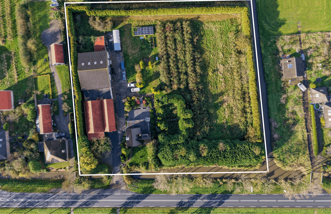 Het erf is verhard en afsluitbaar met een dubbele poort. Rondom de woning ligt een riant groen perceel met een terras, gazon en volwassen beplanting. De overige grond, circa 8.500 m², biedt volop mogelijkheden voor herinrichting, bijvoorbeeld voor fruitteelt, kleinschalige landbouw of een ruim erf met dieren.