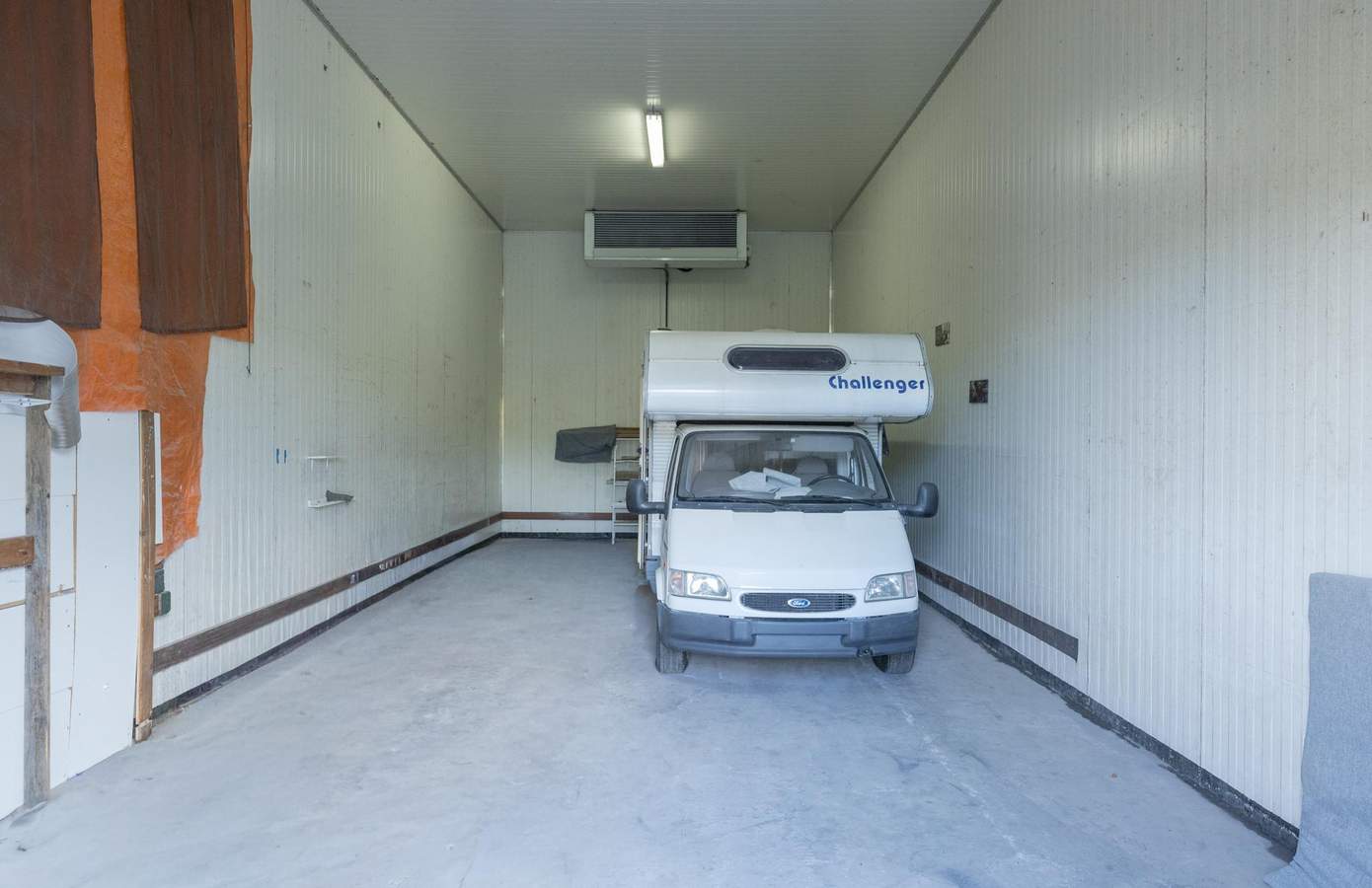 Buiten is het genieten van de ruimte en de vrijheid. De grote schuurruimte met overkapping biedt opslag- of hobbyruimte. De loods, voorzien van drie koelcellen, is ideaal voor wie opslag, ambacht of agrarische activiteiten wil combineren met wonen.
