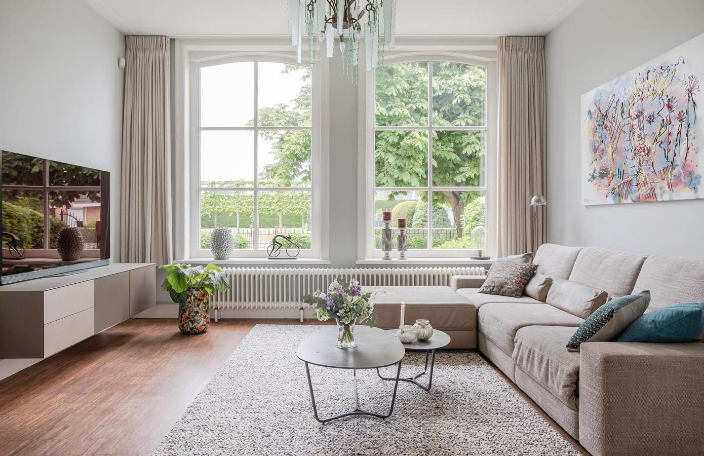 Via de stijlvolle entree betreedt u een imposante vestibule en hal, afgewerkt met een klassieke Regout tegelvloer die direct de toon zet. Al bij binnenkomst proeft u de unieke sfeer van dit huis: karaktervol, verfijnd en met oog voor detail. Uw blik wordt als vanzelf getrokken naar het trappenhuis – statig en sierlijk, met witgeschilderde treden, elegante lijnen en een smaakvolle traploper. Deze trap is veel meer dan een doorgang naar boven; het is een architectonisch statement dat de grandeur van deze voormalige pastorie onderstreept.