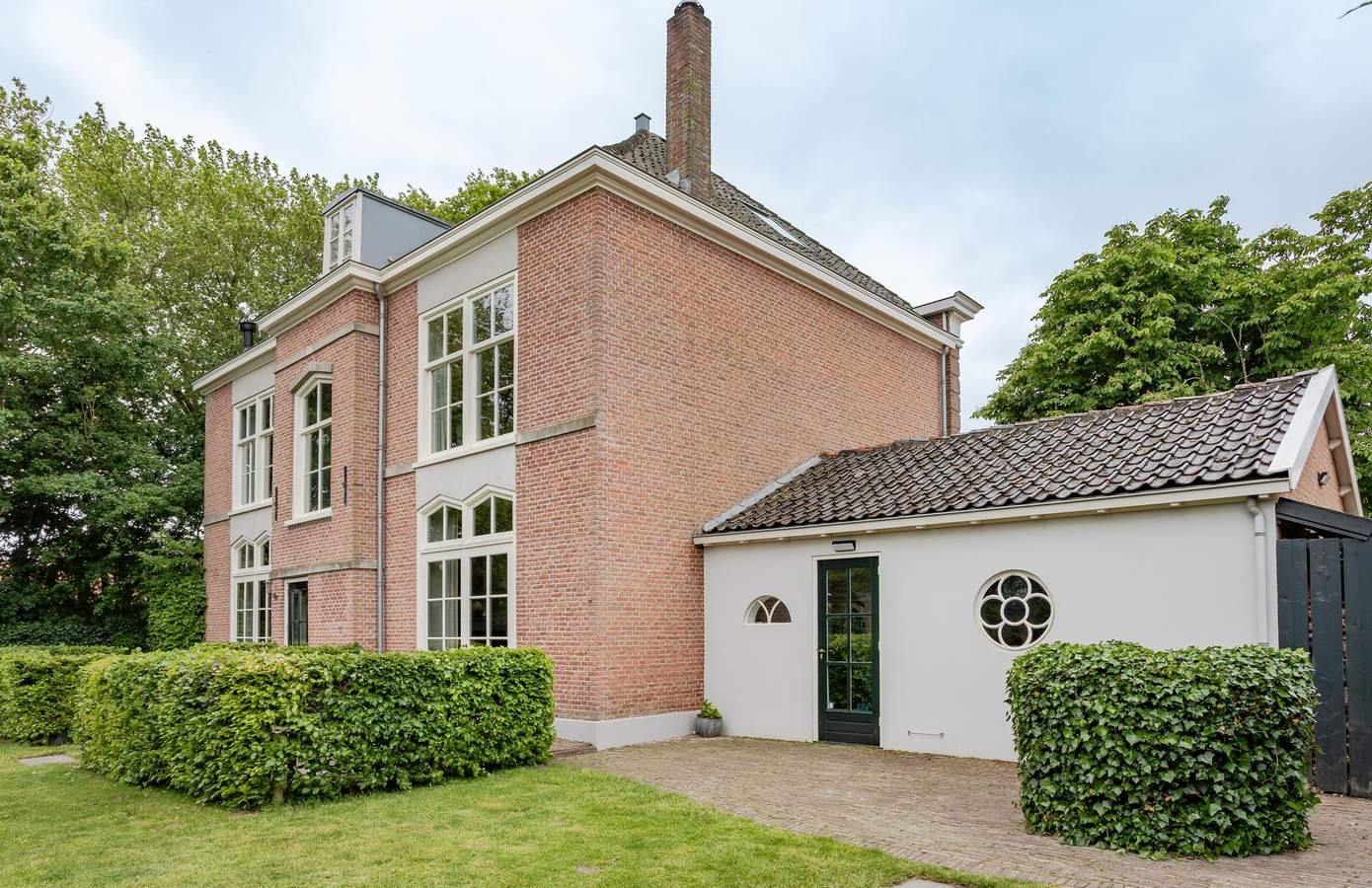 Aan uw linkerzijde bevindt zich een sfeervolle woonkamer, verbonden met een en suite kamer die is voorzien van een haard en openslaande deuren naar de achtertuin. Rechts van de hal ligt de royale woonkeuken, uitgerust met moderne inbouwapparatuur, veel kastruimte en eveneens een gezellige haard. Aansluitend vindt u een multifunctionele (speel)kamer met wederom dubbele deuren naar de achtertuin. Middels een verborgen trap kunt u de voorraadkelder bereiken. Vanuit de woonkamer is de praktische bijkeuken bereikbaar, die directe toegang biedt tot de garage. De eerste verdieping beschikt over een ruime overloop met toegang tot vijf volwaardige kamers, elk met hoge ramen die reiken van bijna vloer tot plafond. Het natuurlijke licht stroomt hier royaal naar binnen, wat elke ruimte een luchtige en serene sfeer geeft. De voorkamer met sierbalkon is momenteel ingericht als kantoor; de master bedroom beschikt over vaste kasten, waarbij op stijlvolle wijze de oorspronkelijke raamluiken zijn hergebruikt als kastdeuren. De overige drie slaapkamers zijn stuk voor stuk uniek – zo is er een kamer met een bedstee en fonteintje, wat een speels en nostalgisch karakter toevoegt. Twee van deze kamers hebben directe toegang tot de badkamer. De tweede badkamer is modern en comfortabel, voorzien van een ligbad, inloopdouche, wastafel en toilet.