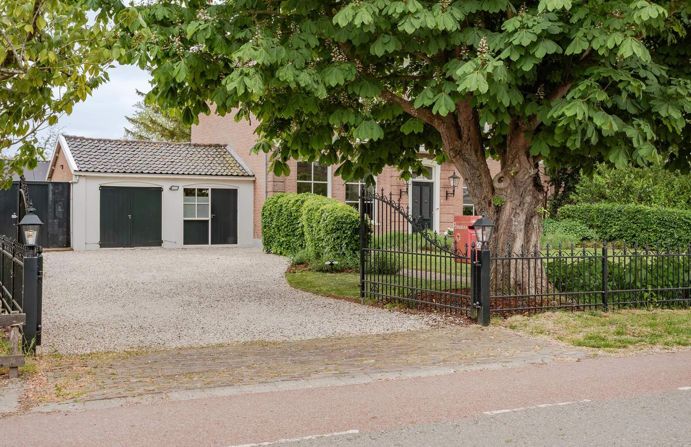 In 2016 is de tuin zowel voor als achter compleet opnieuw aangelegd door hoveniersbedrijf Vreeker uit Venhuizen. Het resultaat is een strak vormgegeven tuin rondom de woning, waar voorbereidingen zijn getroffen voor een sproei- en beregeningsinstallatie. Hier geniet u van volwassen beplanting, speelse zichtlijnen en volop zon- en schaduwplekken. Door de openslaande deuren vanuit zowel de woonkamer als de keuken, zijn binnen en buiten nauw met elkaar verbonden. In de achtertuin bevindt zich een waterput waarin het regenwater uit de dakgoten wordt opgevangen. Via een slimme overloop stroomt het overtollige water naar de sloot. Zo heeft u in de zomer altijd een natuurlijke voorraad om de tuin fris en groen te houden De kers op de taart is de royale kapschuur: een heerlijke buitenkamer met screens, heaters en een houtkachel – vier seizoenen lang een comfortabele plek om te ontspannen. De achtertuin is ruim, groen en volledig omsloten, met volop speelruimte voor de kinderen.