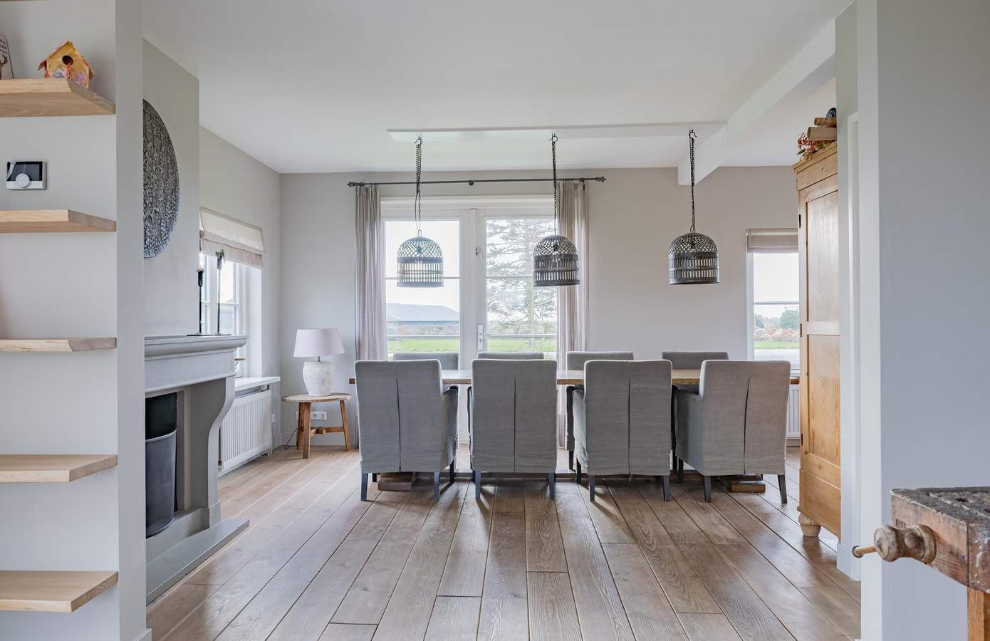 • Houtkachel in de woonkamer én openhaard aanwezig in de eetkamer.