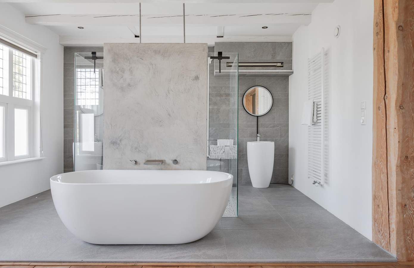 Met de deur op het bordes van de eerste verdieping heeft de eerste etage ook een eigen entree. Net als de binnentrap komt deze uit in een ruime hal. Hier vindt u de wasruimte en een tweede toilet. Antieke houten deuren bieden toegang tot de kleedkamer. Vervolgens leidt een robuuste houten poort tot de master bedroom. Deze ruimte was vroeger de raadszaal. Nu is het volledig benut voor slaap- en badkamer ineen. De royale ruimte en warme sfeer geven het cachet van een luxe hotel. Met een vrijstaand bad, watervalkraan, twee vrijstaande wasbakken en een dubbele stortdouche. U kunt deze etage ook herindelen, bijvoorbeeld met drie slaap- of werkruimten. Wordt dit uw praktijk aan huis? Of markant B&B? De tweede verdieping is verdeeld in een overloop met vaste kasten en twee volwaardige slaap- of hobbykamers. Hier is alles geïsoleerd. Dakramen met een monumentaal uiterlijk bieden daglicht en mooi uitzicht. Dikke constructiebalken sieren het plafond, die fraai afsteken tegen de schuine, strak gestuukte wanden. De geïsoleerde vloer ligt tussen een oude balken-structuur. De getande zijden wijzen erop dat dit hergebruikte scheepsbalken zijn. Die zijn dus nog ouder dan het huis zelf, van ver voor de VOC-tijd. Het maakt de sfeer nog specialer. Een oude houten trap met vierkante nagels leidt naar een luik in het plafond: de toegang tot de opmerkelijke derde verdieping. De toren zorgt niet alleen voor een kenmerkend uiterlijk, maar biedt ook een knus torenkamertje. Perfect afgewerkt, met oog voor historie. Klimt u door het luik in het plafond, dan wacht u een fantastisch uitzicht. Onder de kerkklok, in de zon. Genieten op het hoogste niveau.