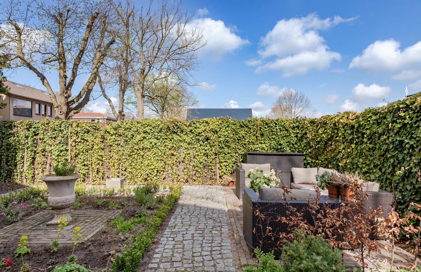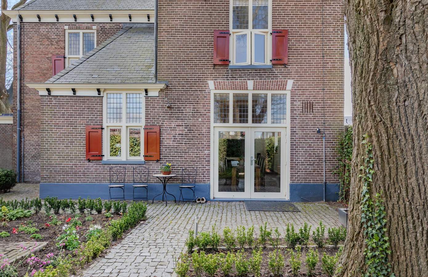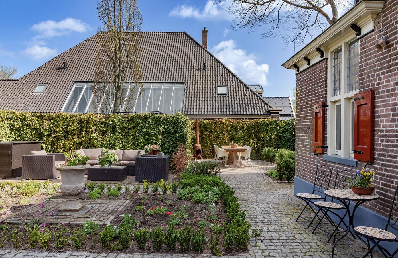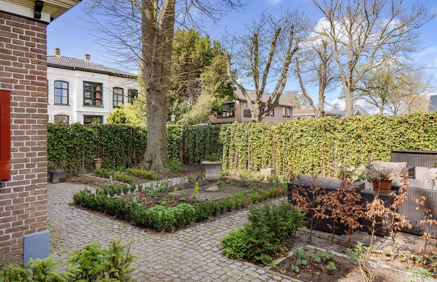 Via de tuindeuren stapt u de besloten achtertuin in. In 2023 is deze opnieuw aangelegd door de lokale hovenier Peter Bossen. Bergruimte vindt u in de aangebouwde schuur (1924). De achtertuin is ook buitenom bereikbaar. Aangrenzend aan het perceel is er een openbare parkeerplaats, waar altijd plek is.