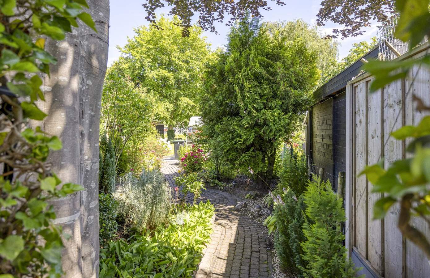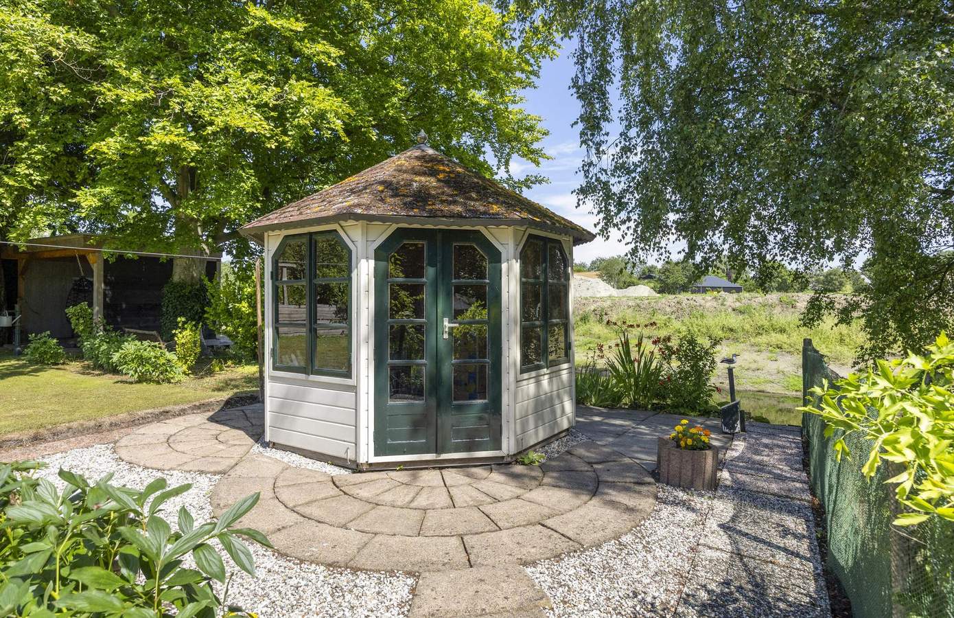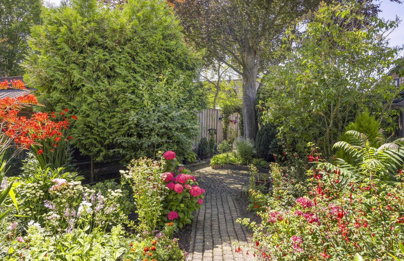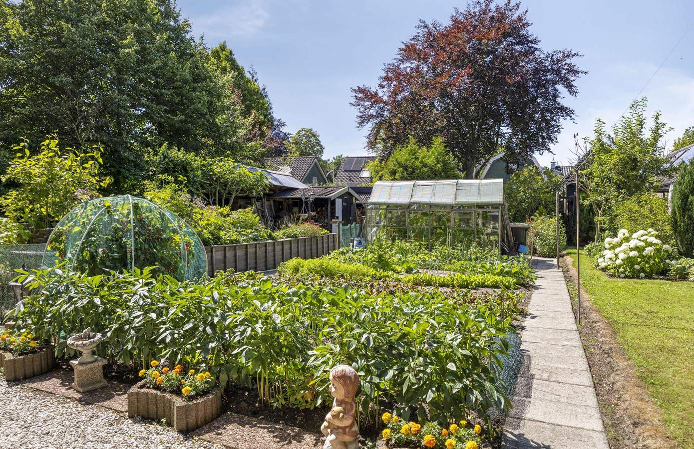 Achter de woning ligt een bijna 40 meter diepe achtertuin, iets wat u aan de voorzijde niet direct verwacht. De tuin is met liefde en zorg aangelegd en biedt ruimte voor bloemen, vaste beplanting en een groentetuin waar u zelf groenten en fruit kunt oogsten. U beschikt over een eigen kas om te zaaien en te telen en een ruime schuur voor uw gereedschap en hobby’s. Achter in de tuin staat een houten tuinhuis. Hier kunt u ontspannen, tuinieren en genieten van het buitenleven, terwijl u toch midden in het dorp woont.