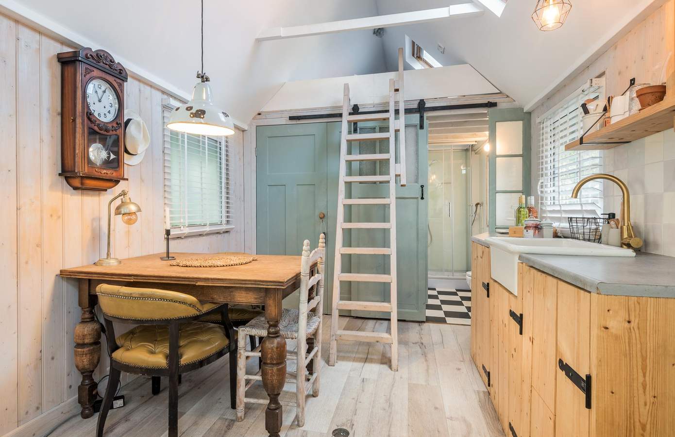 Ook het achterhuis is met zorg en professionaliteit gerenoveerd, met een gezellige en warme Boho sfeer. Hier geniet u van late avonden op het terras met prachtig uitzicht op de tuin. Dit verblijf biedt twee slaapkamers en een moderne keuken met dubbele spoelbak, vaatwasmachine, kookplaat en koelkast. Een badkamer met wasruimte, douche en wastafel is aanwezig. Bovendien beschikt het over een zolder voor extra bergruimte.